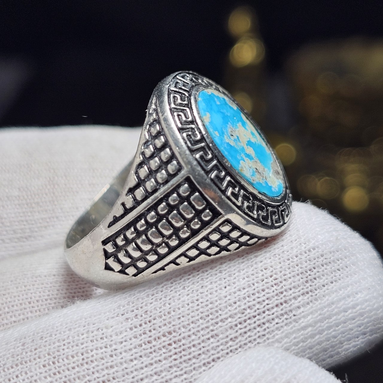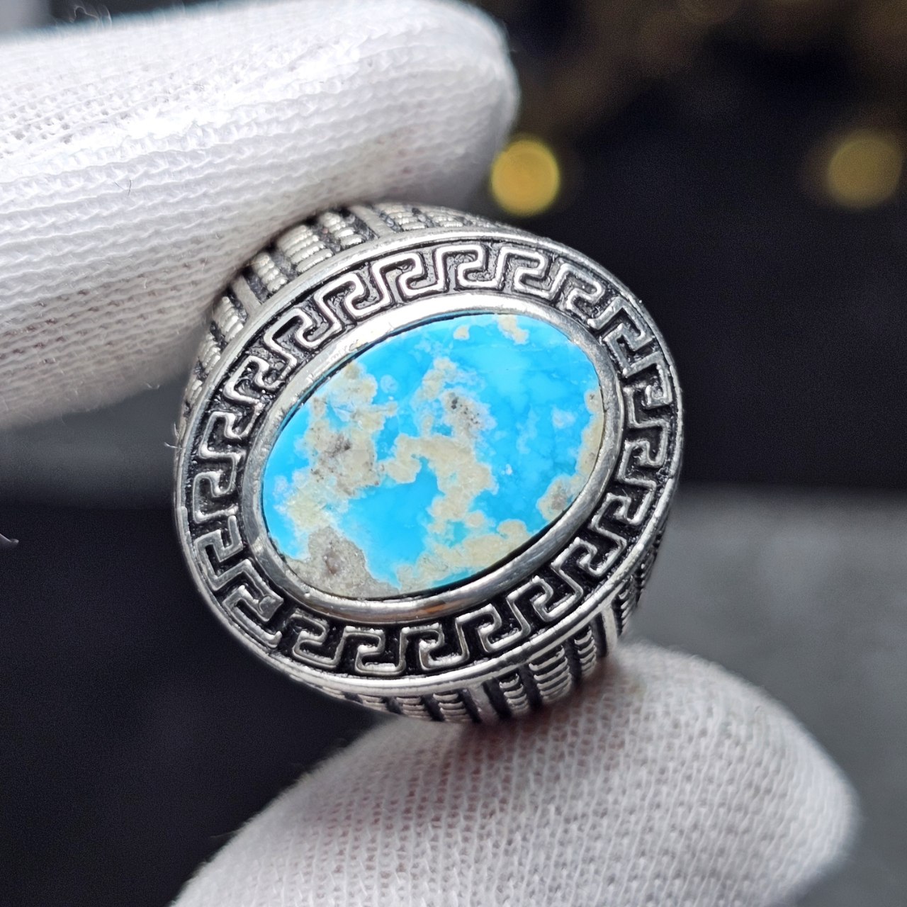 انگشتر نقره روس با سنگ طبیعی فیروزه معدنی نیشابور کد 37018