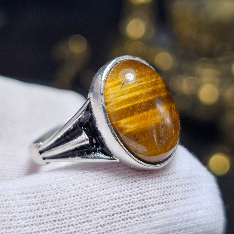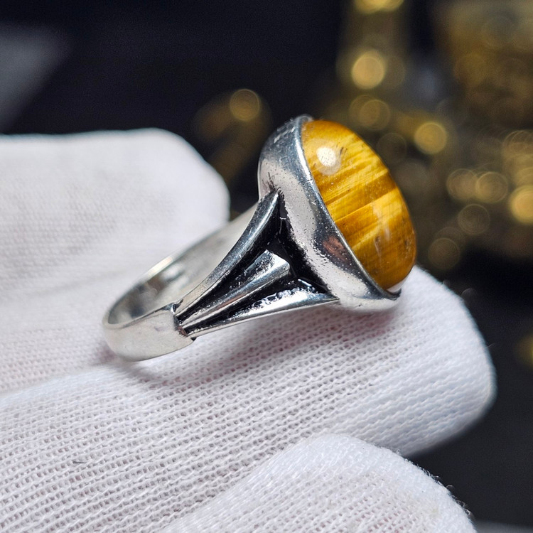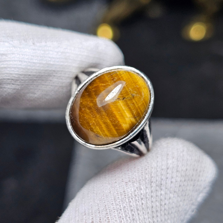 انگشتر نقره روس با سنگ طبیعی چشم ببر کد 37026