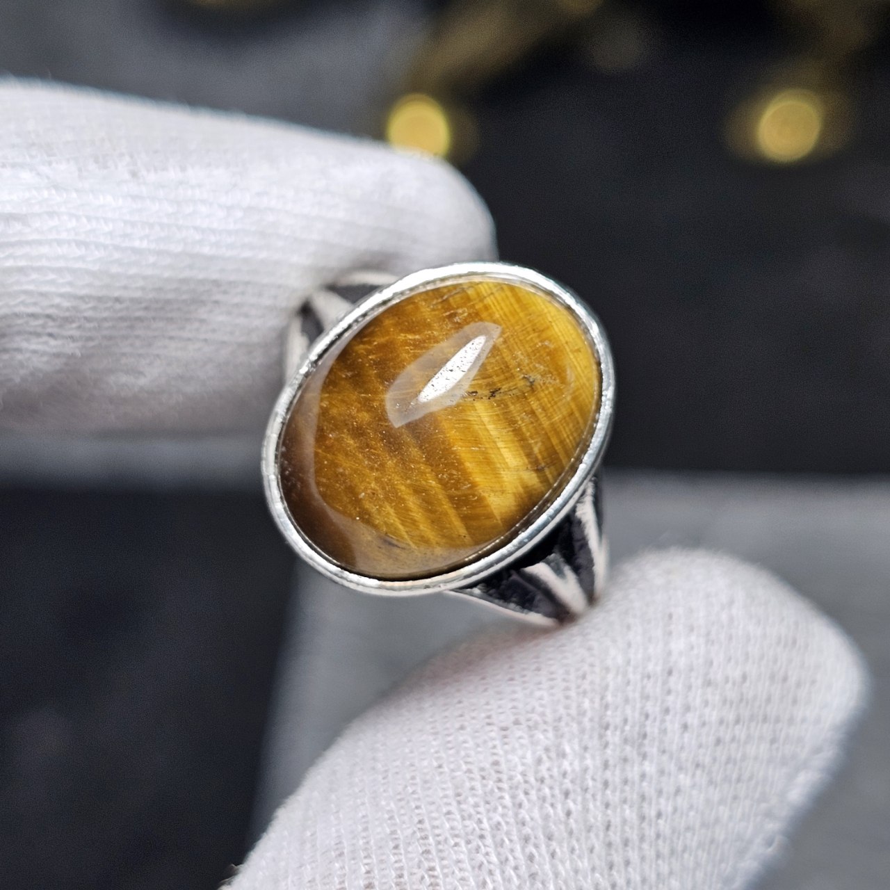 انگشتر نقره روس با سنگ طبیعی چشم ببر کد 37026