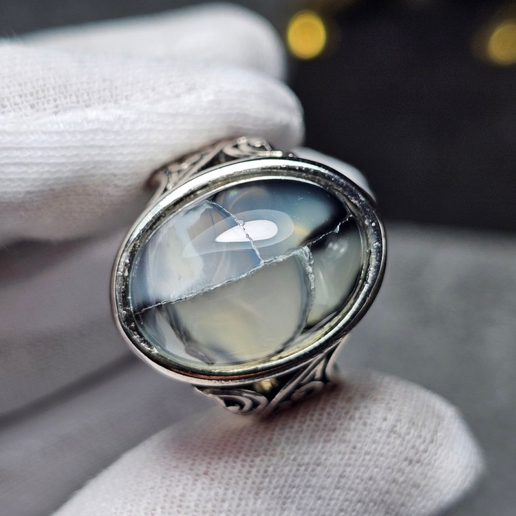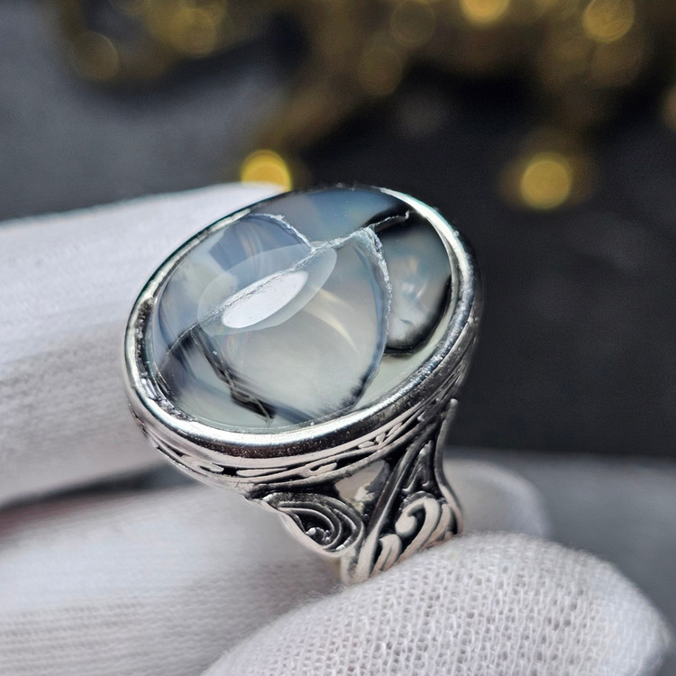 انگشتر نقره روس با سنگ عقیق دراگون معدنی