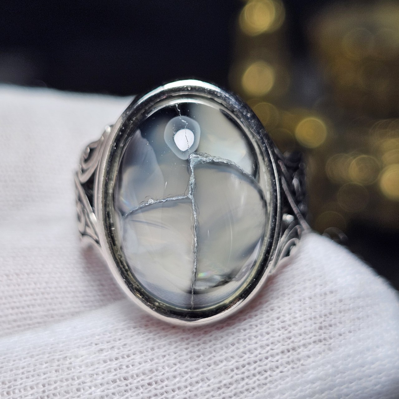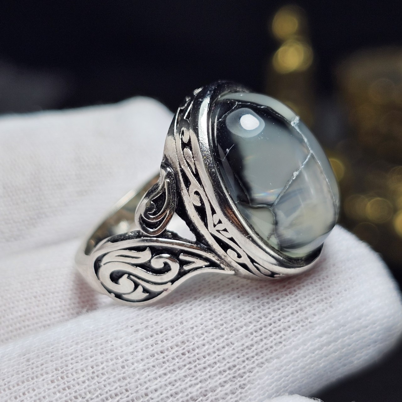 انگشتر نقره روس با سنگ عقیق دراگون معدنی