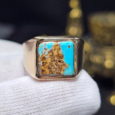 انگشتر طلا روس با سنگ فیروزه معدنی اصل نیشابور