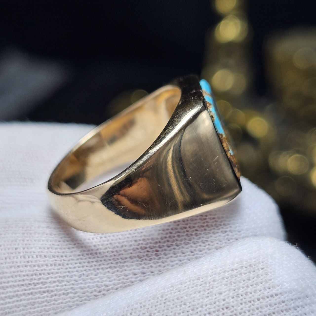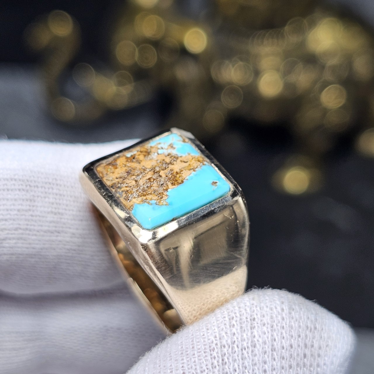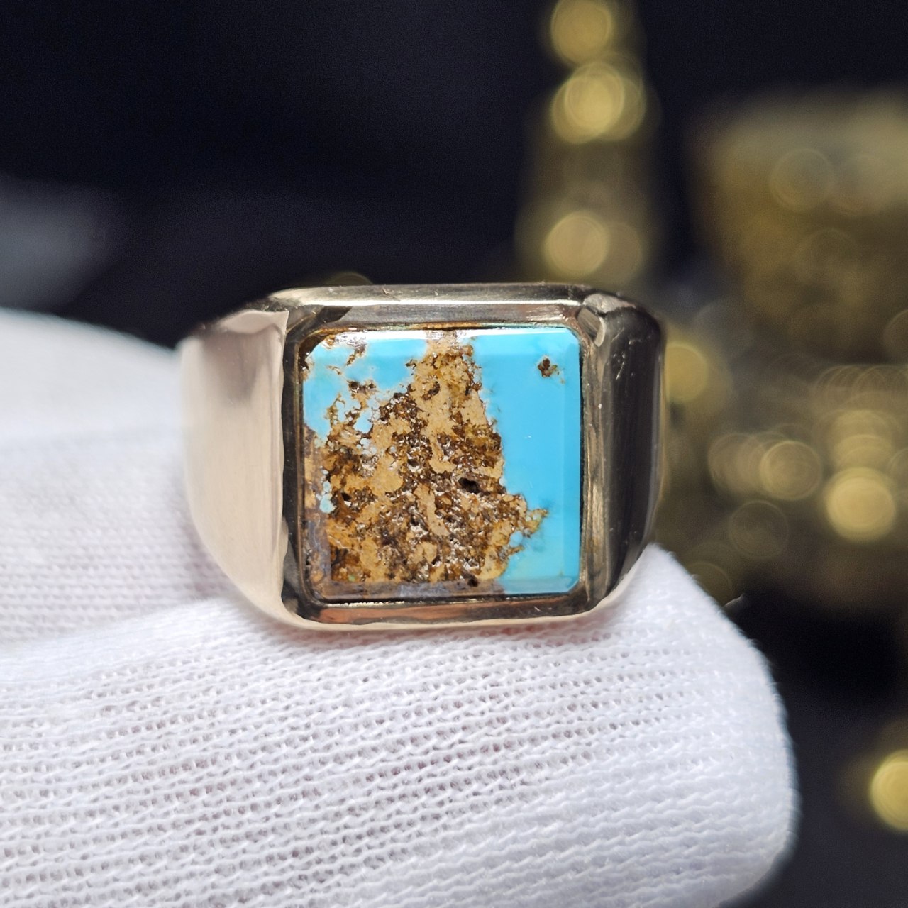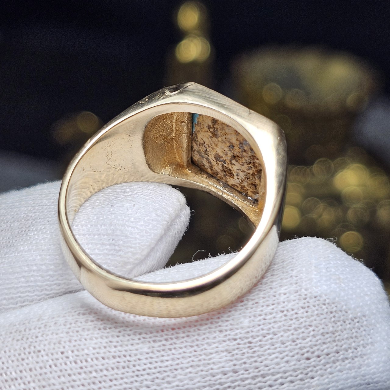 انگشتر طلا روس با سنگ فیروزه معدنی اصل نیشابور