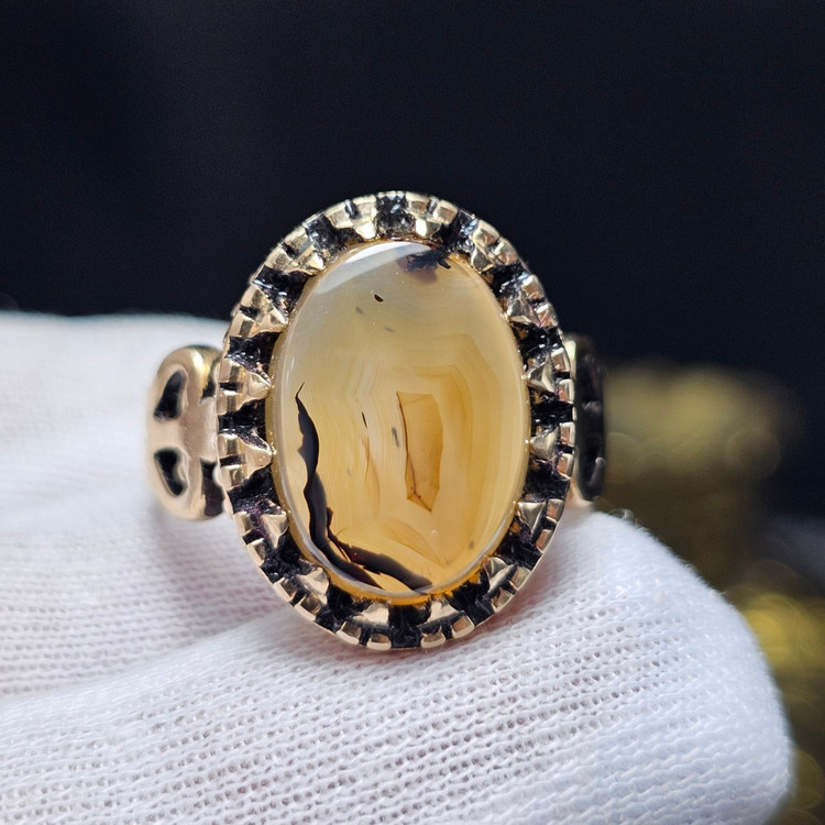 انگشتر طلا روس با سنگ طبیعی عقیق جزع معدنی خراسانی