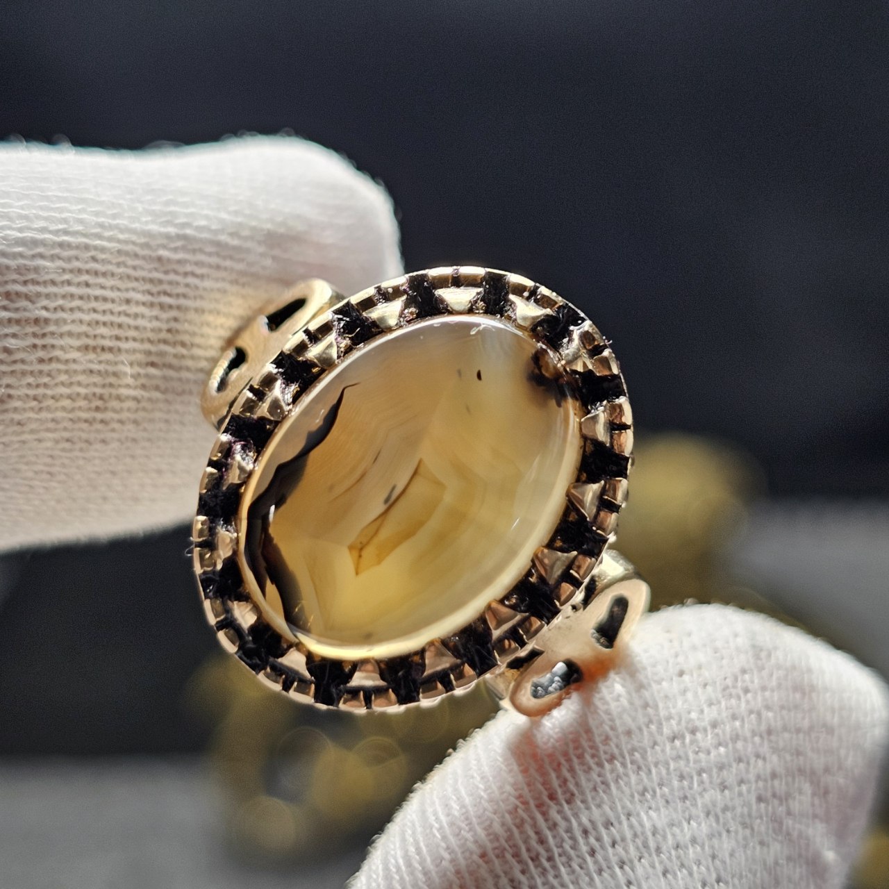 انگشتر طلا روس با سنگ طبیعی عقیق جزع معدنی خراسانی
