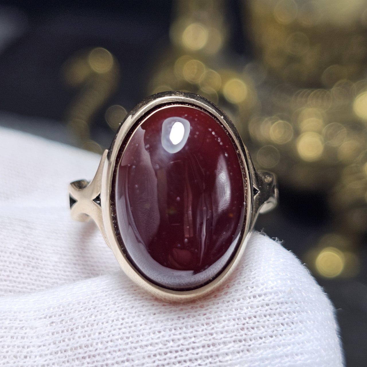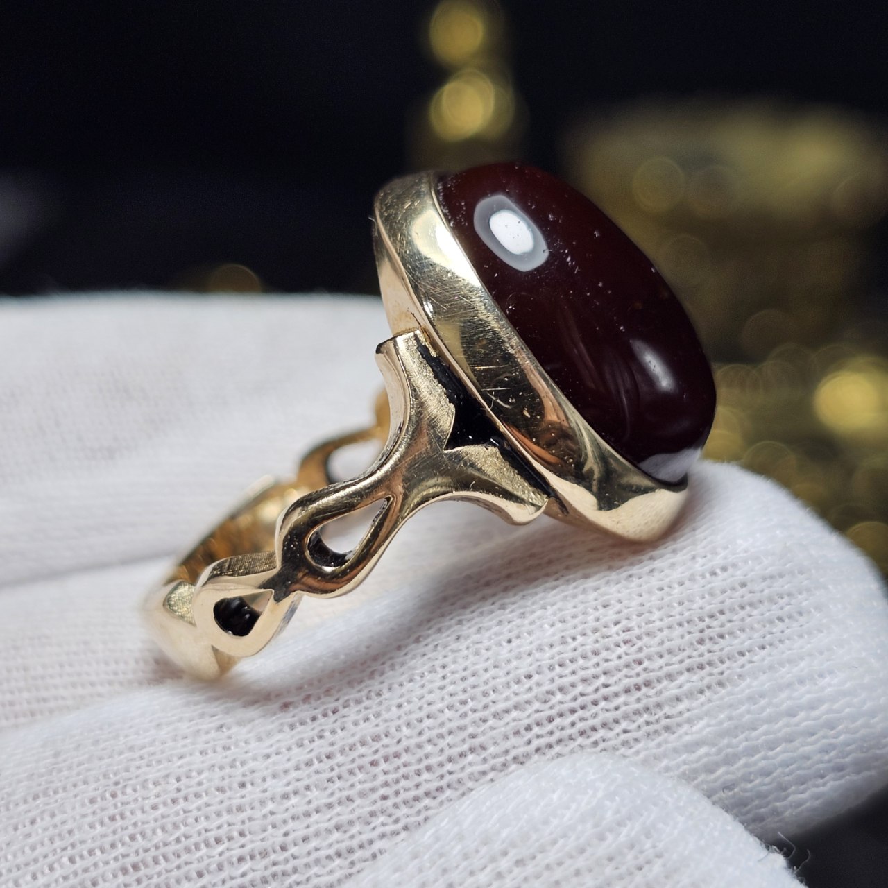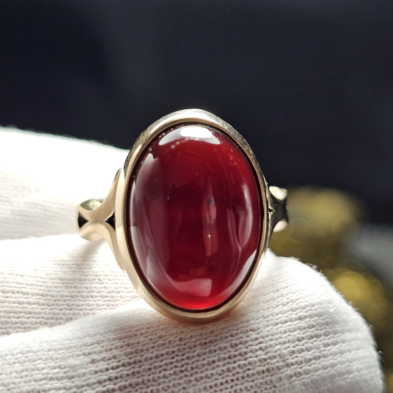 انگشتر طلا روس با سنگ عقیق جگری معدنی