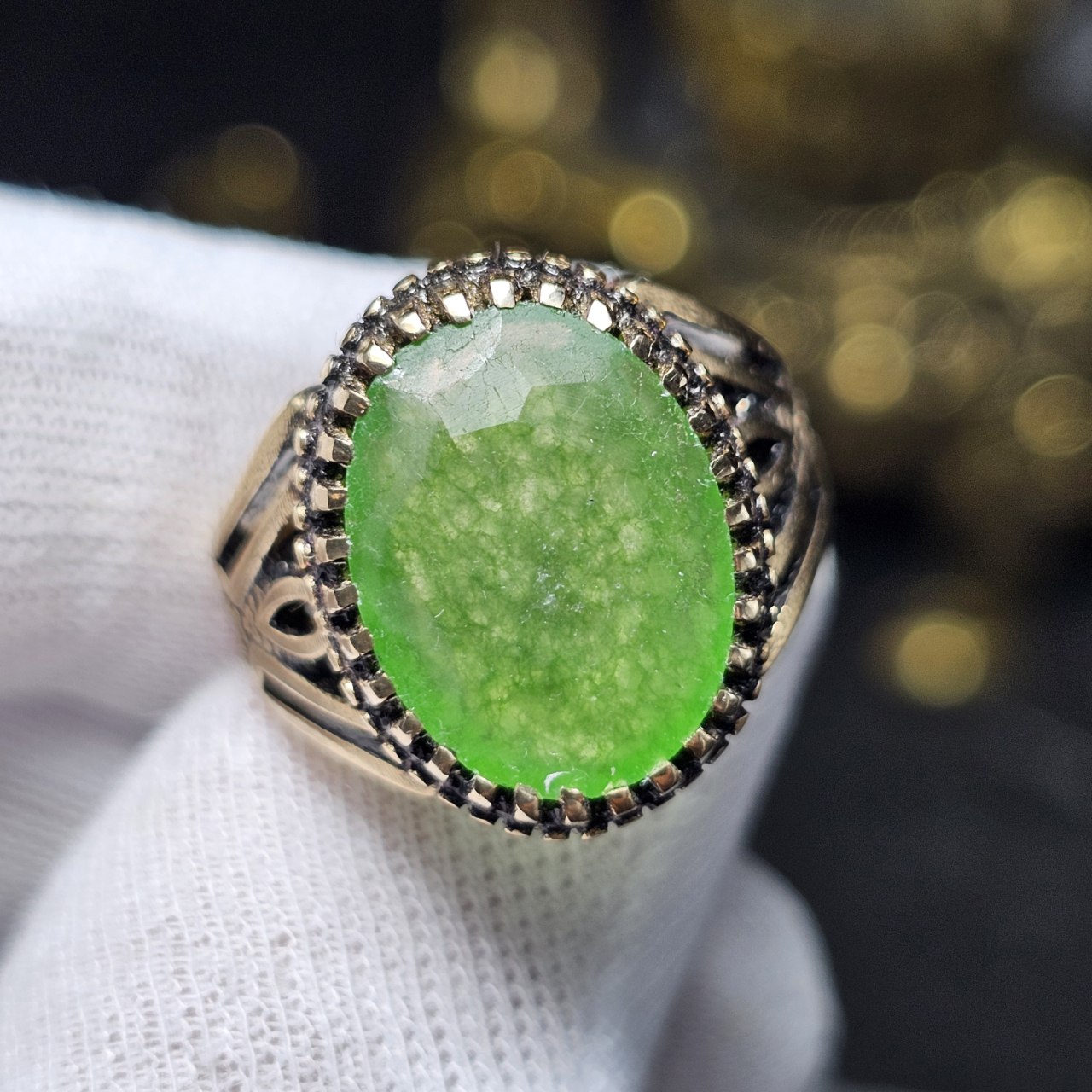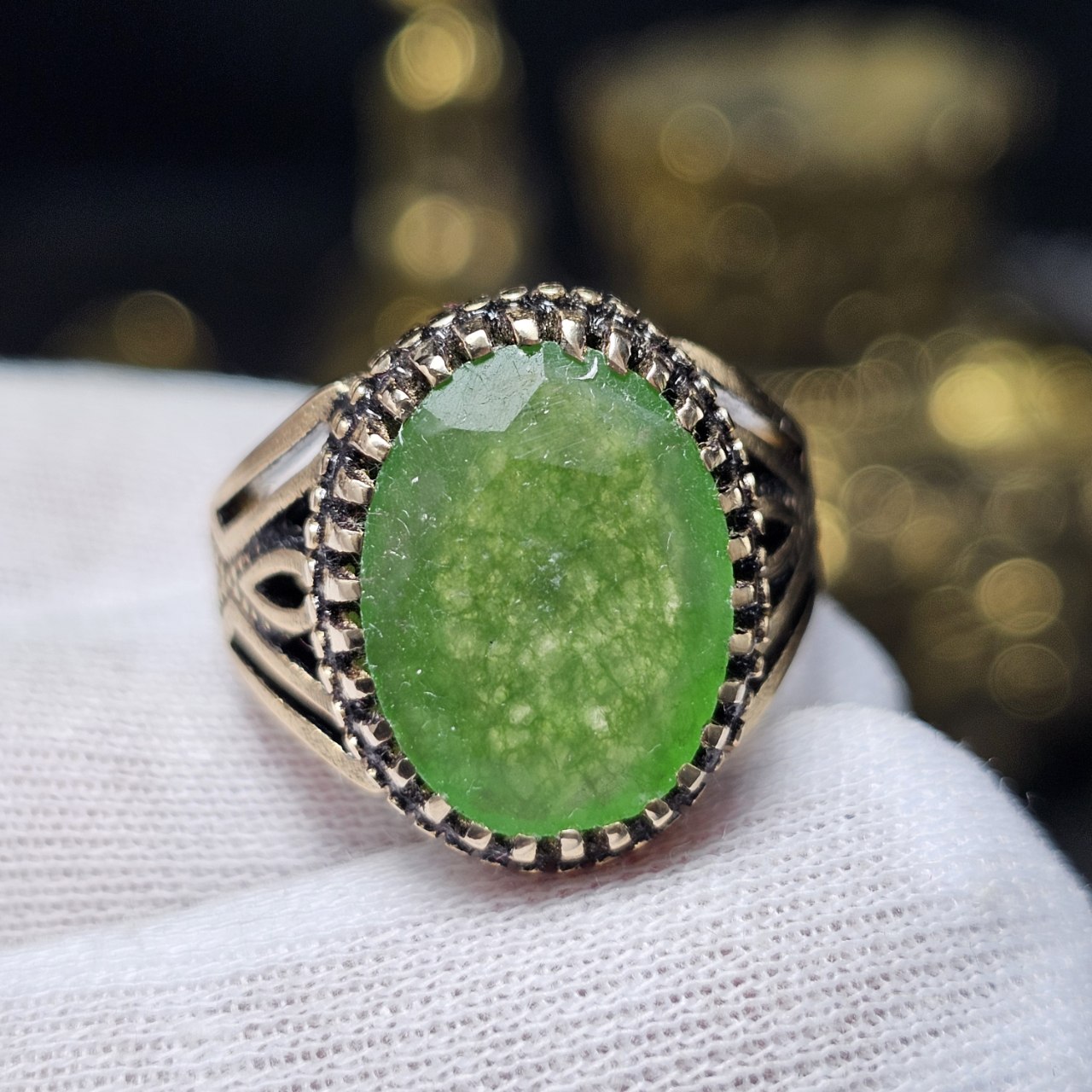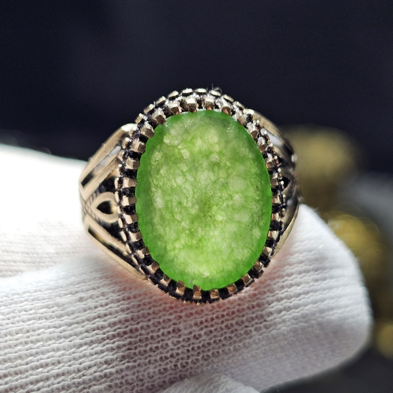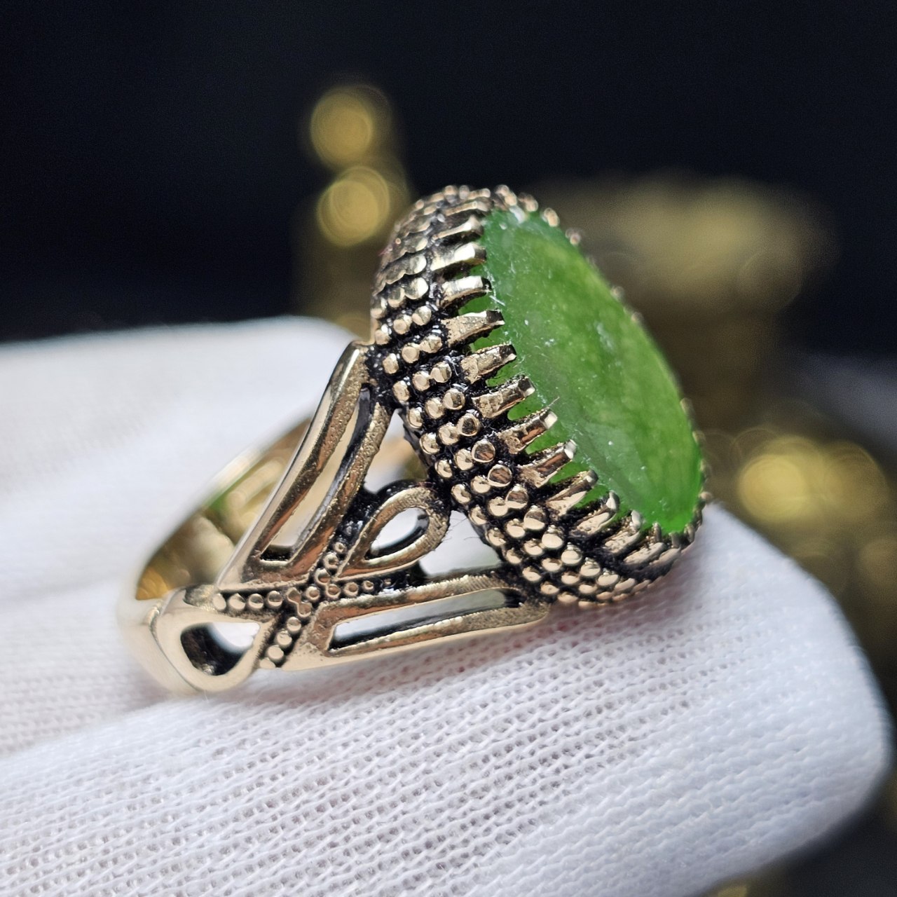 انگشتر طلا روس با سنگ جید زمردی معدنی