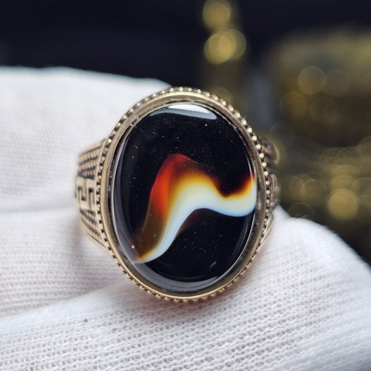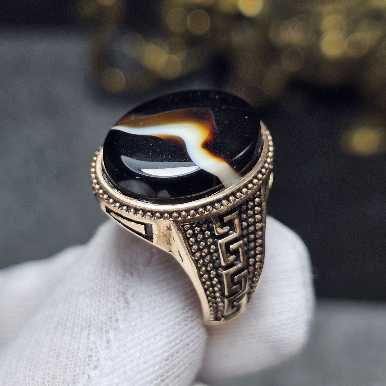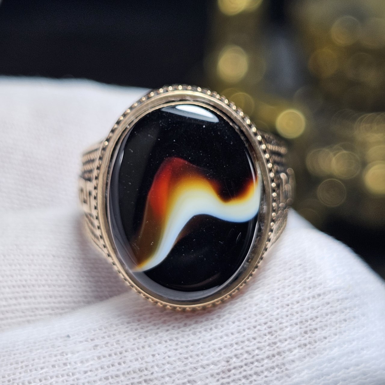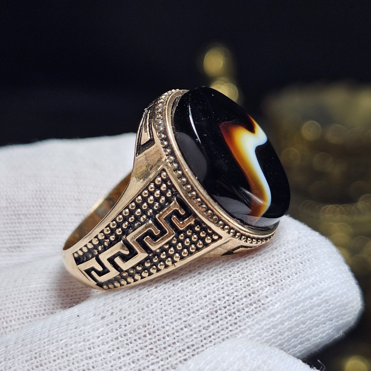 انگشتر طلا روس با سنگ عقیق سلیمانی معدنی خراسانی