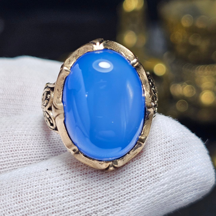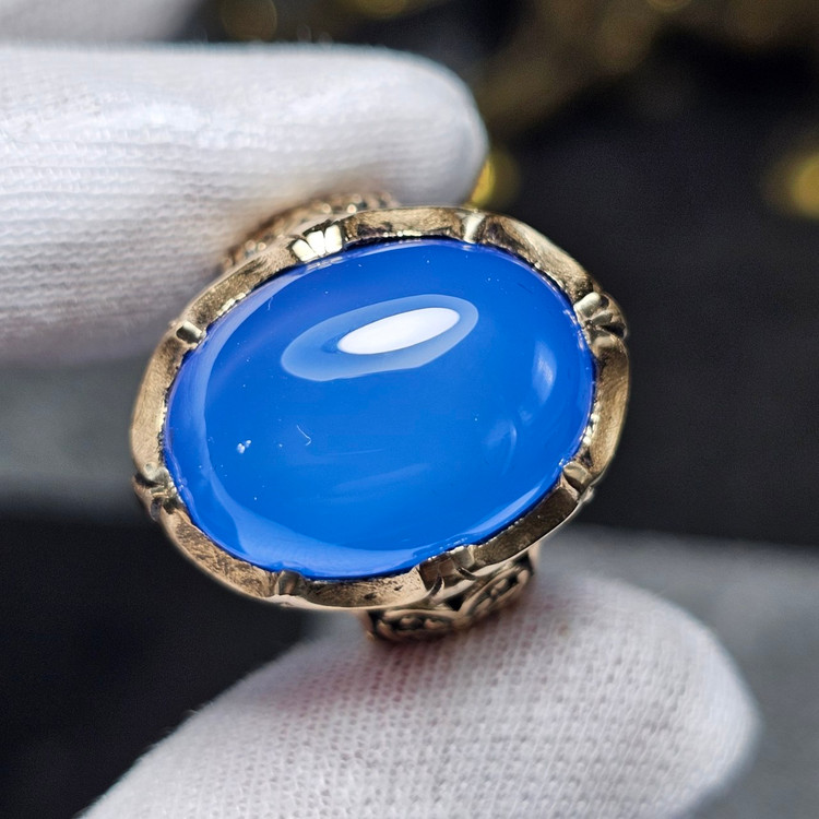 انگشتر طلا روس با سنگ عقیق آبی معدنی