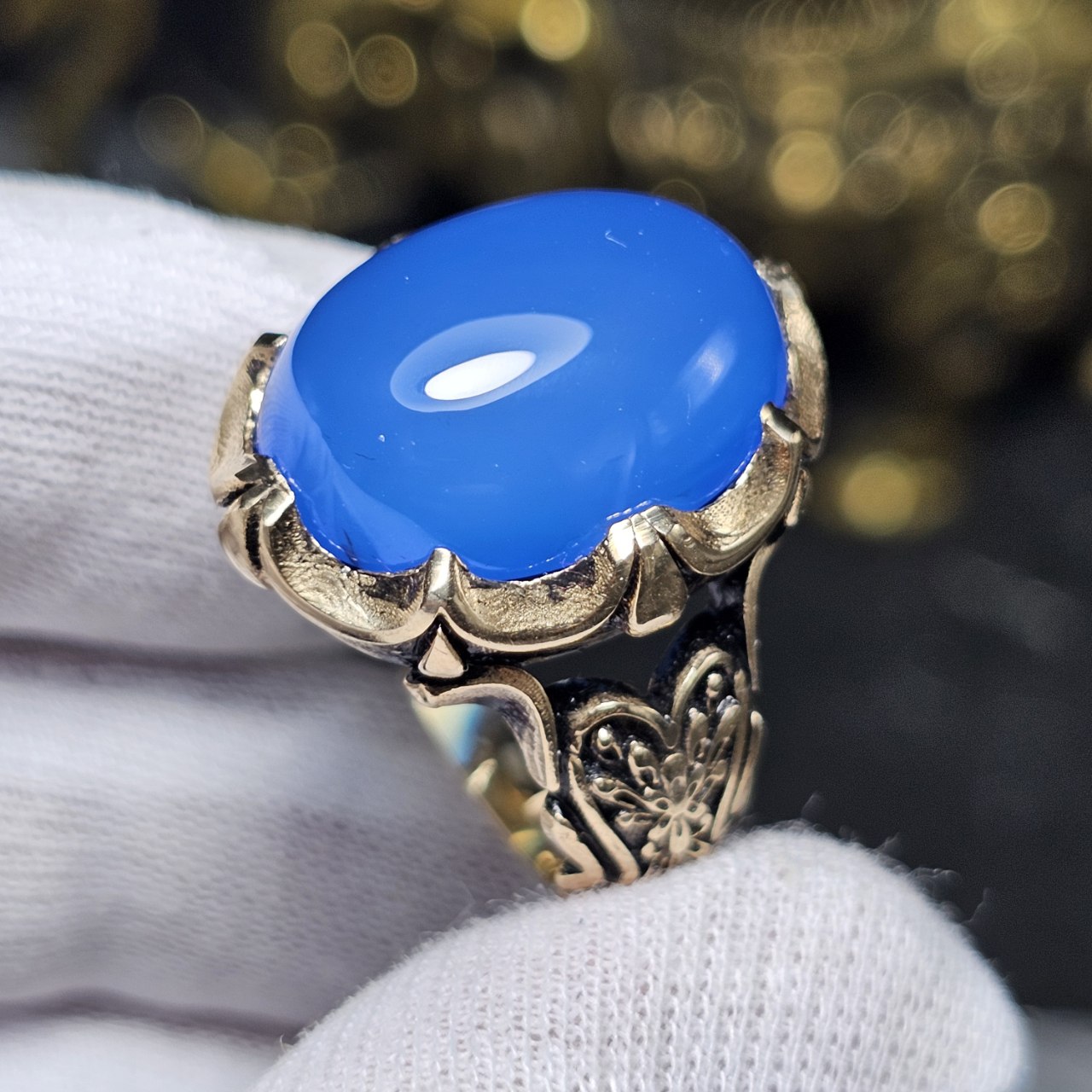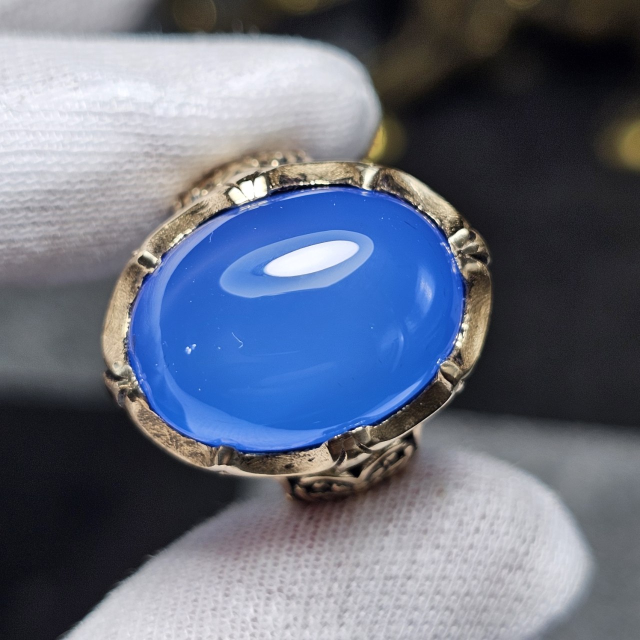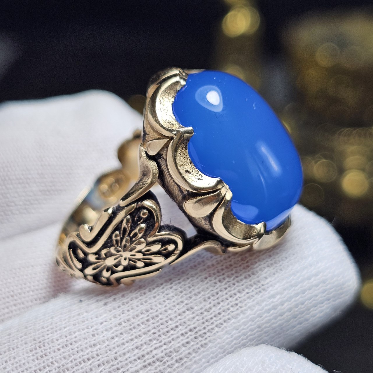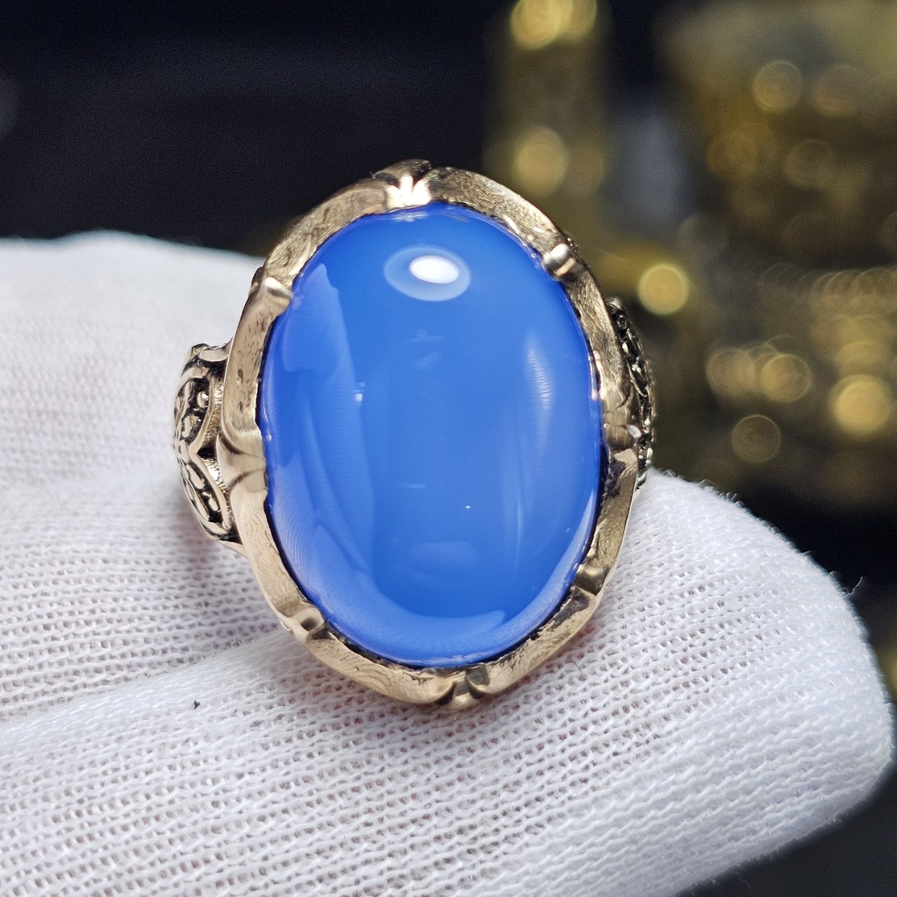 انگشتر طلا روس با سنگ عقیق آبی معدنی