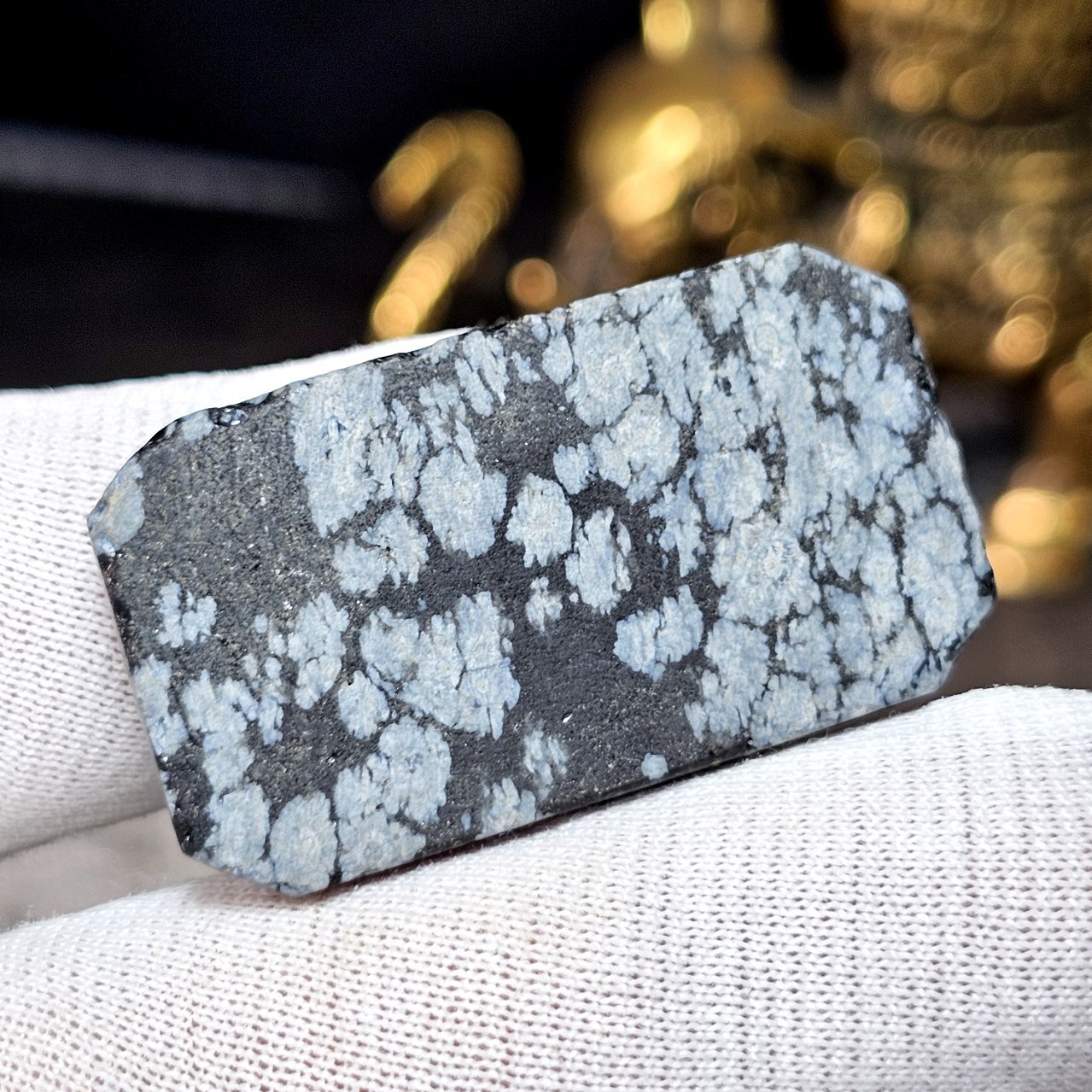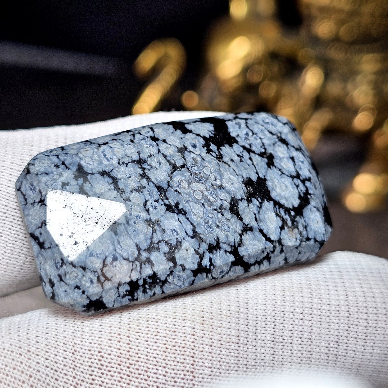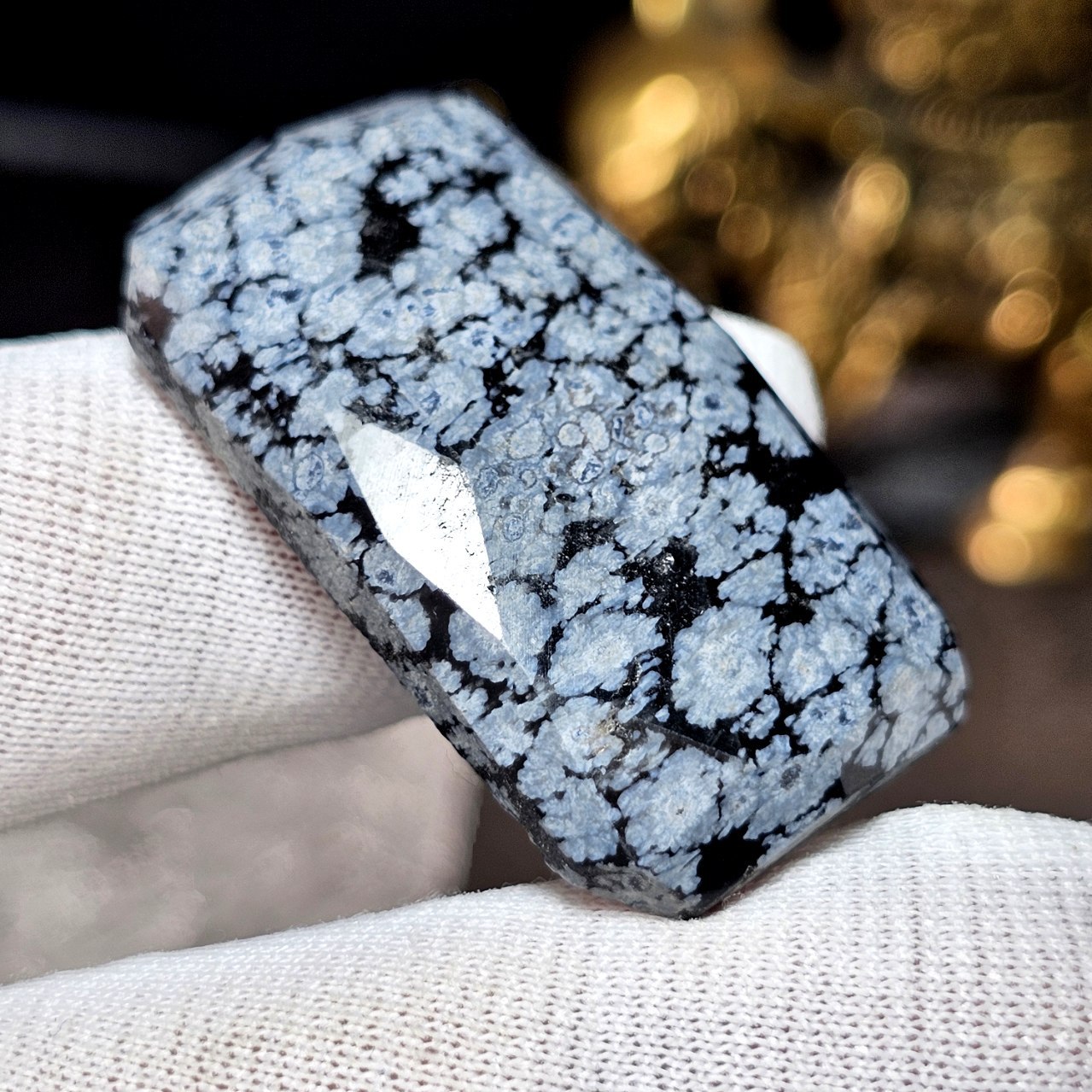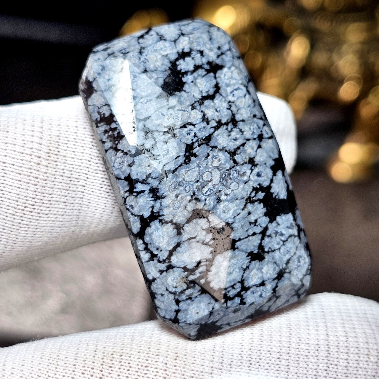 نگین درشت سنگ طبیعی ابسیدین لکه برفی معدنی تراش فست کد 36260 ▪️ابعاد : ۴۰ در ۲۳ میلیمتر ▪️وزن : ۱۱ گرم