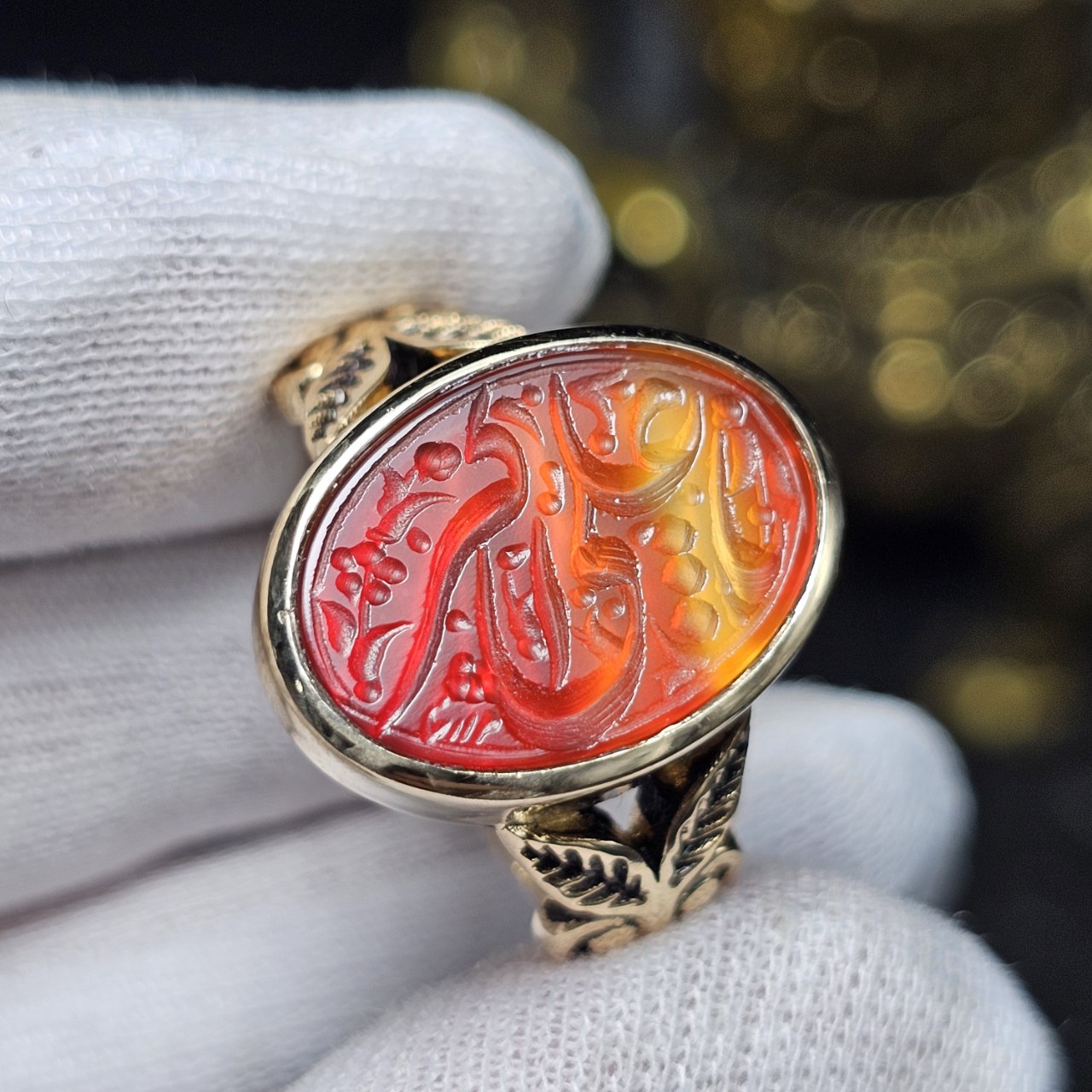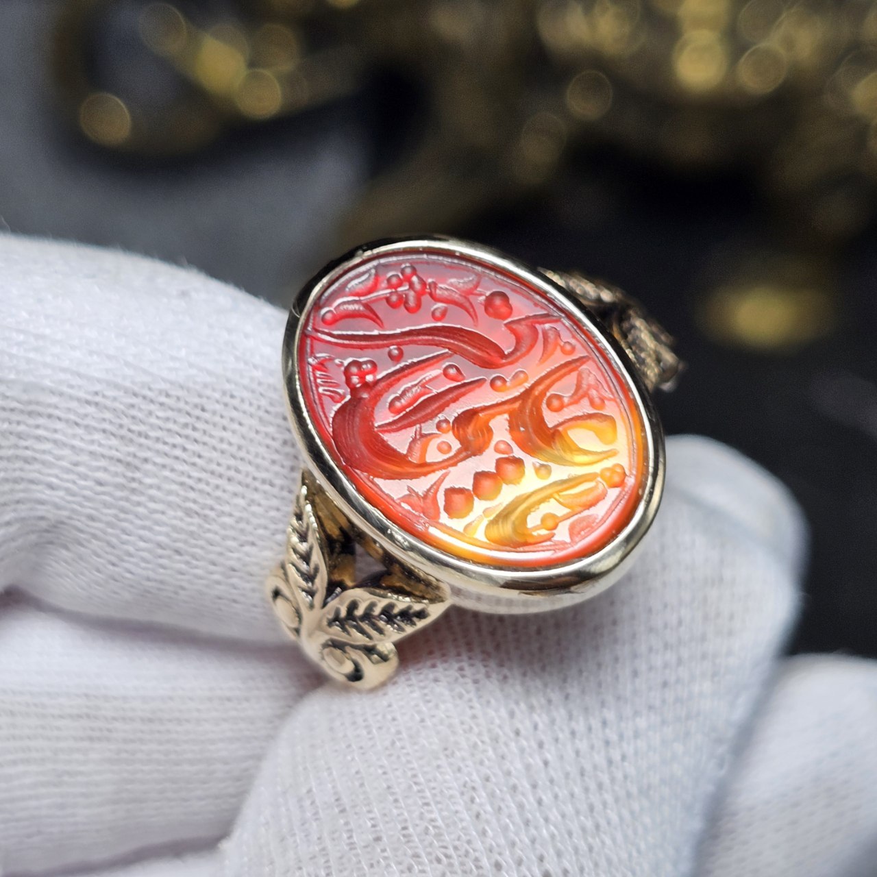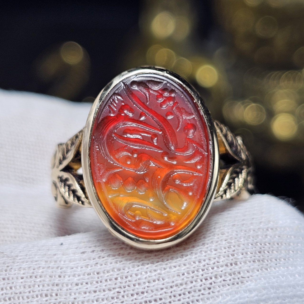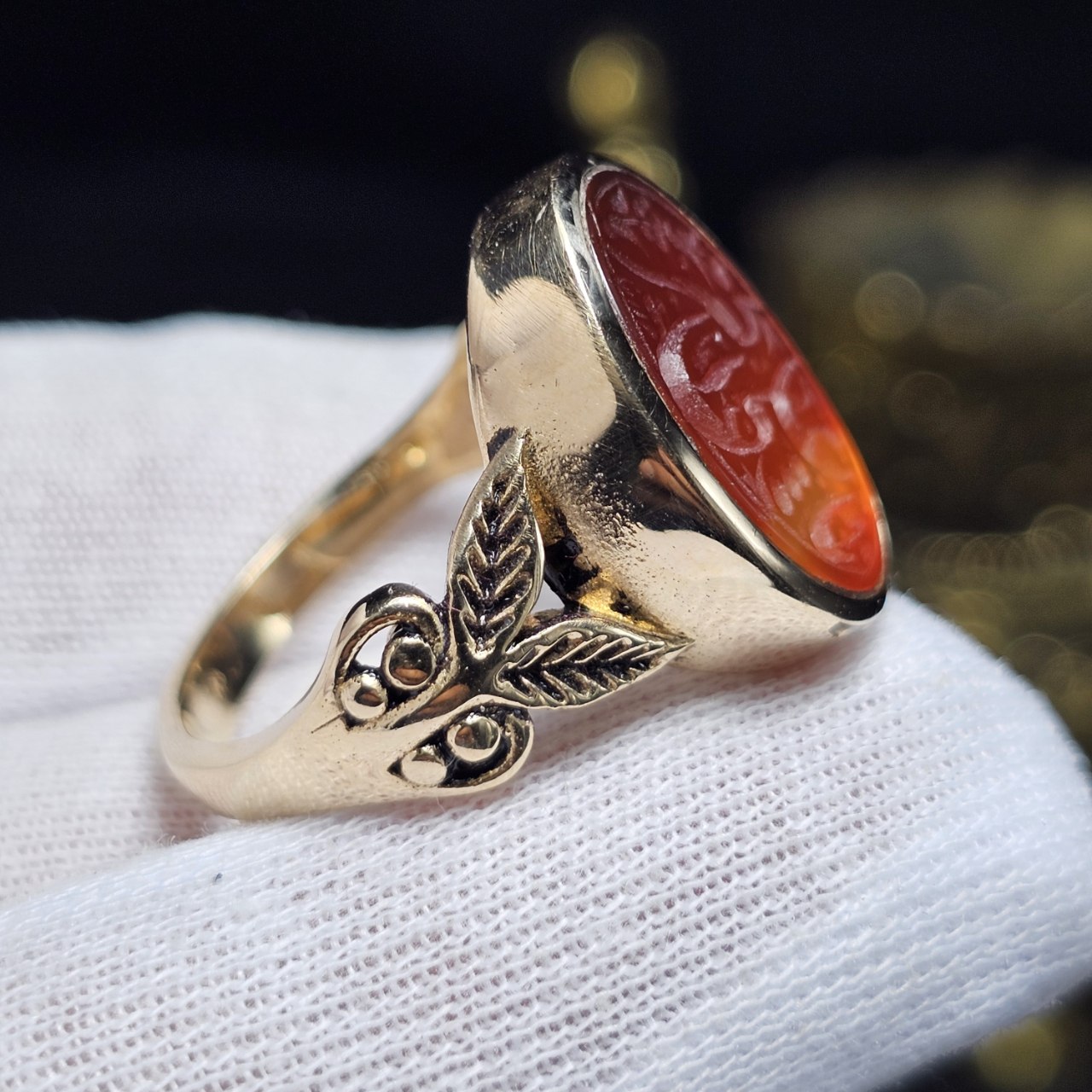 انگشتر طلا روس با سنگ عقیق معدنی خط دست