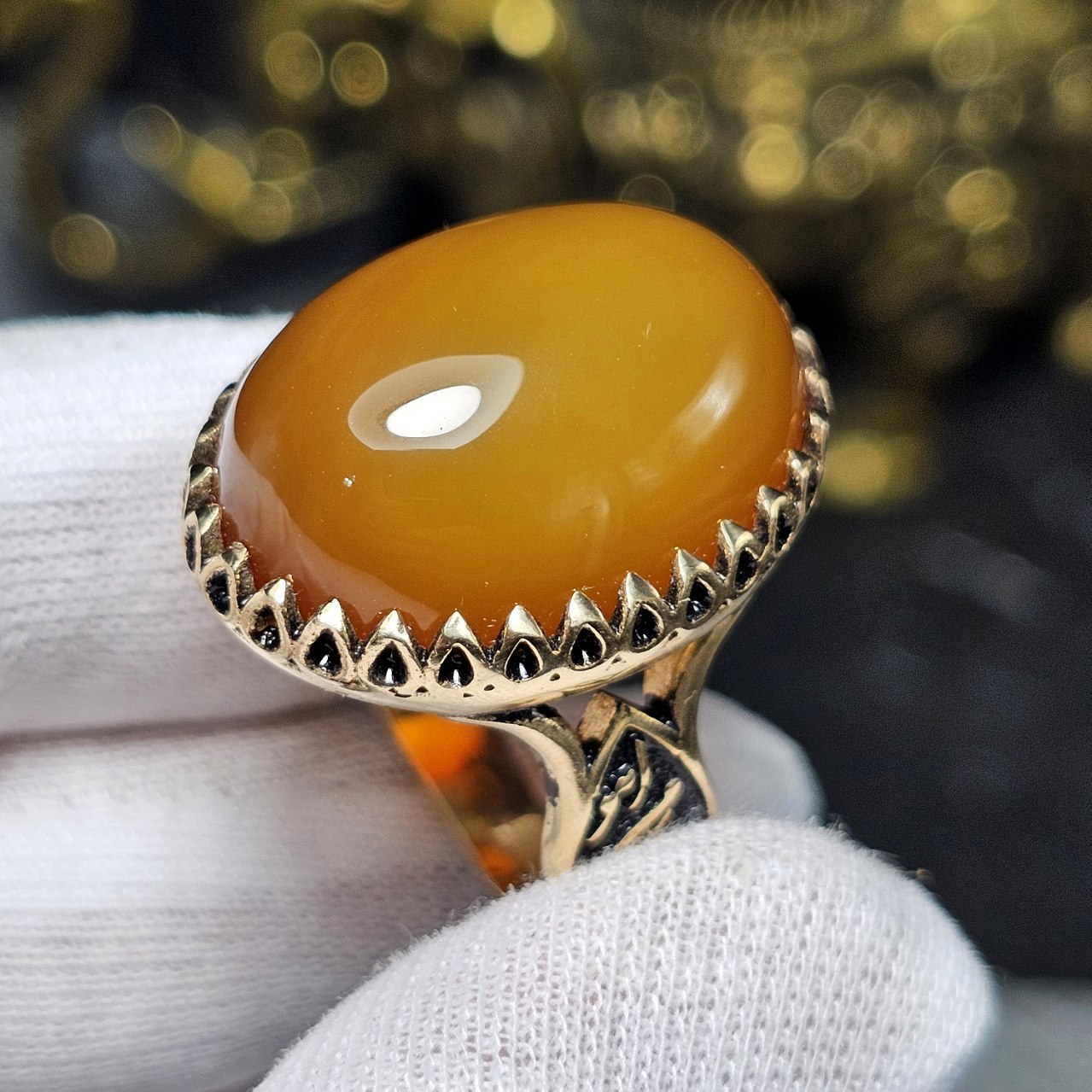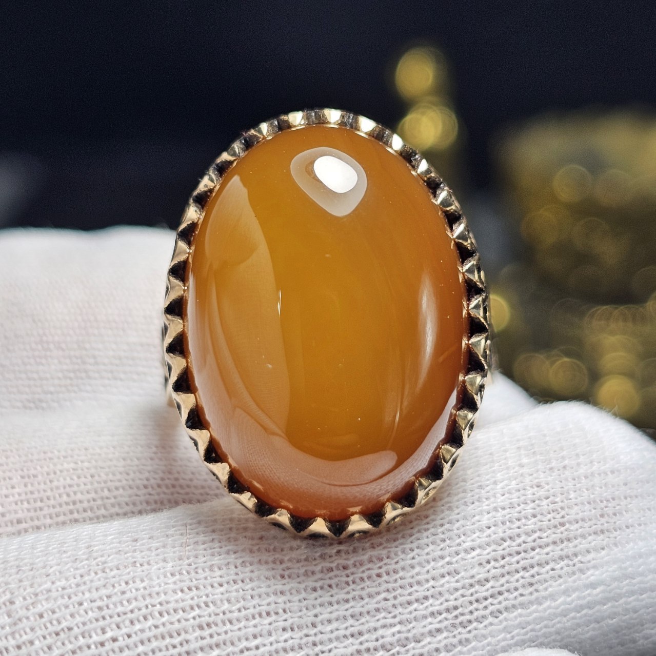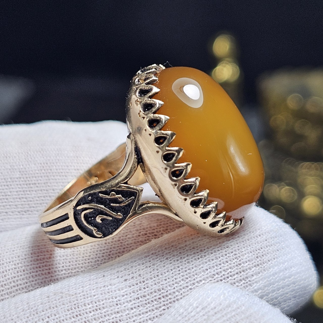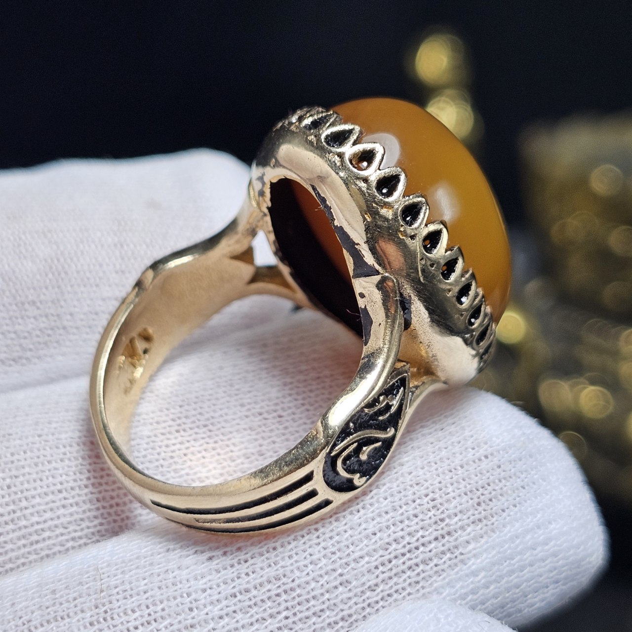 انگشتر طلا روس با سنگ عقیق جزع معدنی