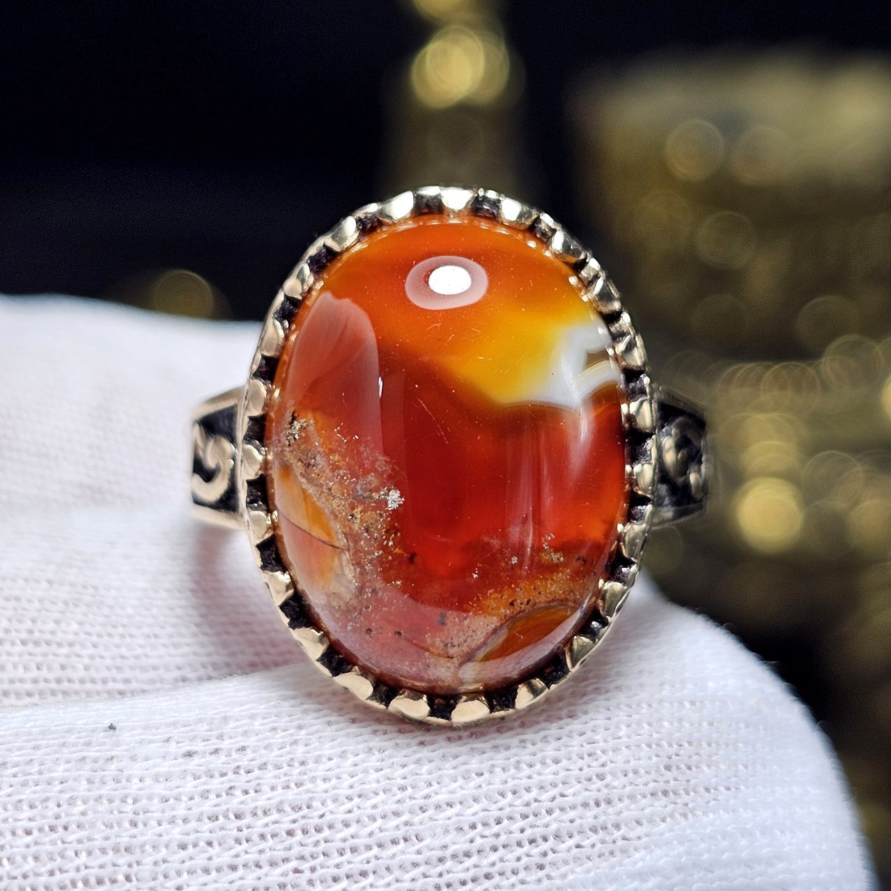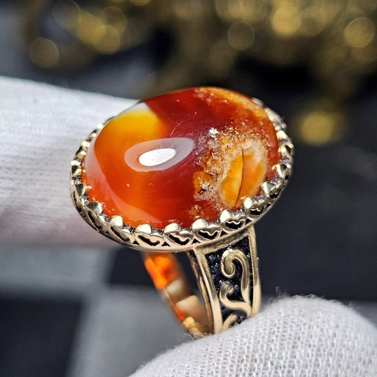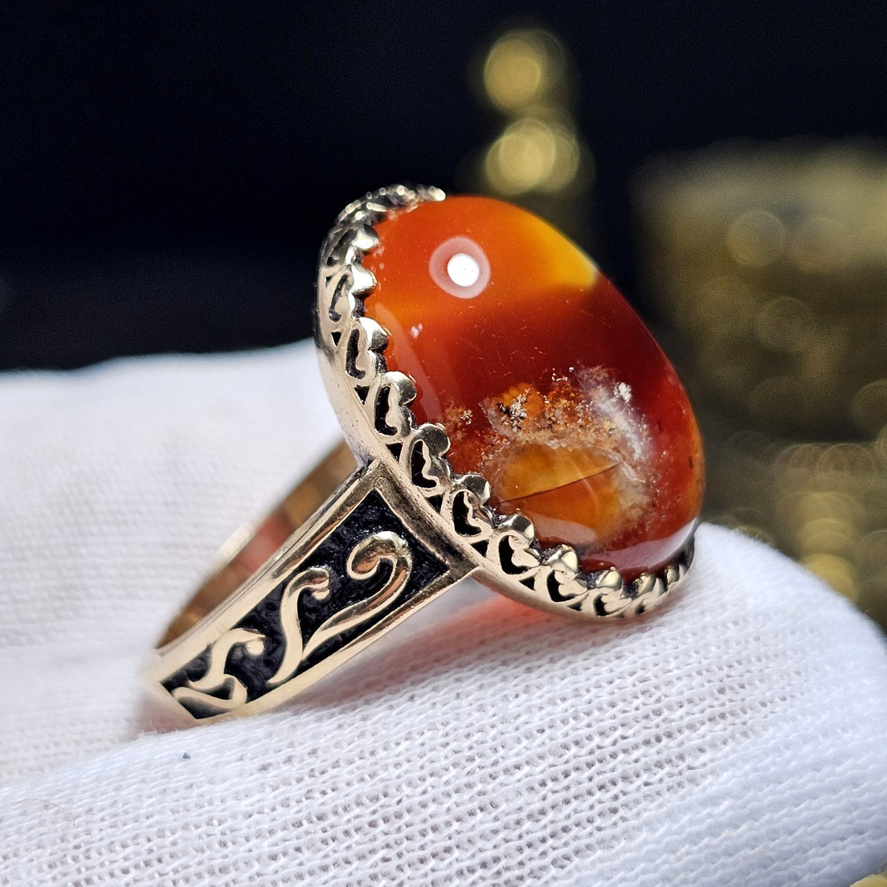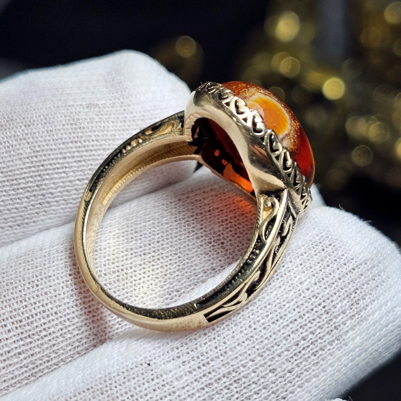 انگشتر طلا روس با سنگ عقیق معدنی خراسانی کد 37065