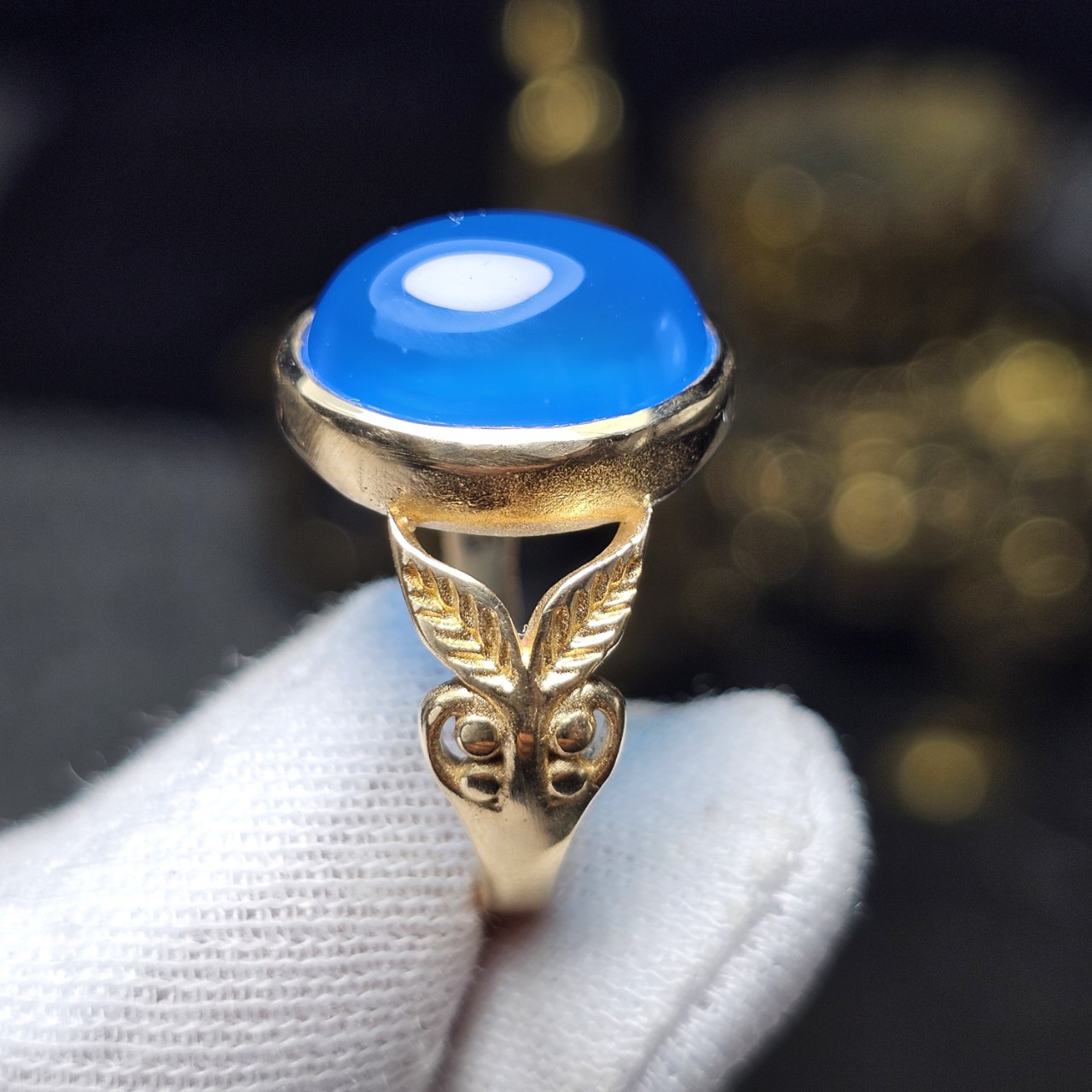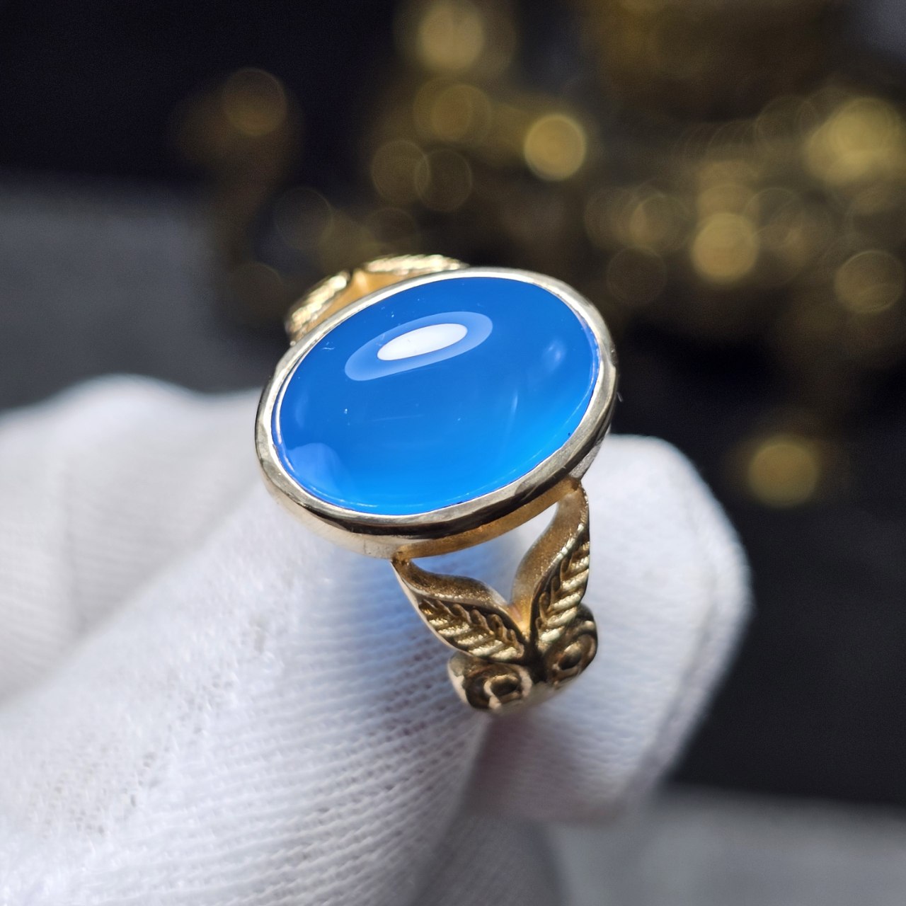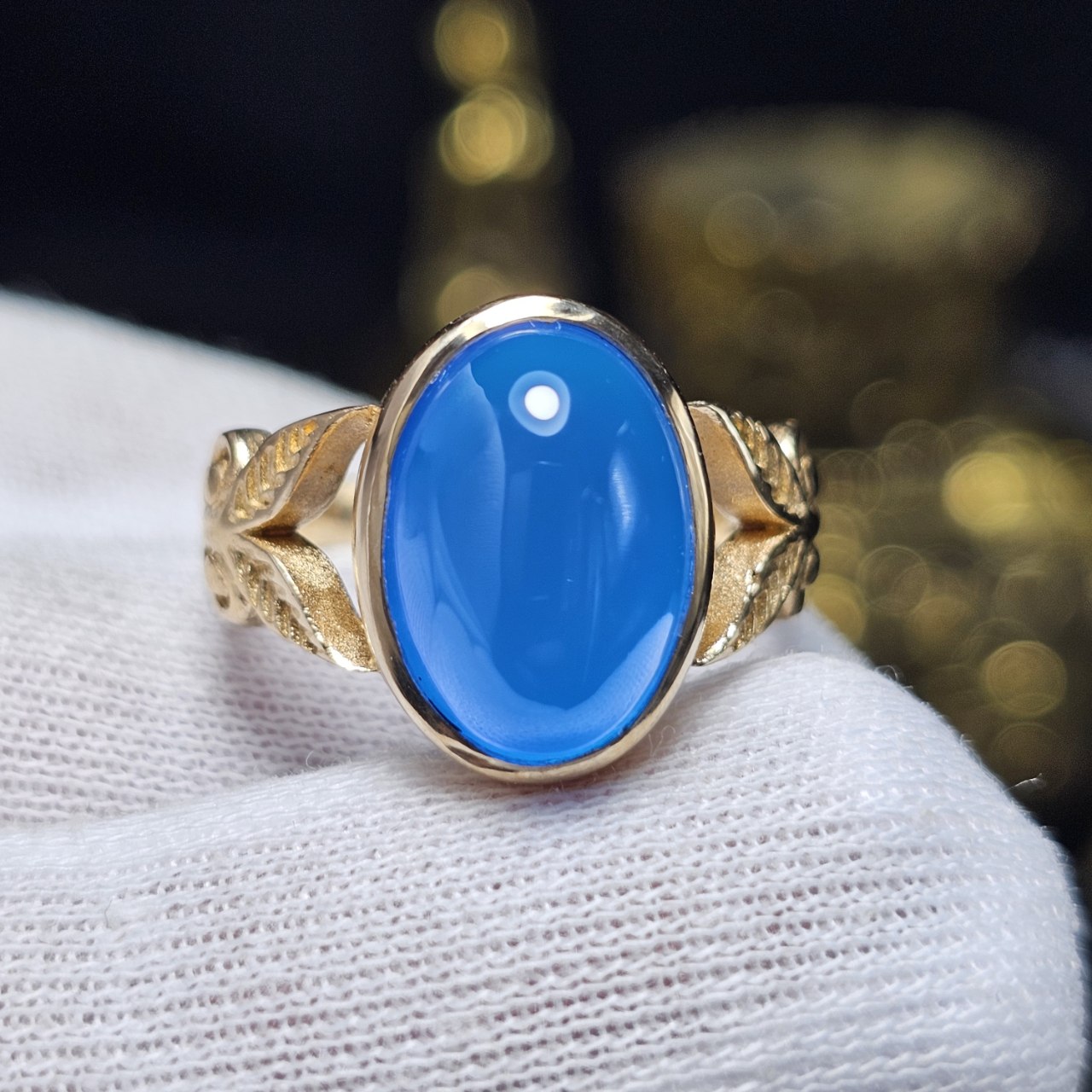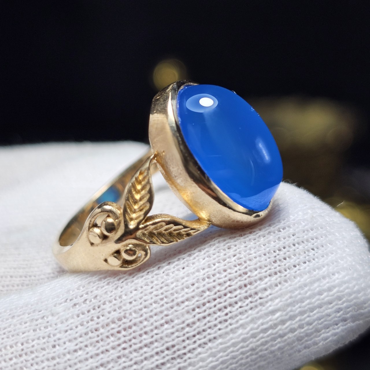 انگشتر طلا روس با سنگ عقیق آبی معدنی