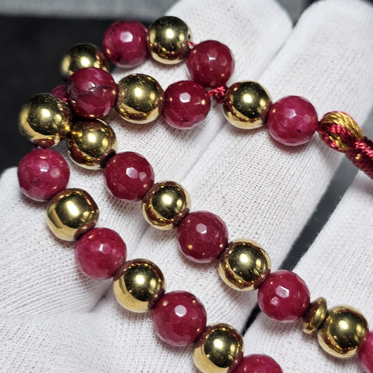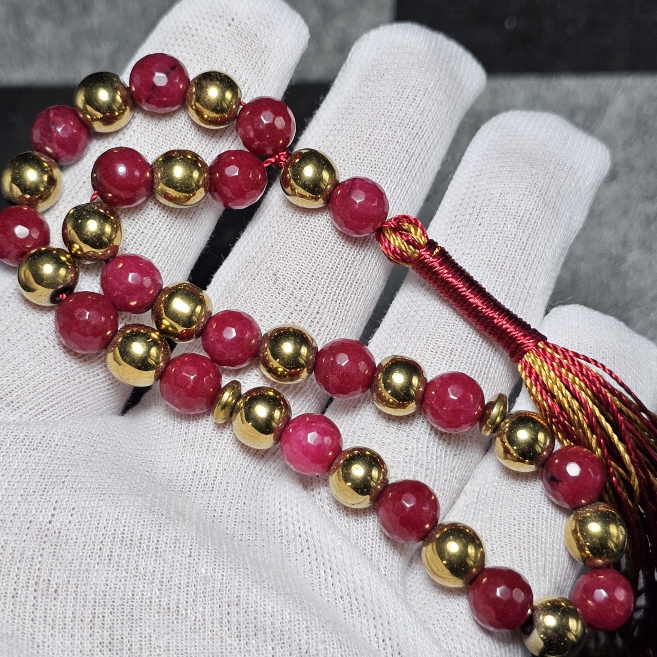 تسبیح ۳۳ دانه سنگ جید یاقوتی و حدید معدنی