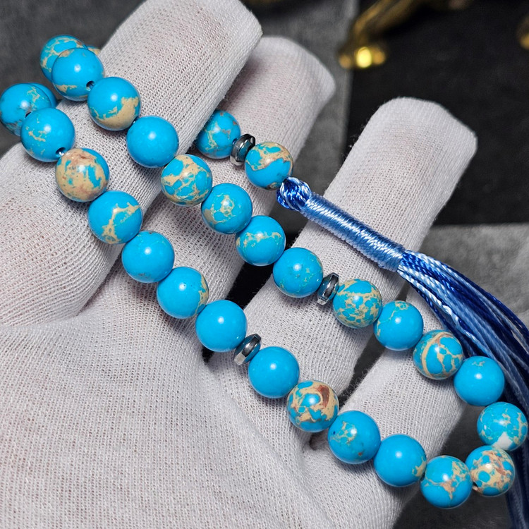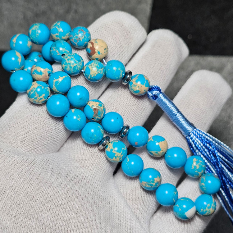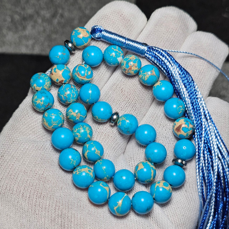 تسبیح ۳۳ دانه سنگ فیروزه اقیانوسی