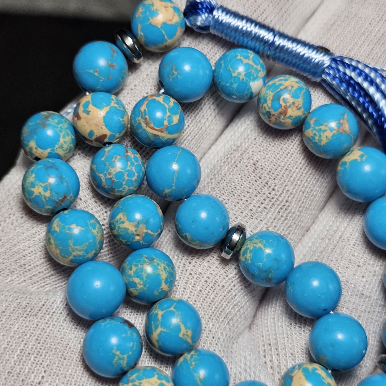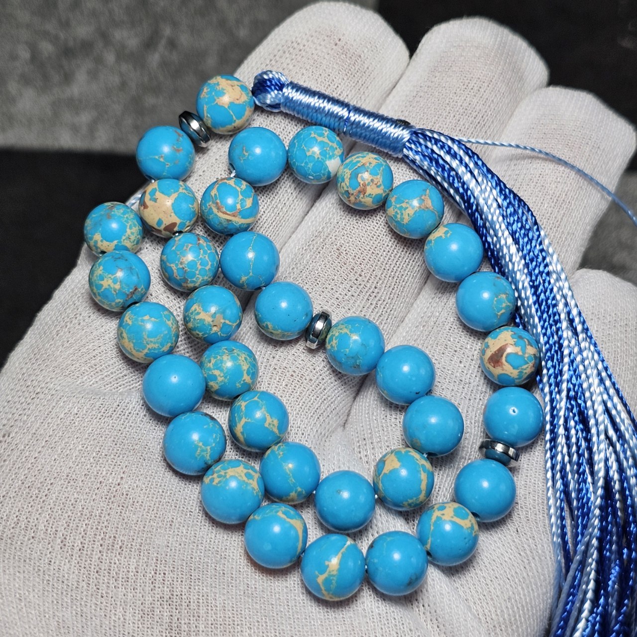 تسبیح ۳۳ دانه سنگ فیروزه اقیانوسی