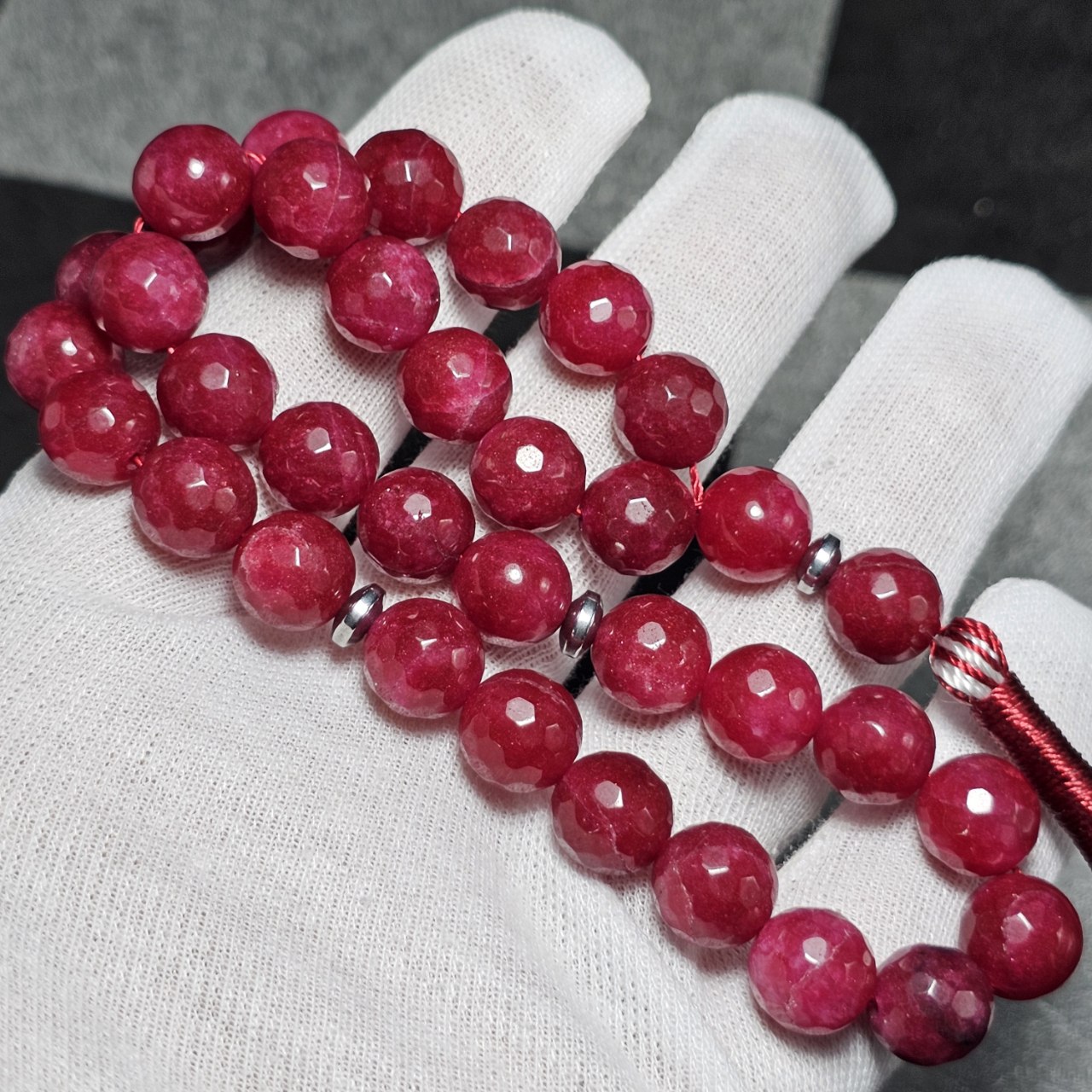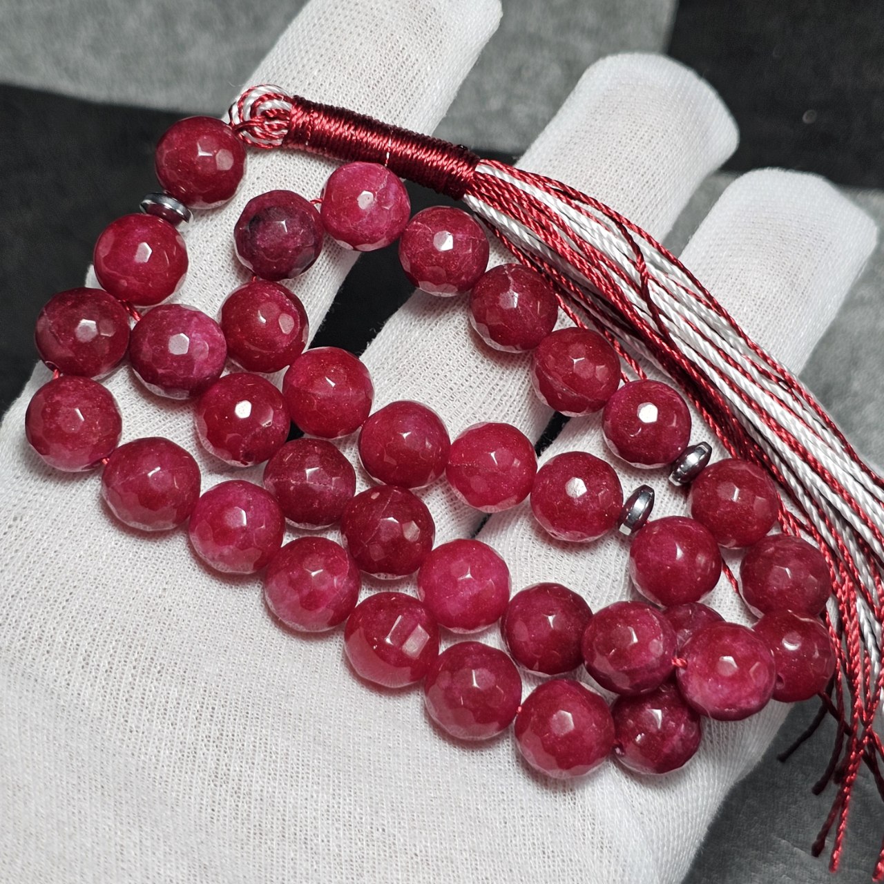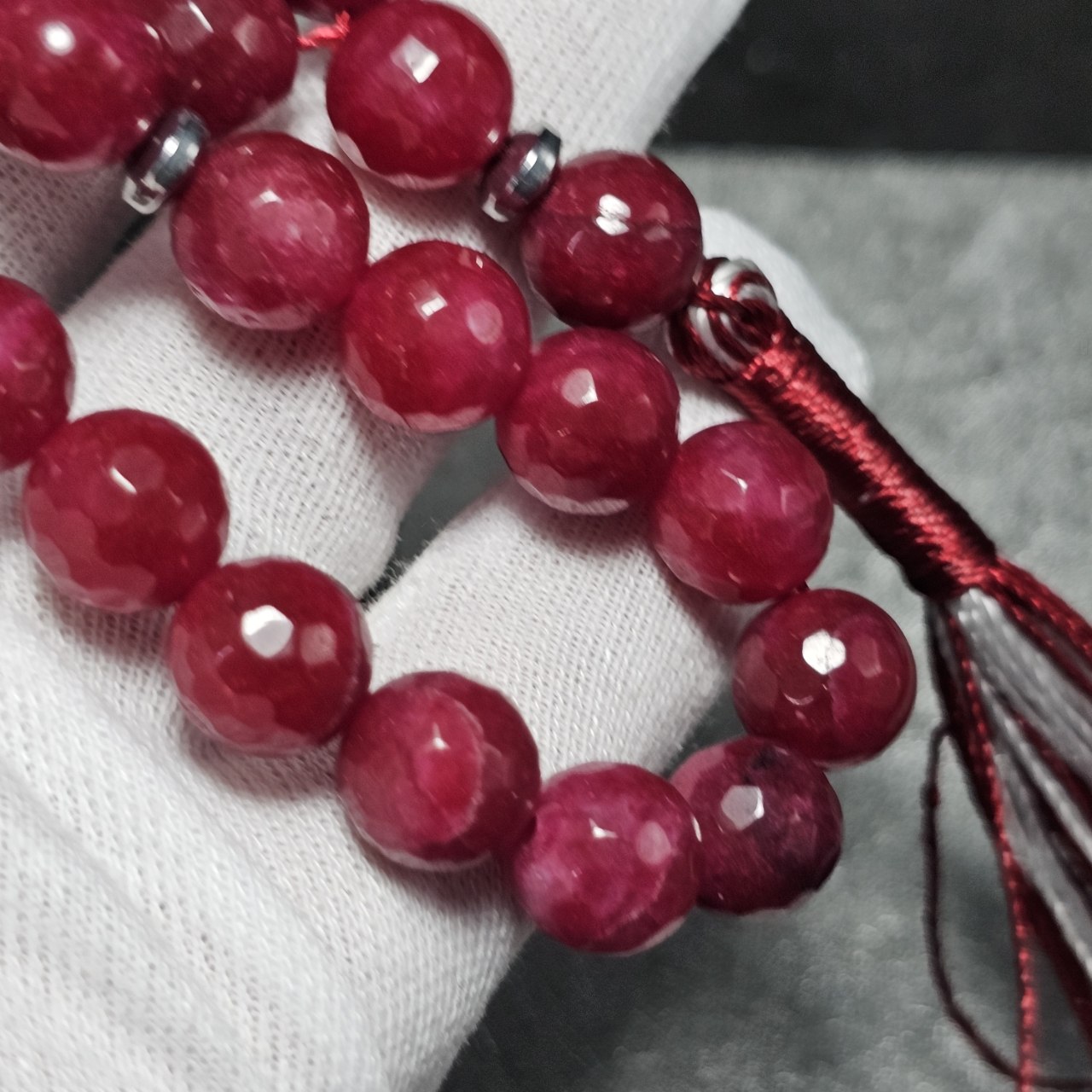 تسبیح ۳۳ دانه سنگ جید یاقوتی معدنی تراش دار