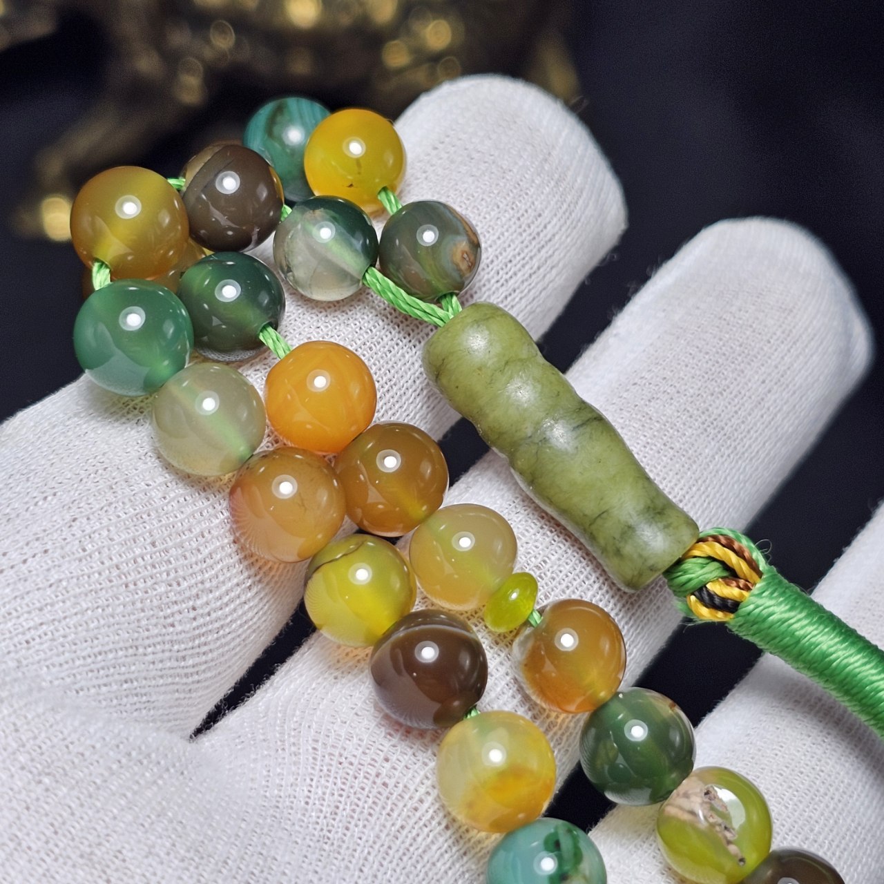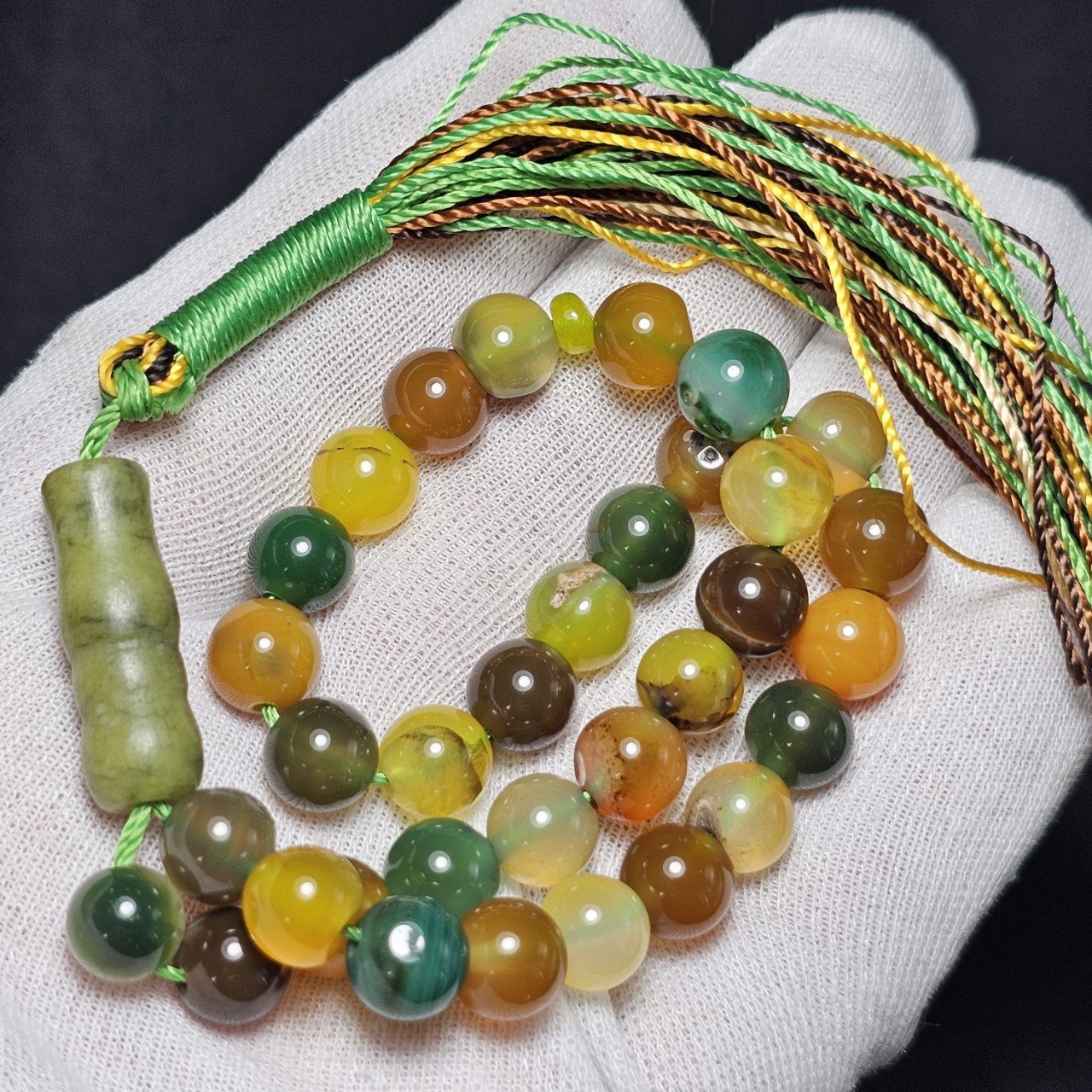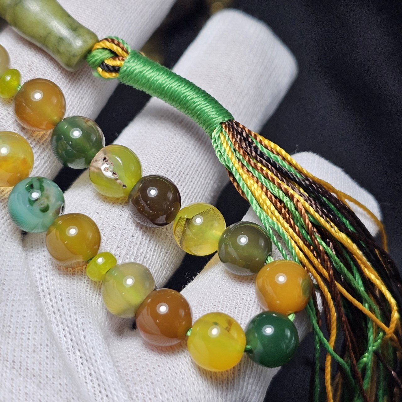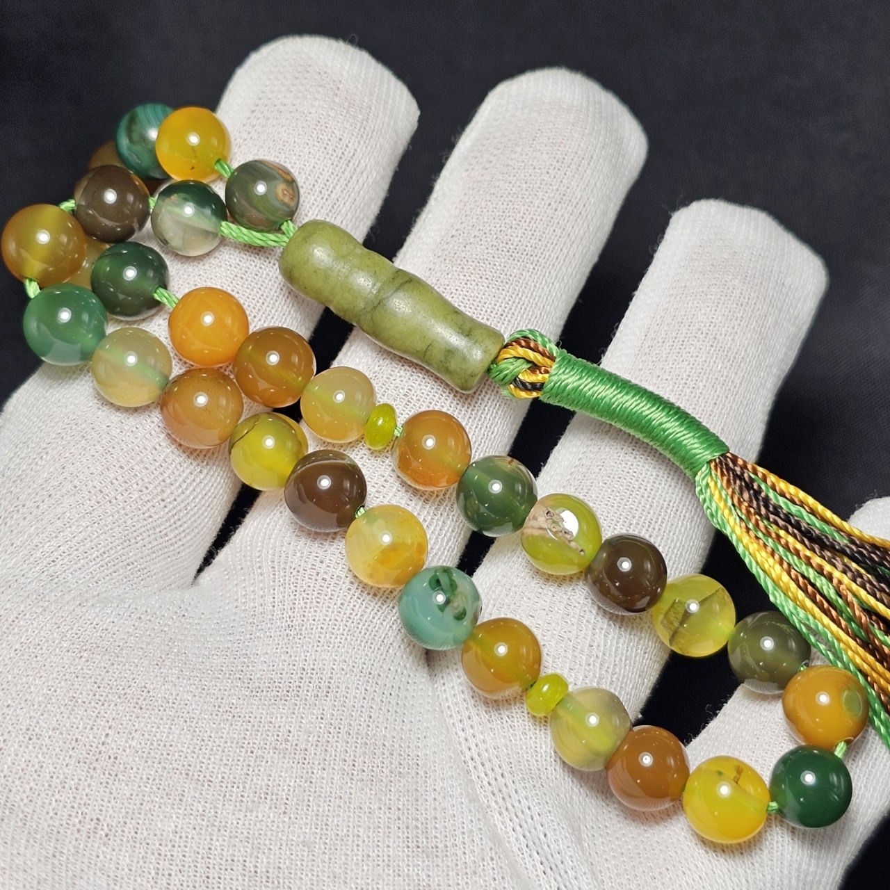 تسبیح ۳۳ دانه سنگ عقیق سبز زرد معدنی