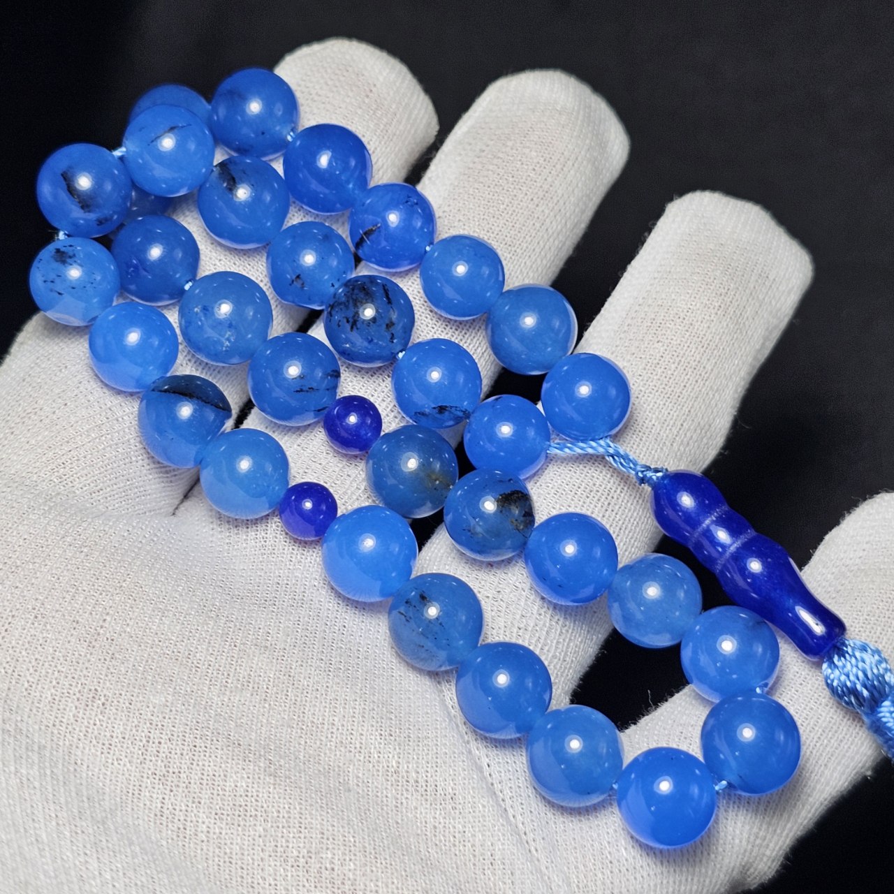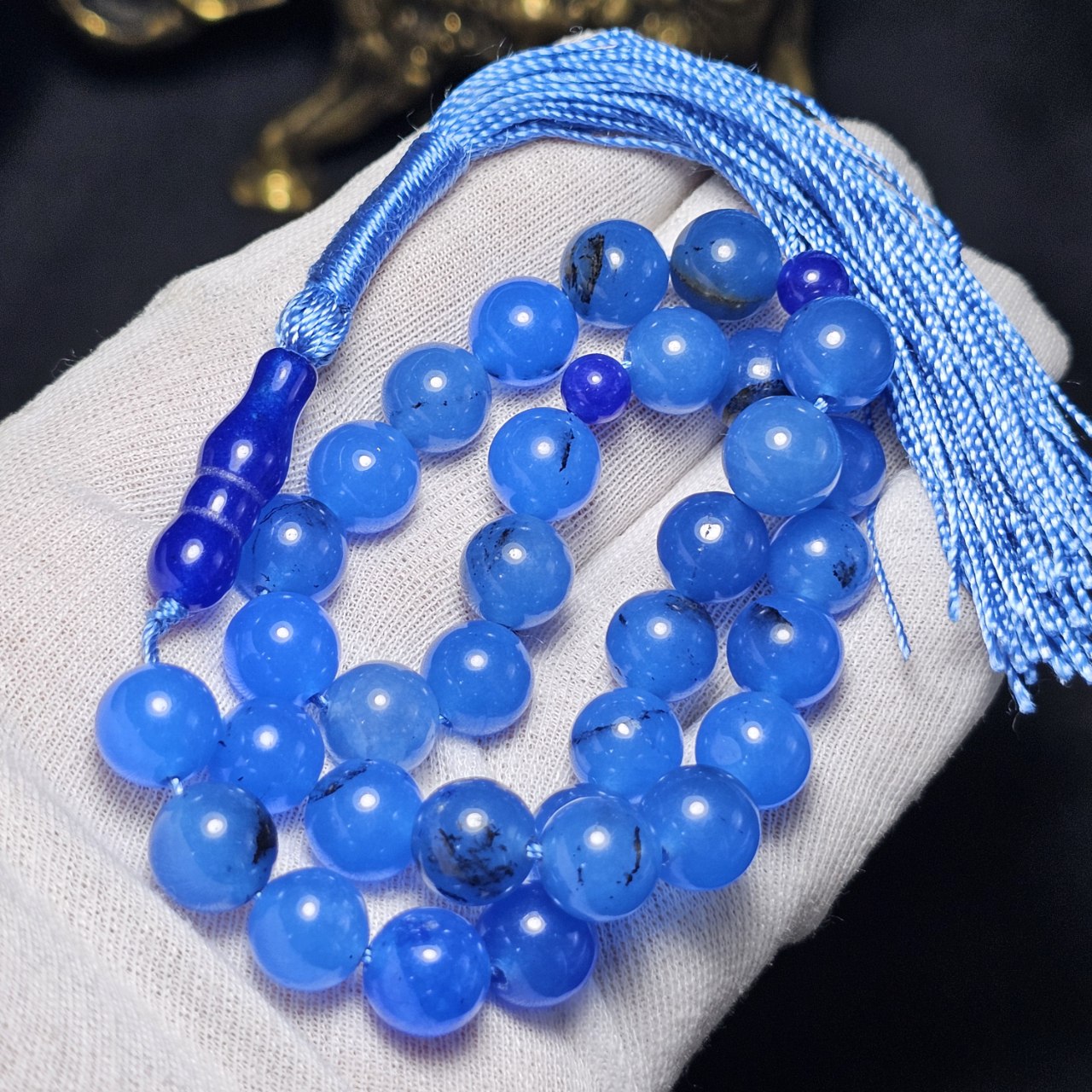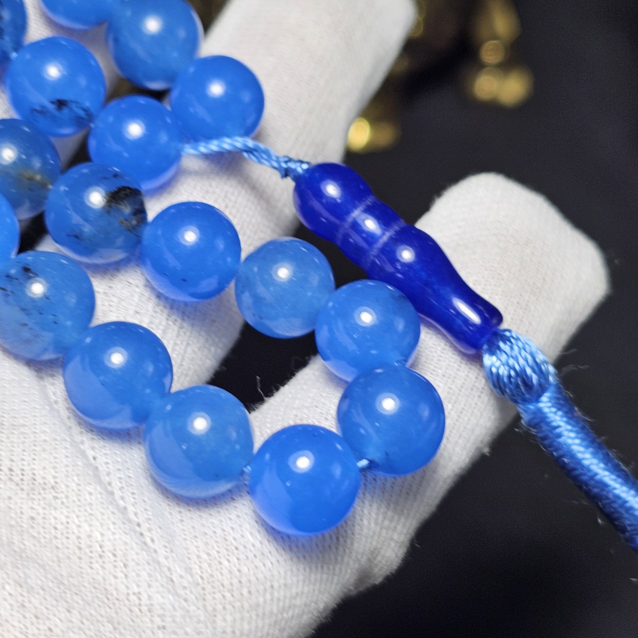 تسبیح ۳۳ دانه سنگ جید آبی معدنی