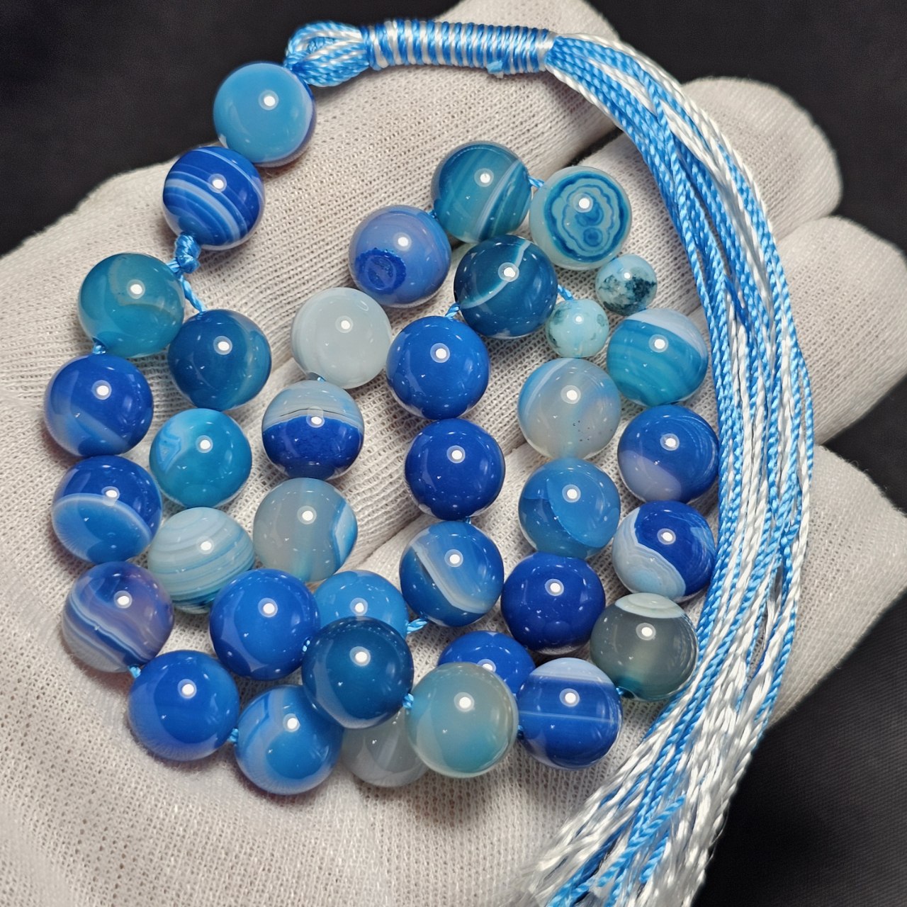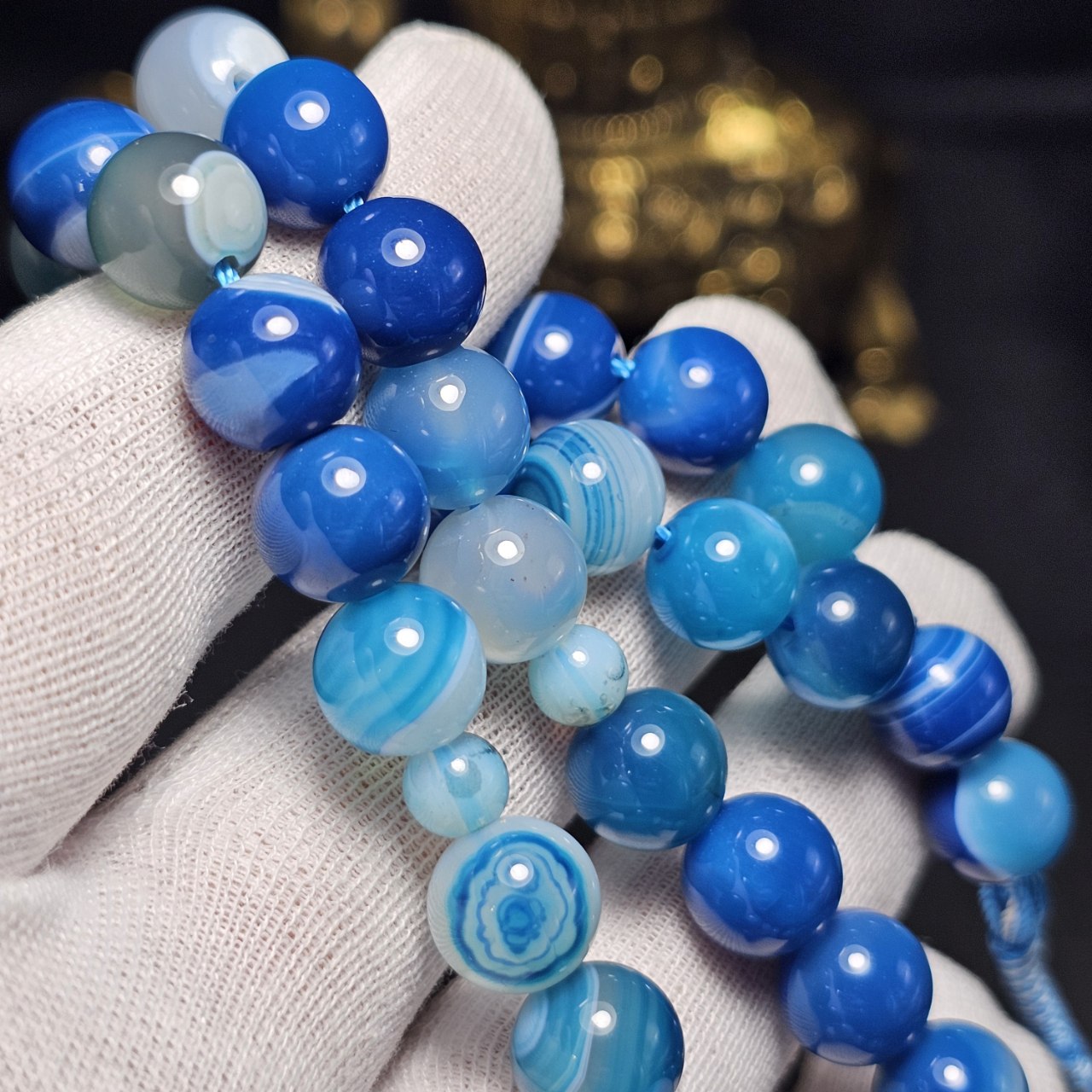 تسبیح ۳۳ دانه سنگ عقیق آبی باباقوری معدنی