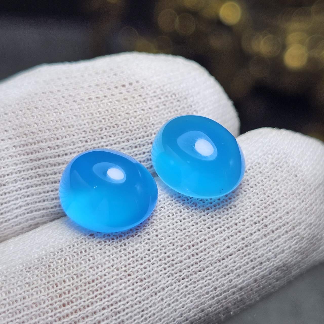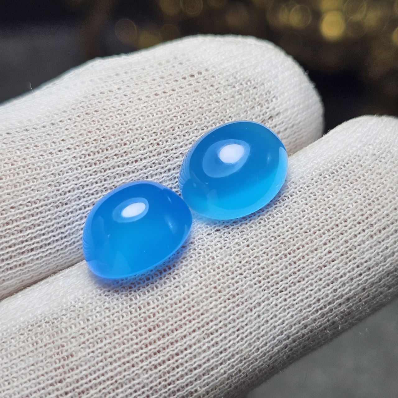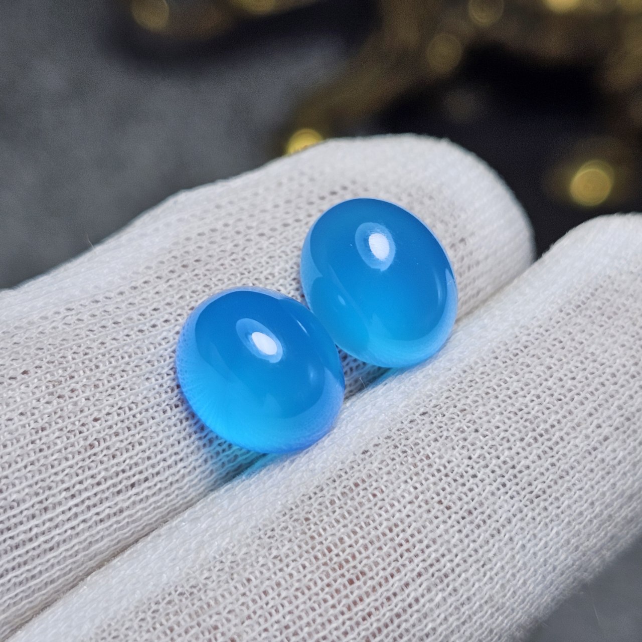 جفت نگین سنگ عقیق آبی معدنی کد 36724