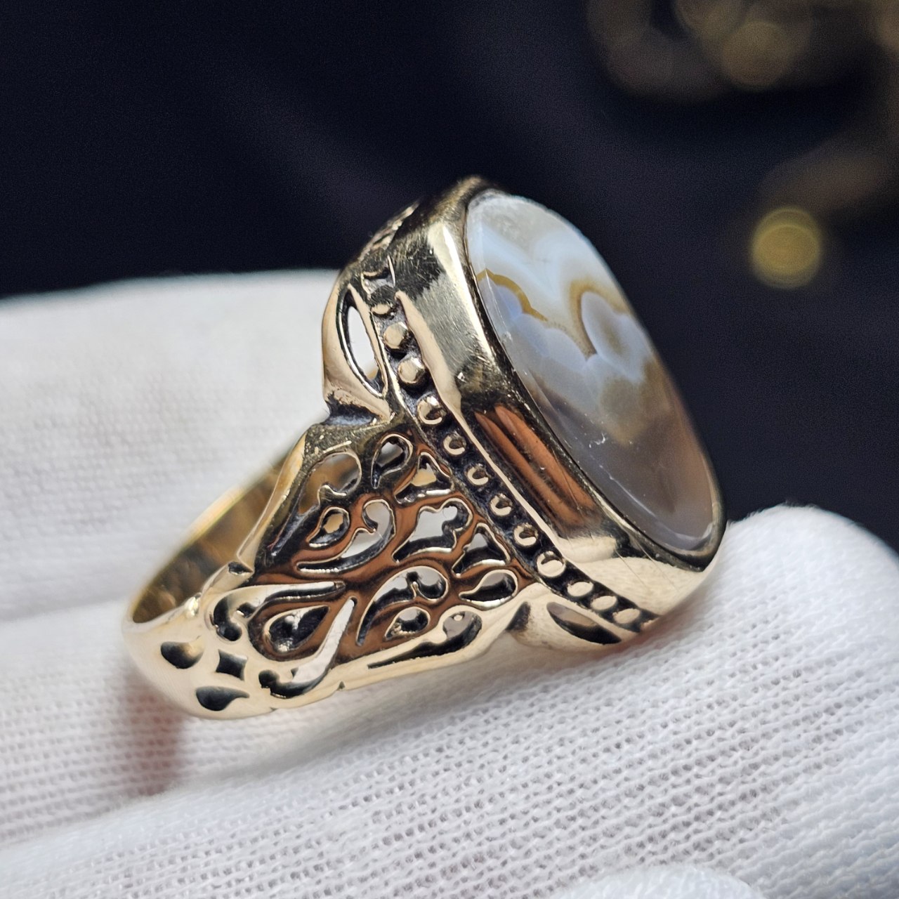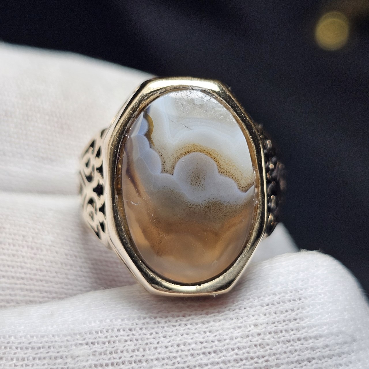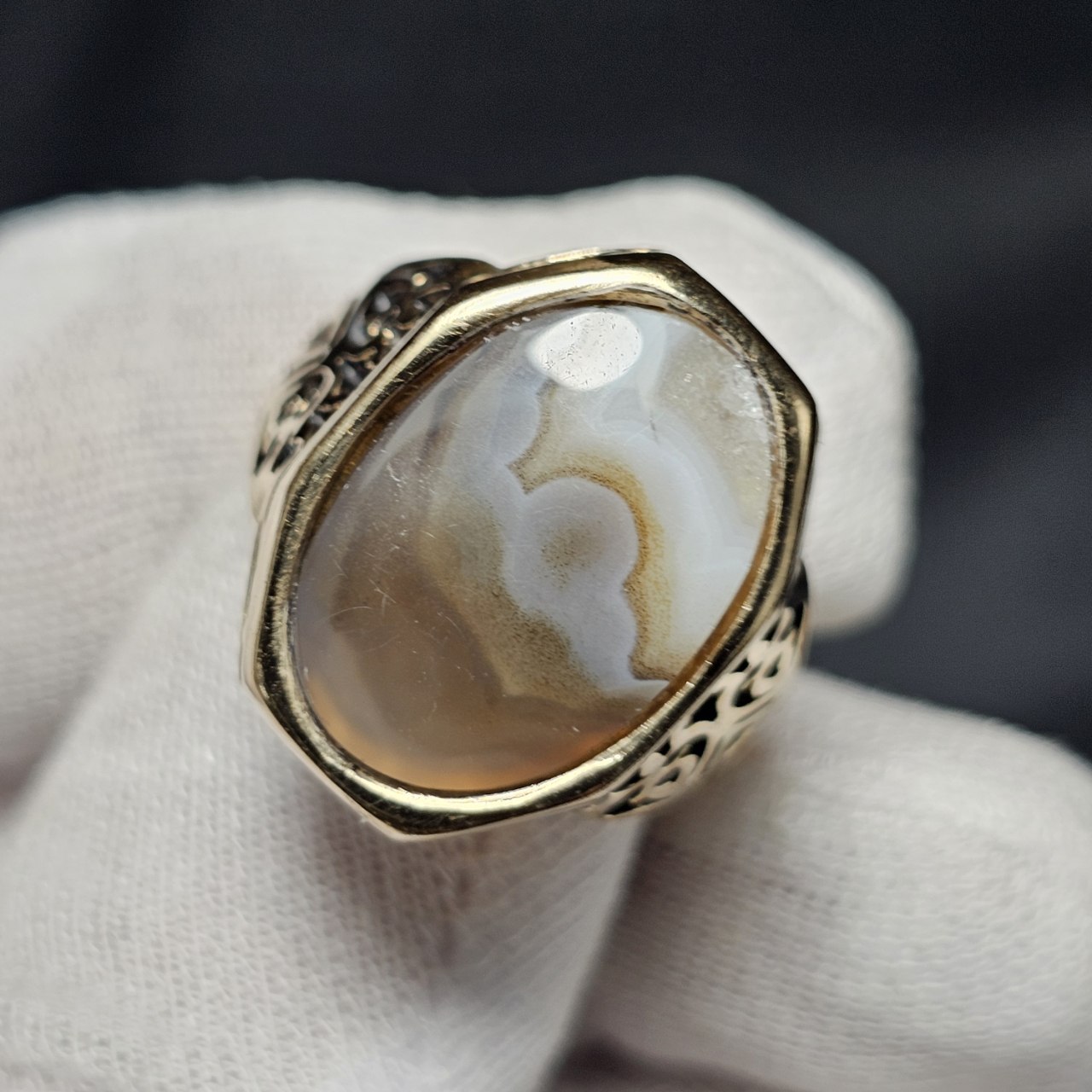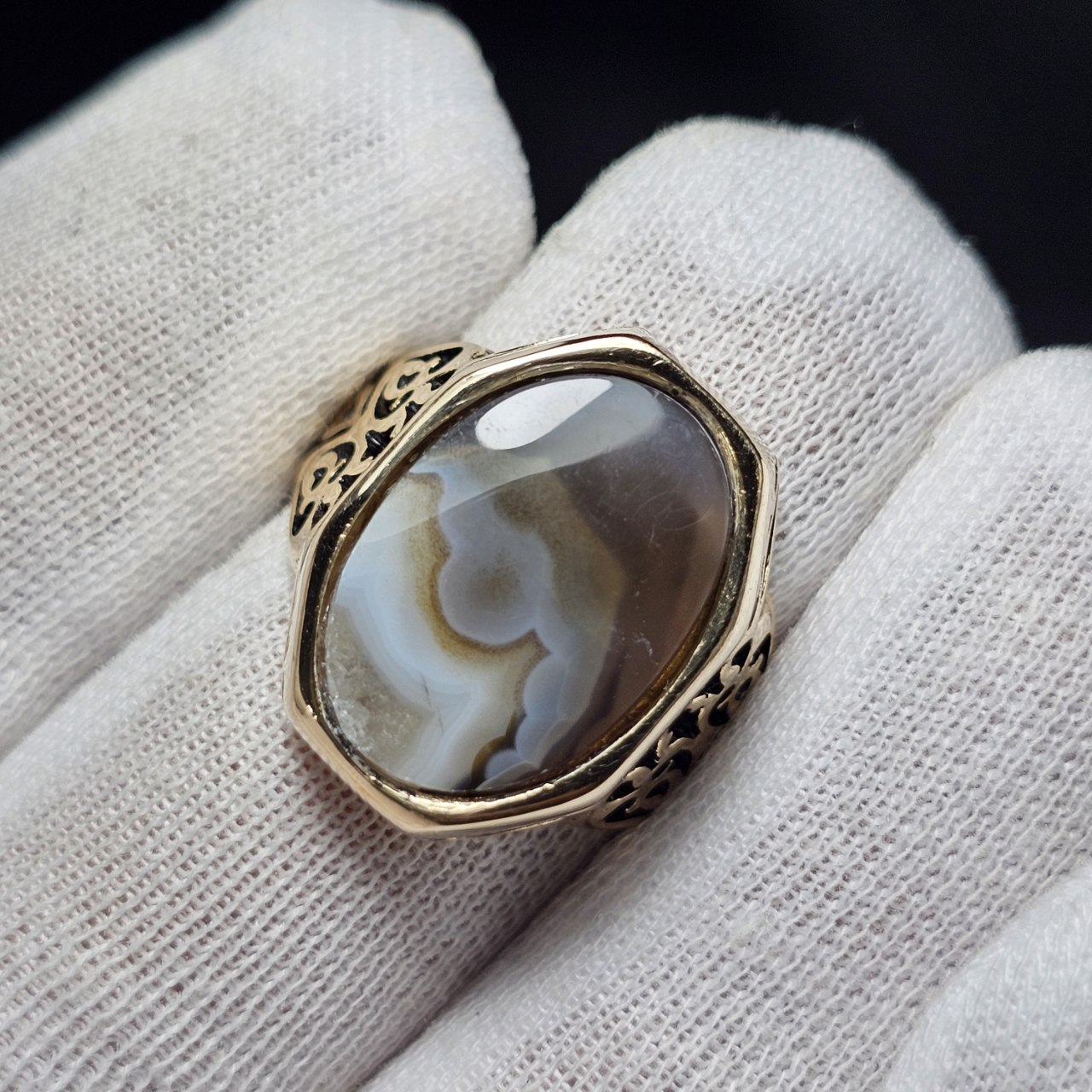 انگشتر طلا روس با سنگ طبیعی عقیق معدنی قائن