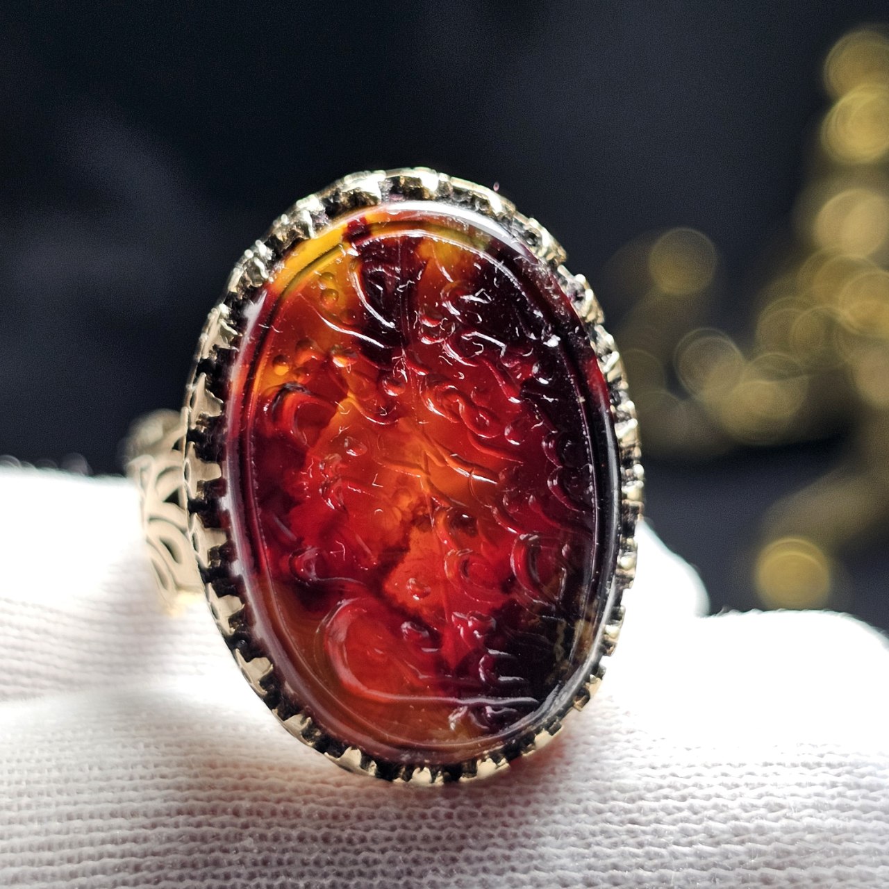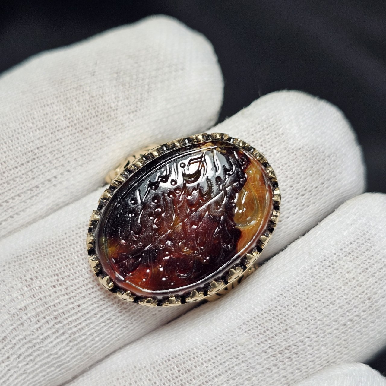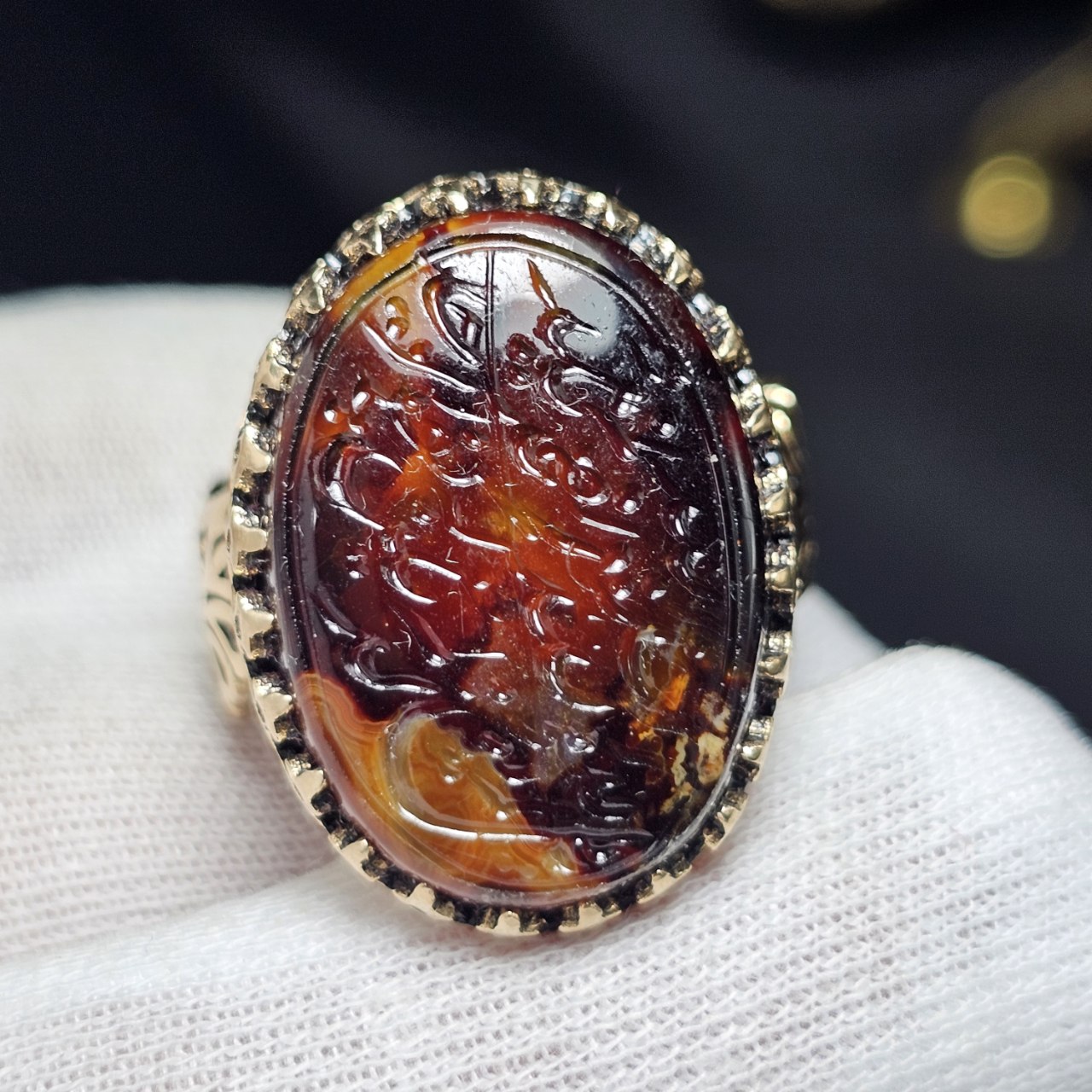 انگشتر طلا روس با سنگ عقیق معدنی خراسان خط دست