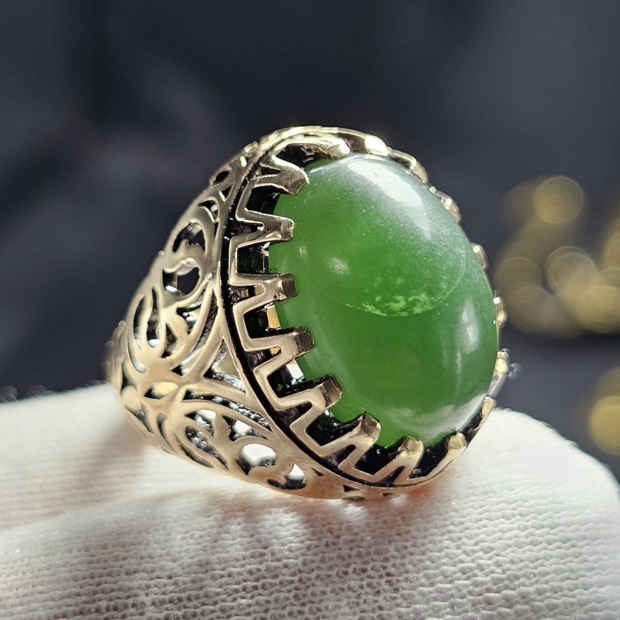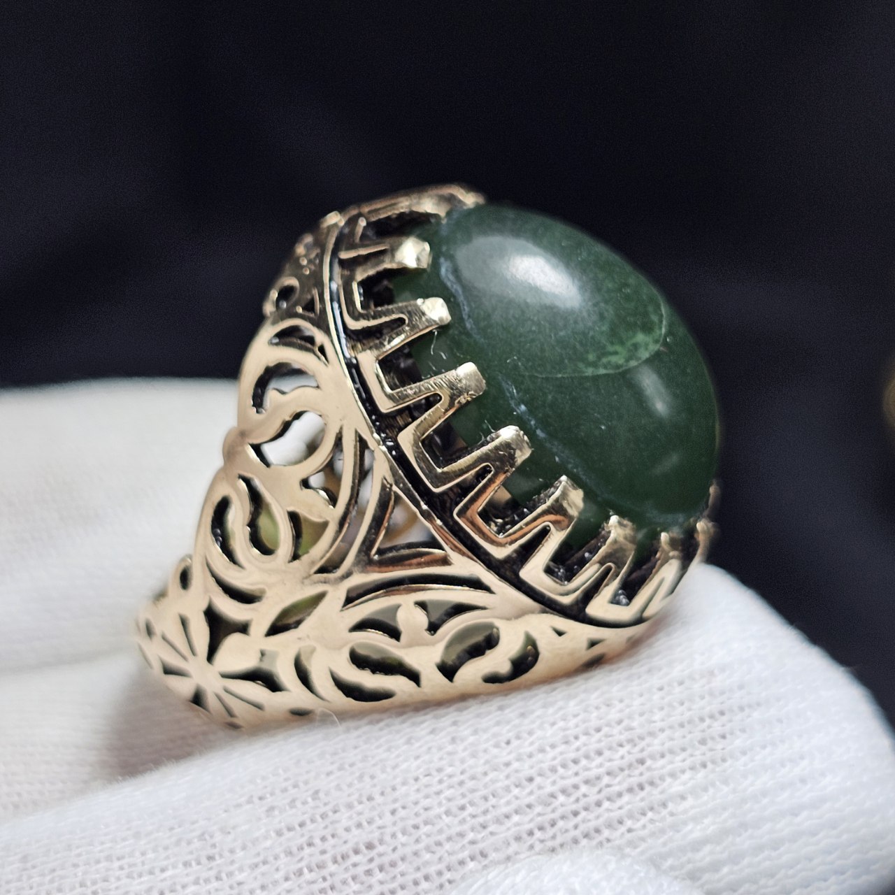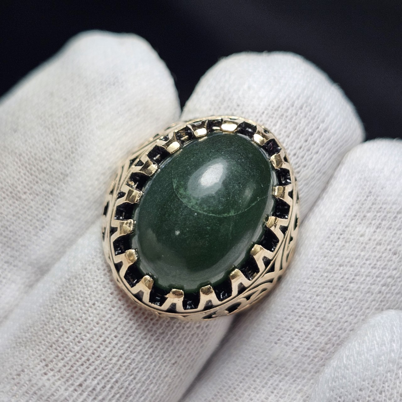 انگشتر طلا روس با سنگ یشم معدنی کد 37394