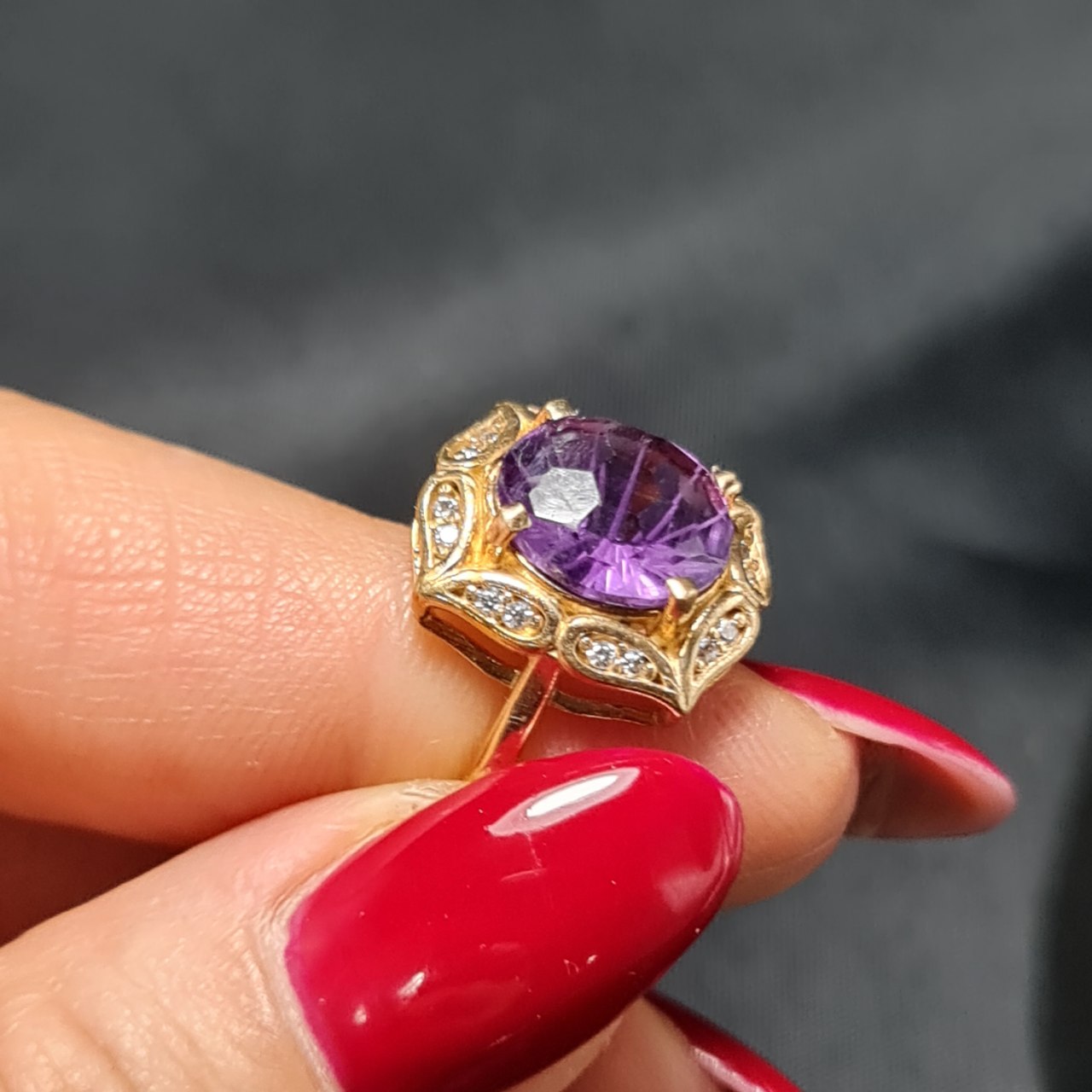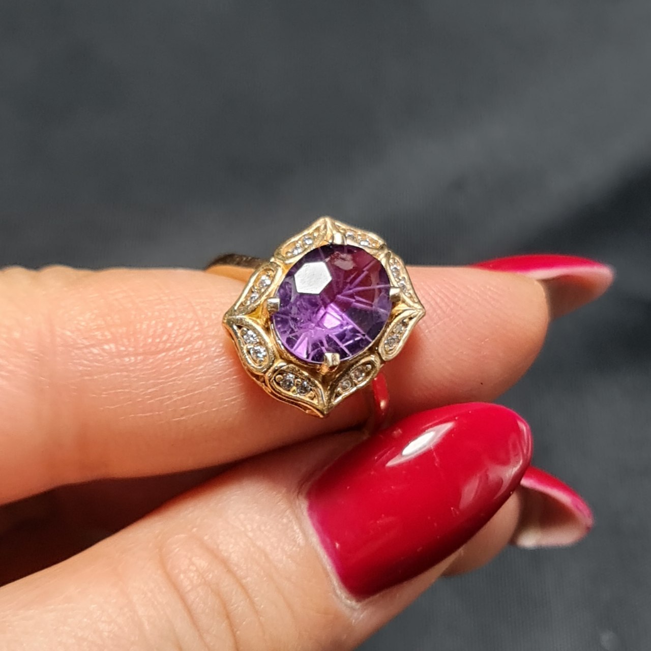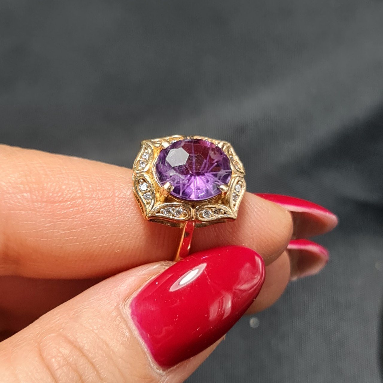 انگشتر طلا روس با سنگ آمیتیست معدنی ▫️کد : 37450