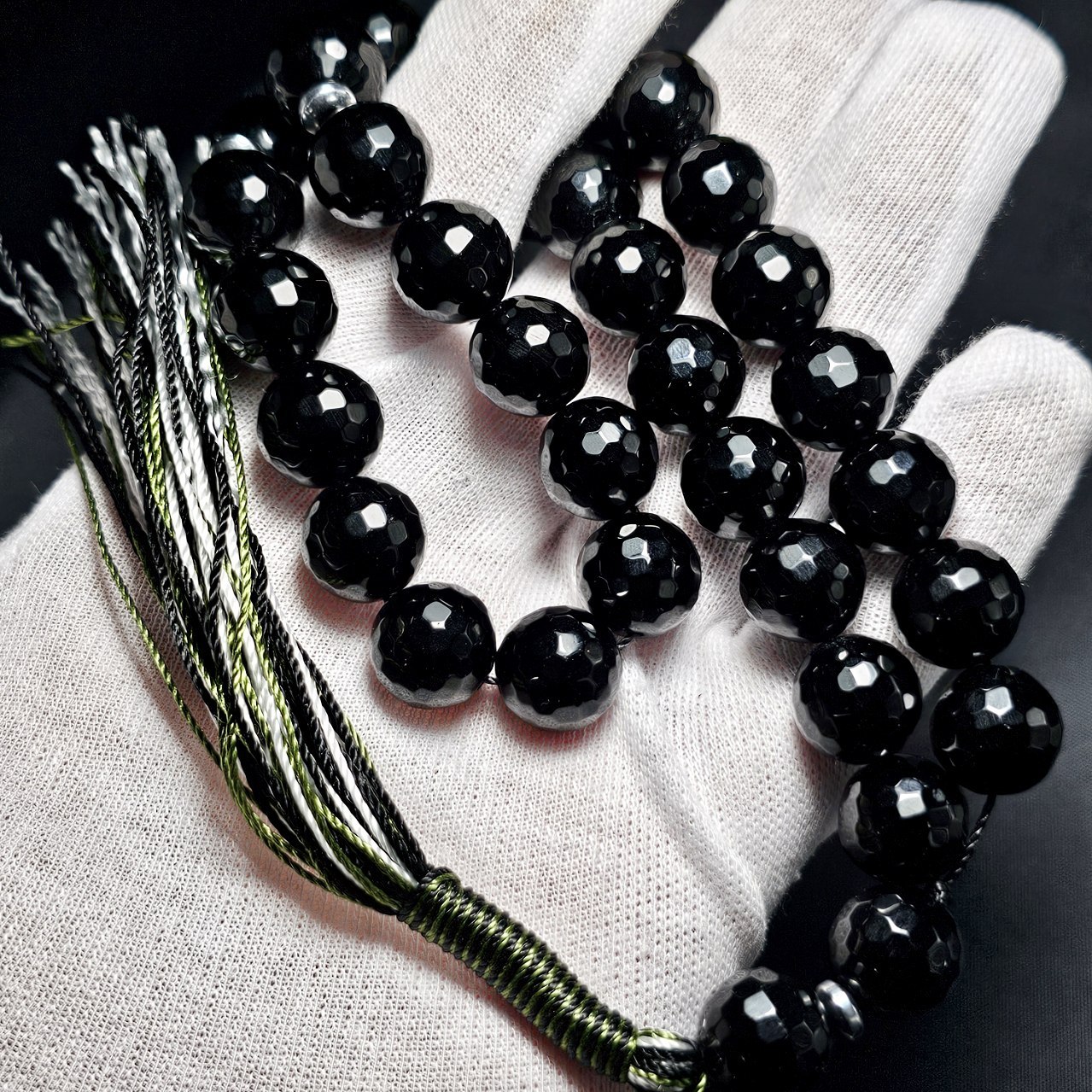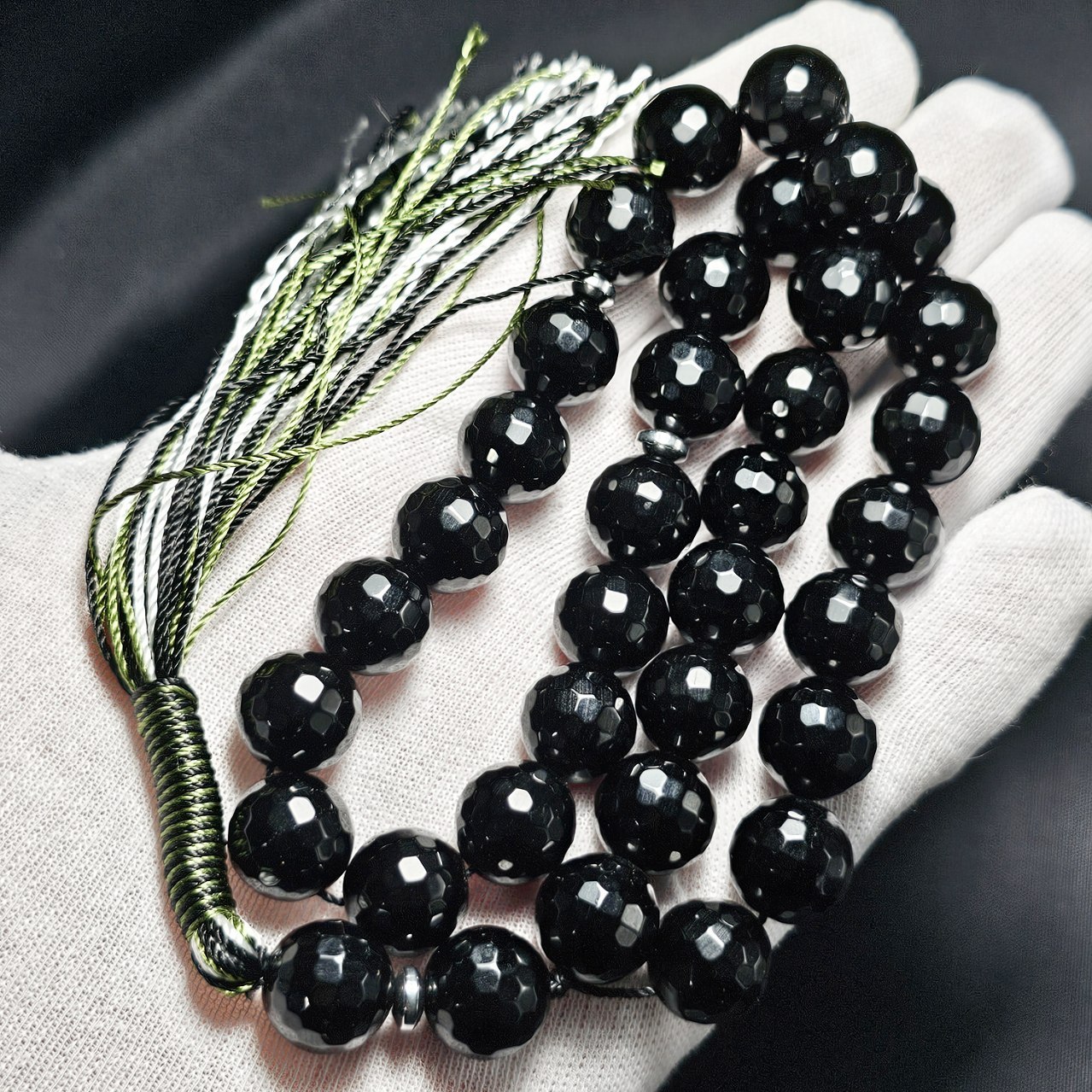تسبیح دانه درشت ۳۳ دانه سنگ اونیکس تراش دار