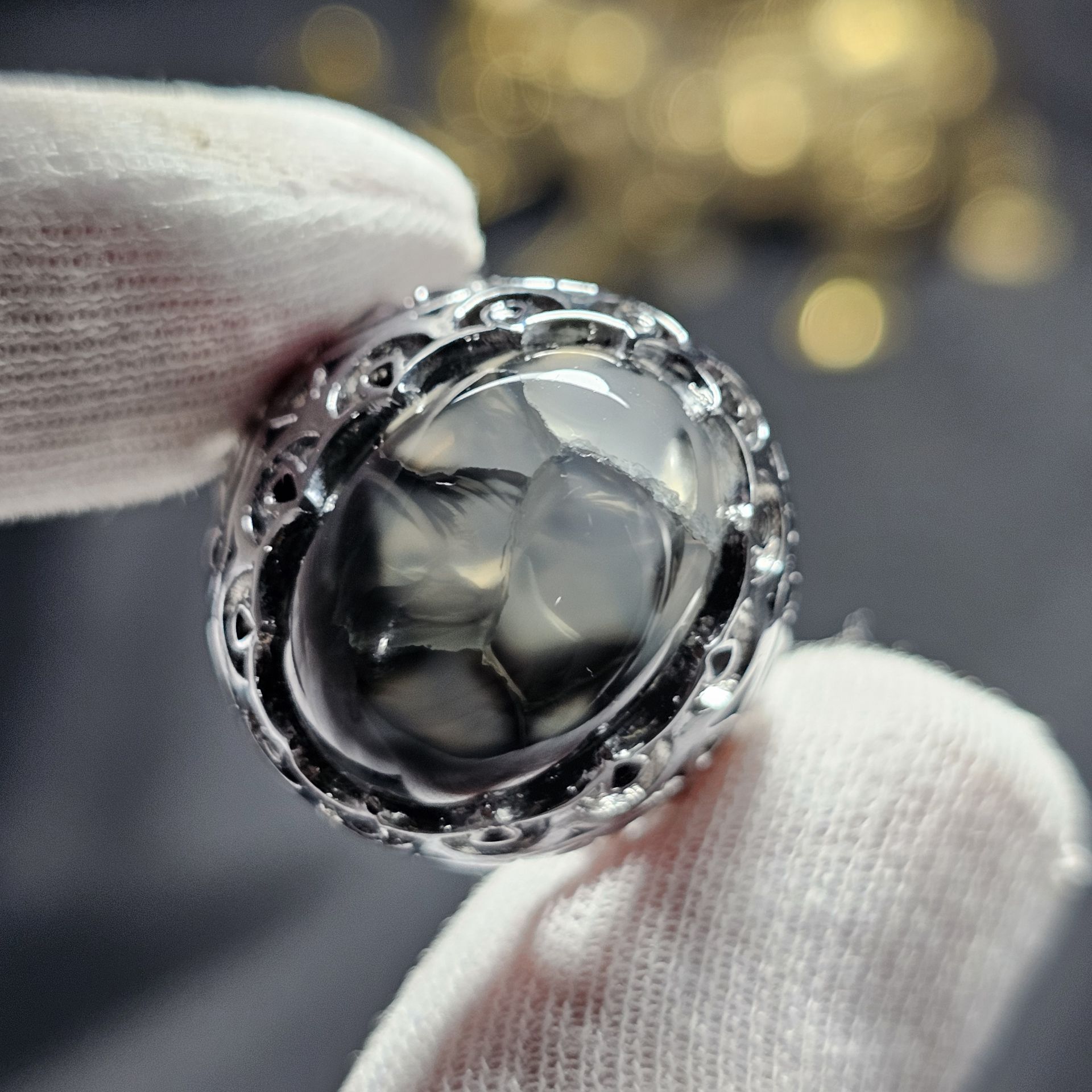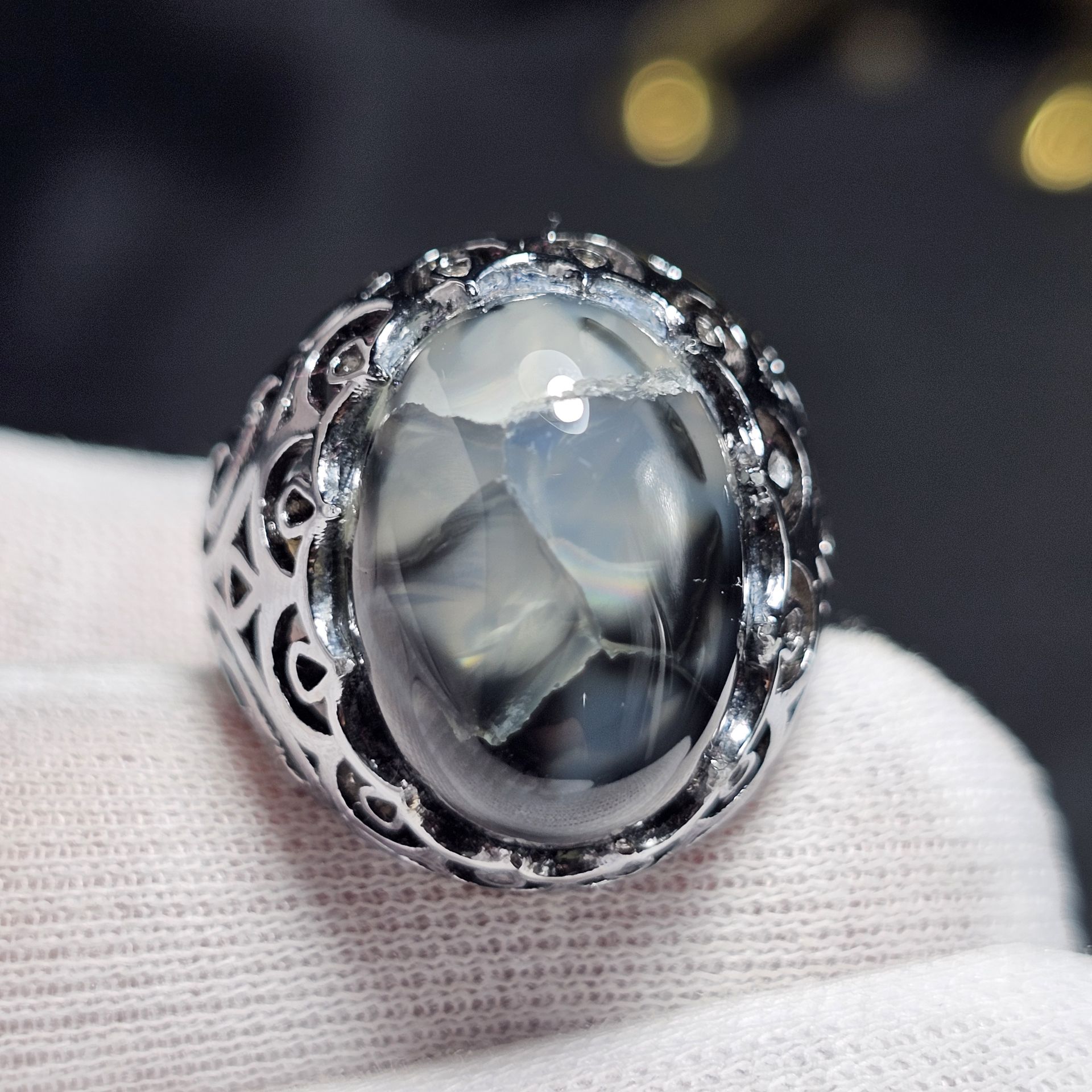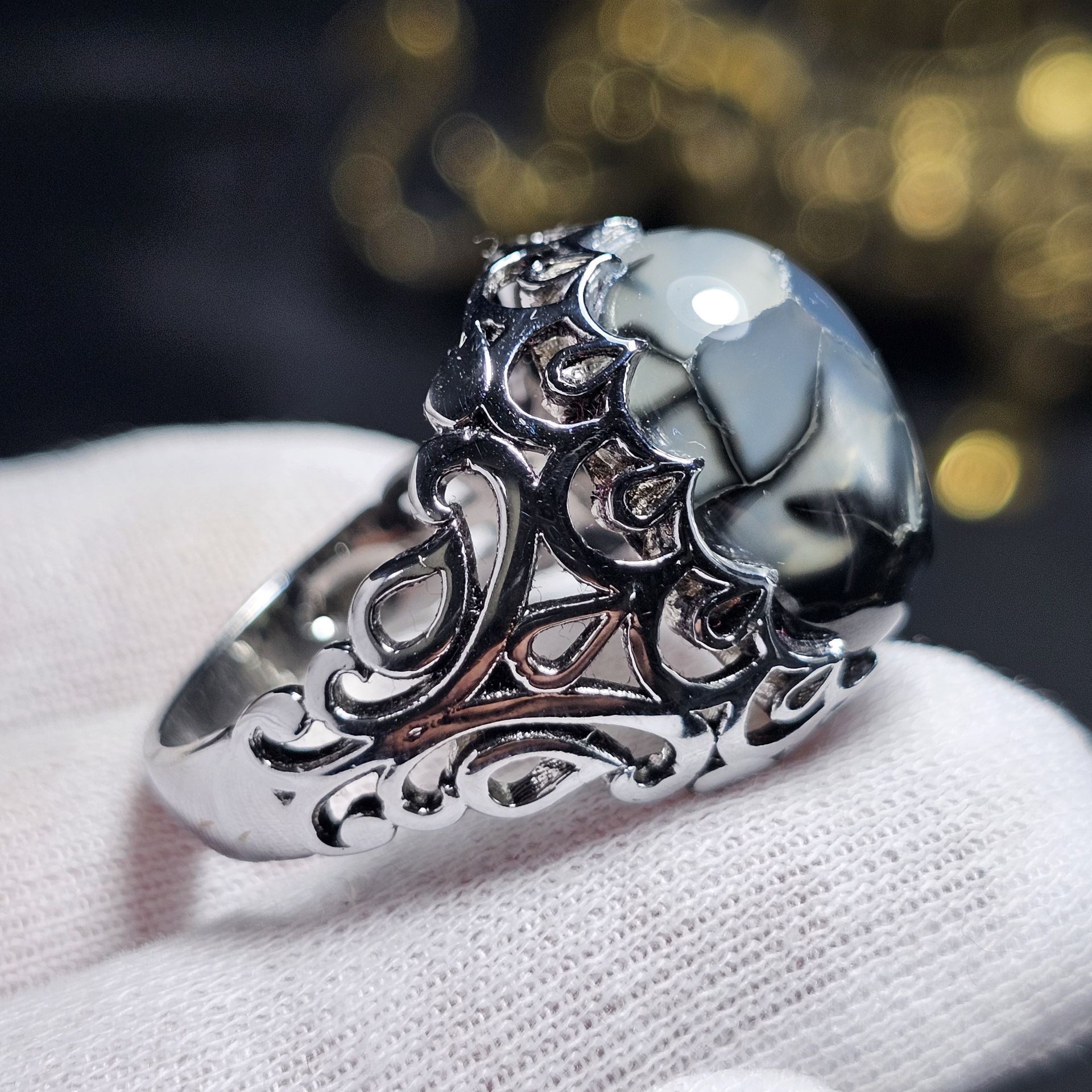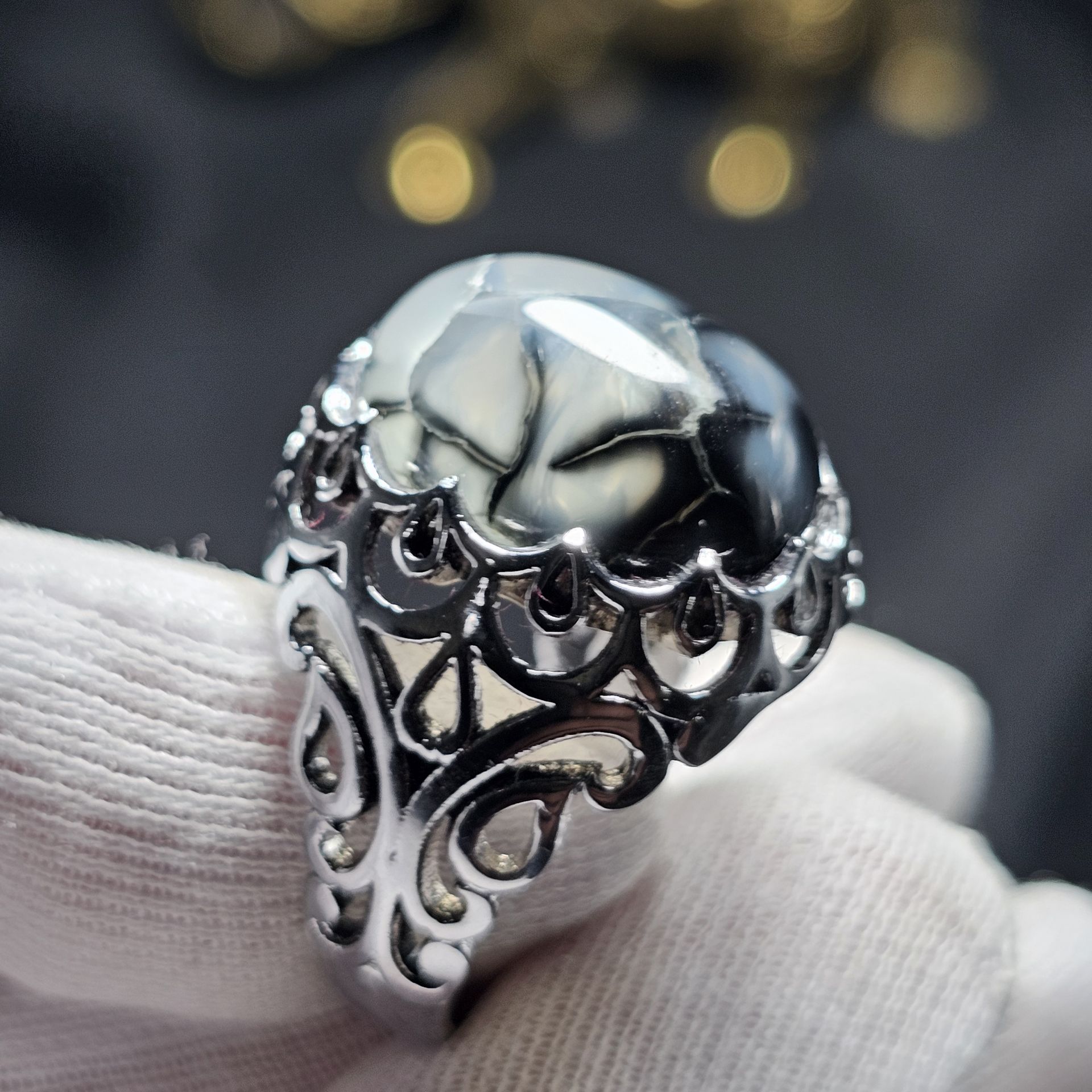 انگشتر نقره روس با سنگ عقیق دراگون معدنی