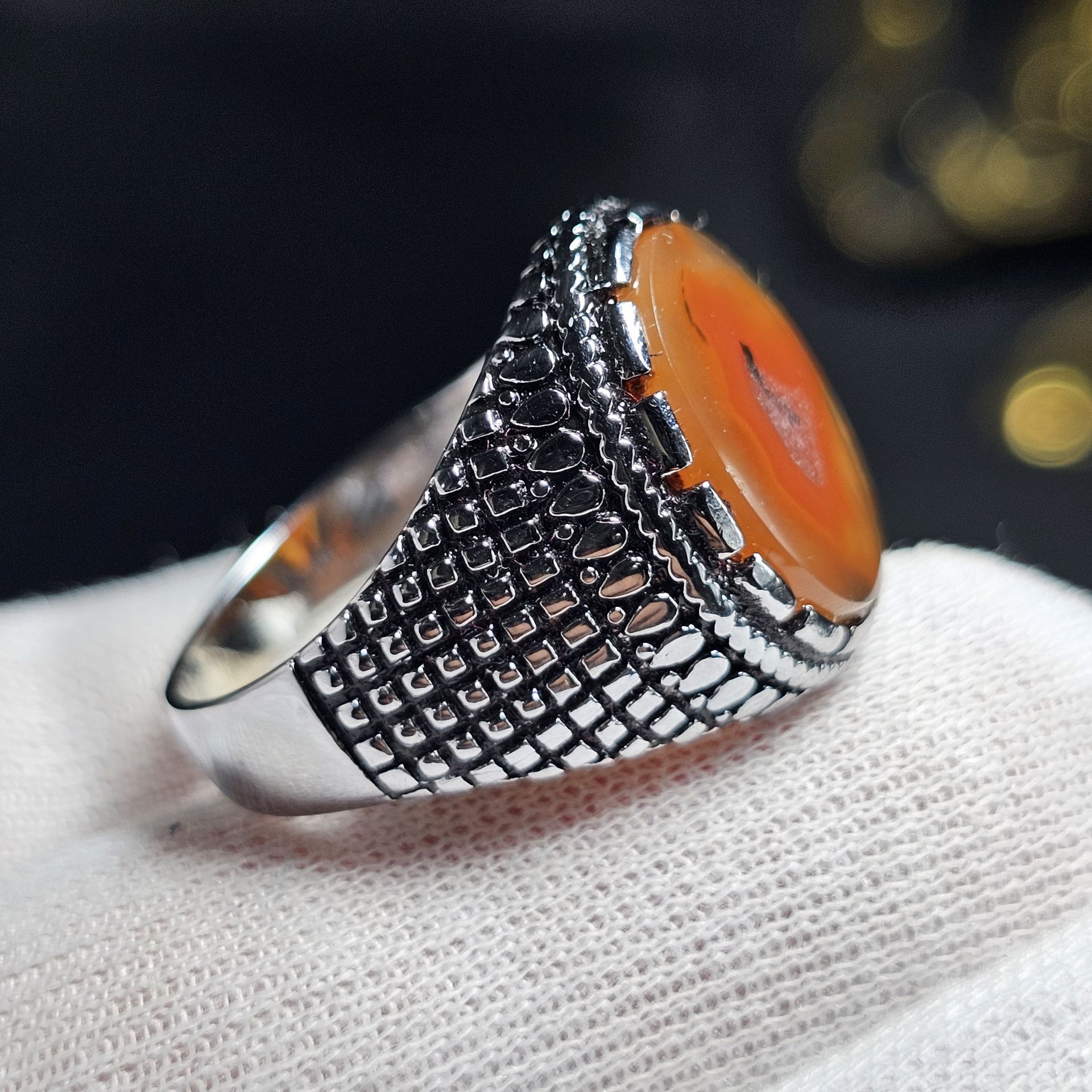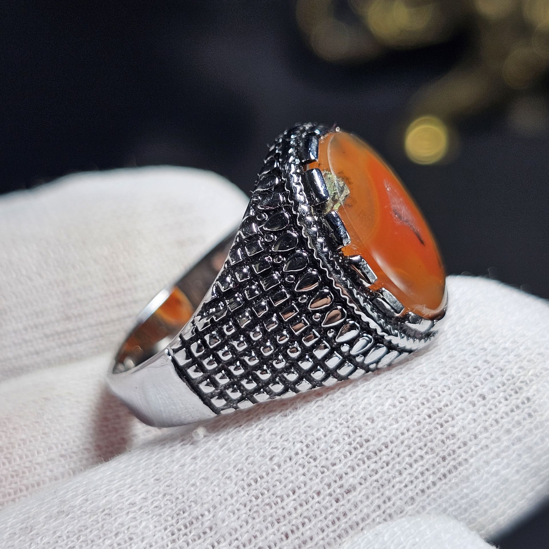 انگشتر نقره روس با سنگ طبیعی عقیق سرخ نارنجی معدنی خراسان