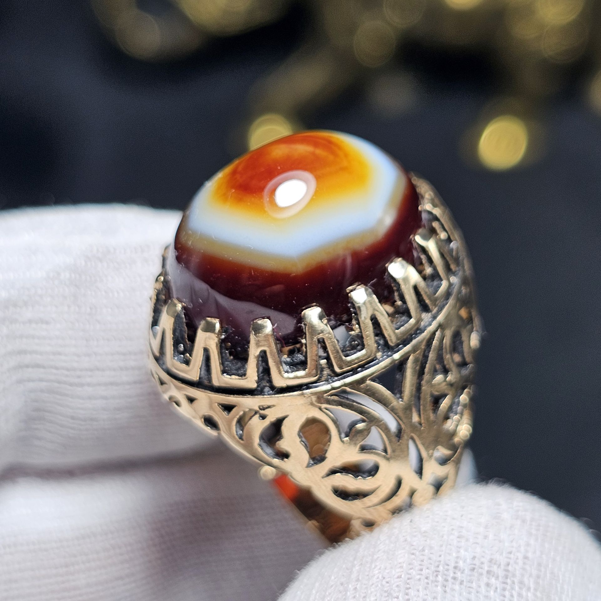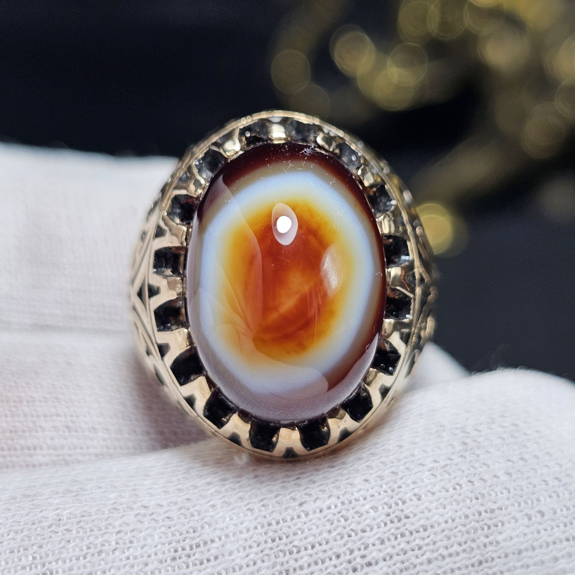 انگشتر طلا روس با سنگ عقیق سه پوست معدنی خراسان