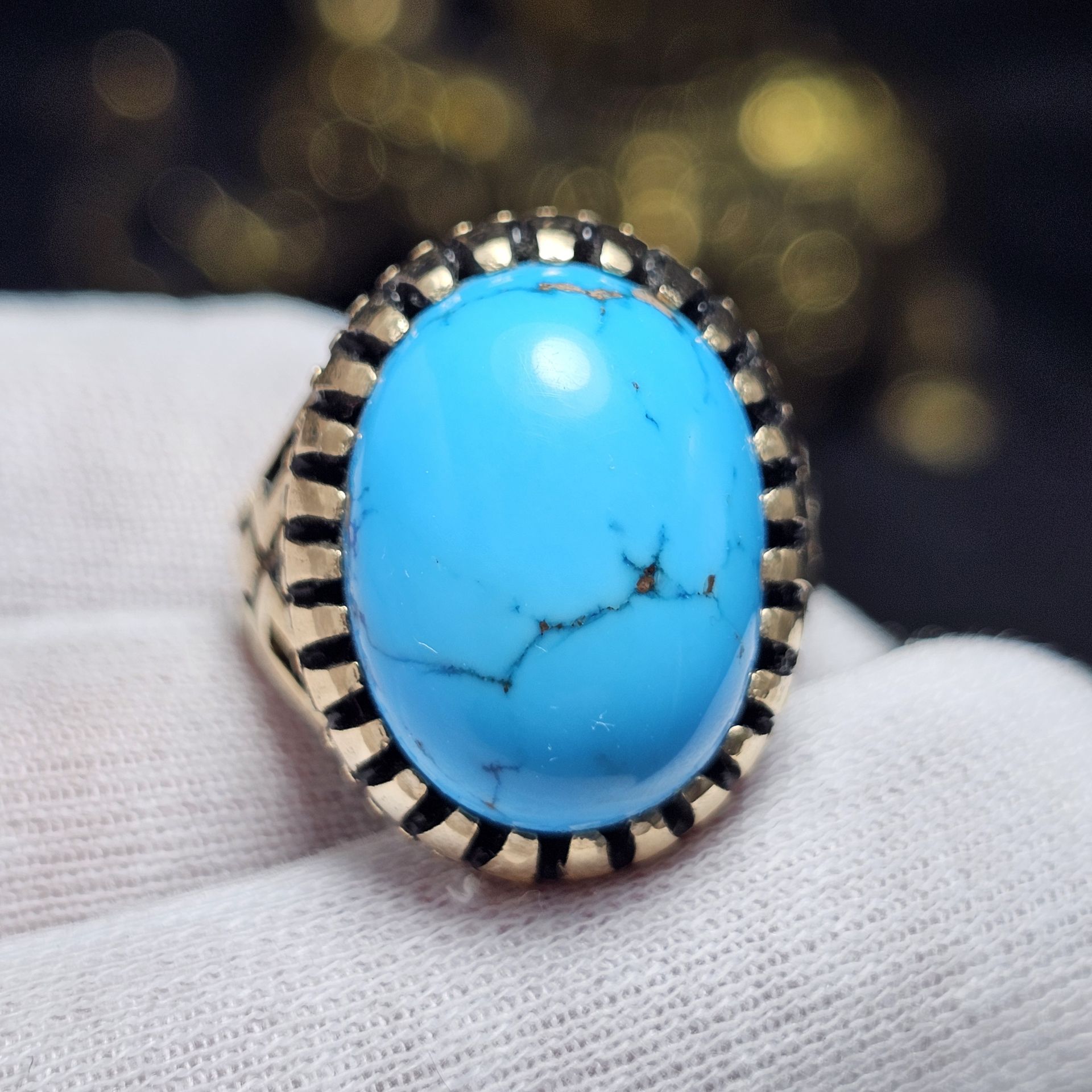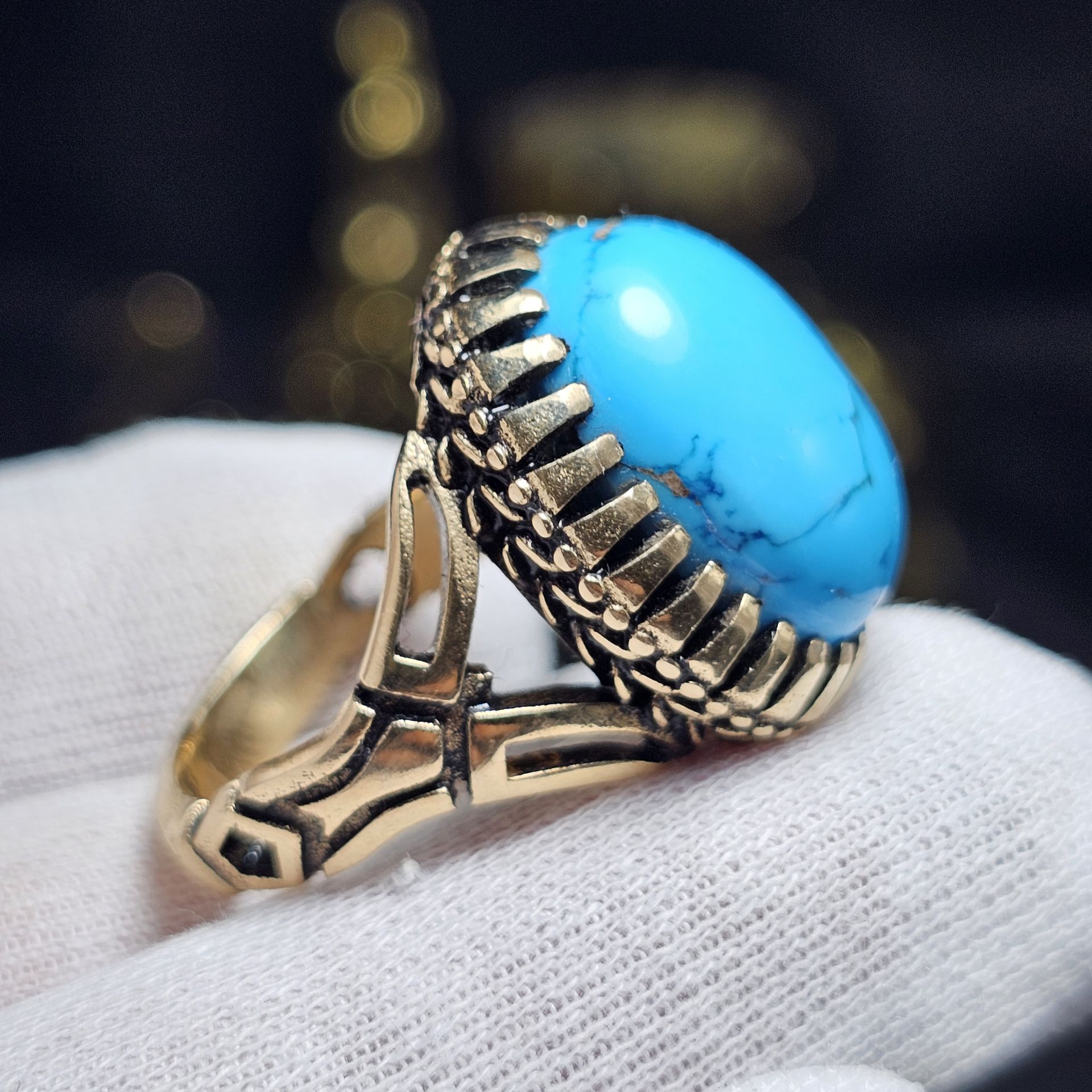 انگشتر طلا روس با سنگ فیروزه معدنی احیا شده
