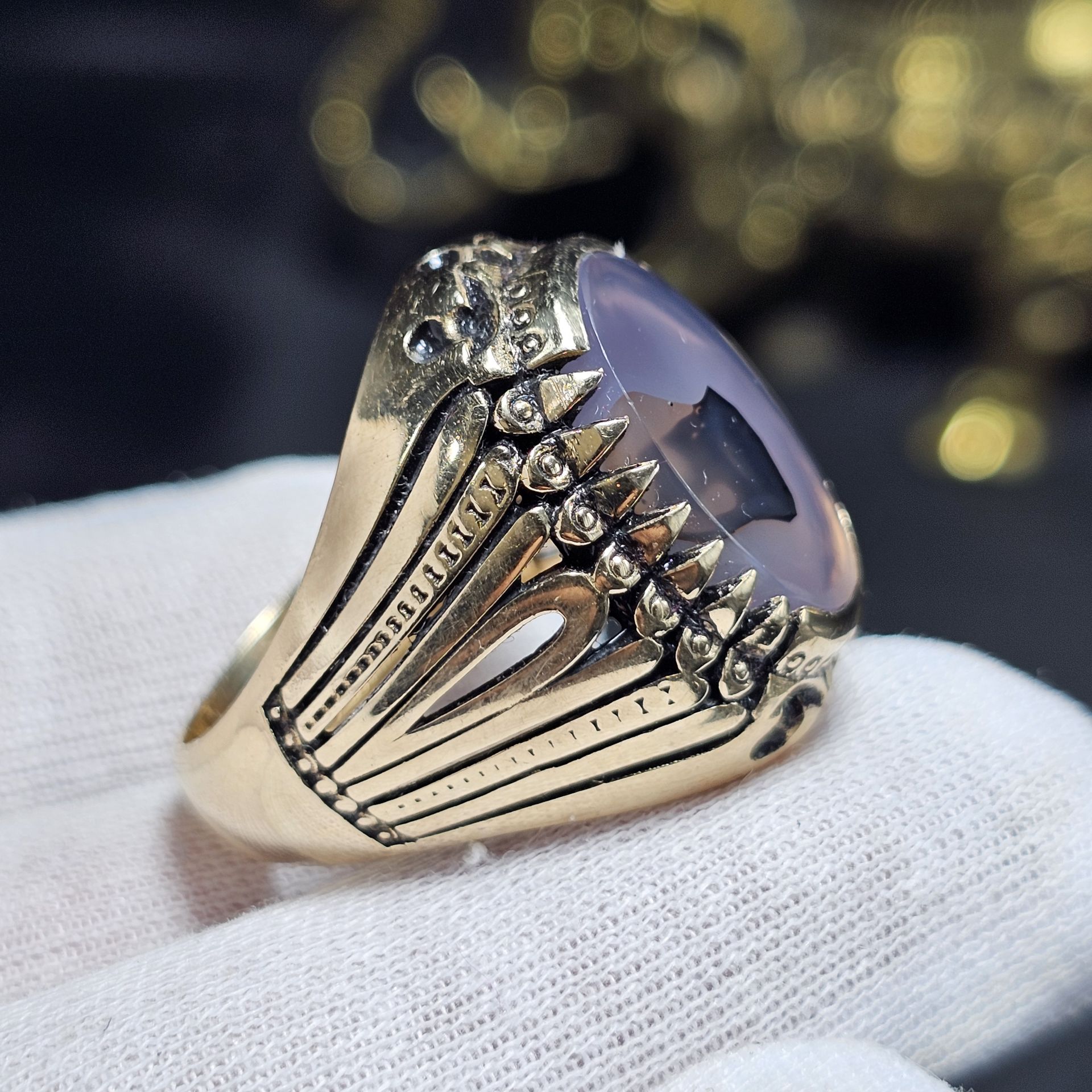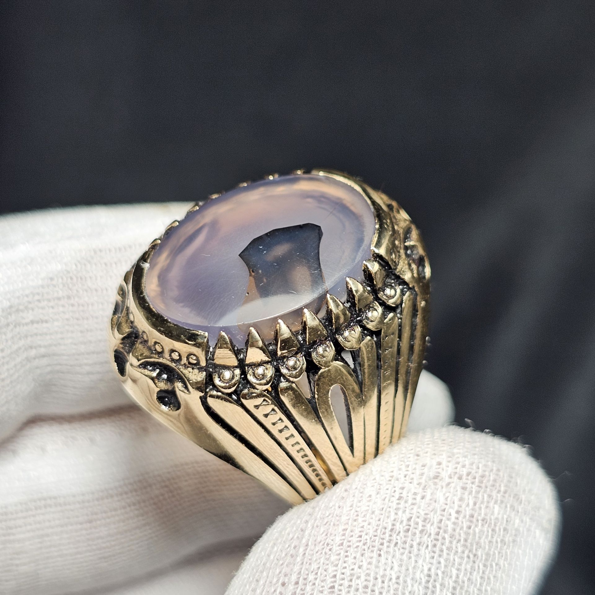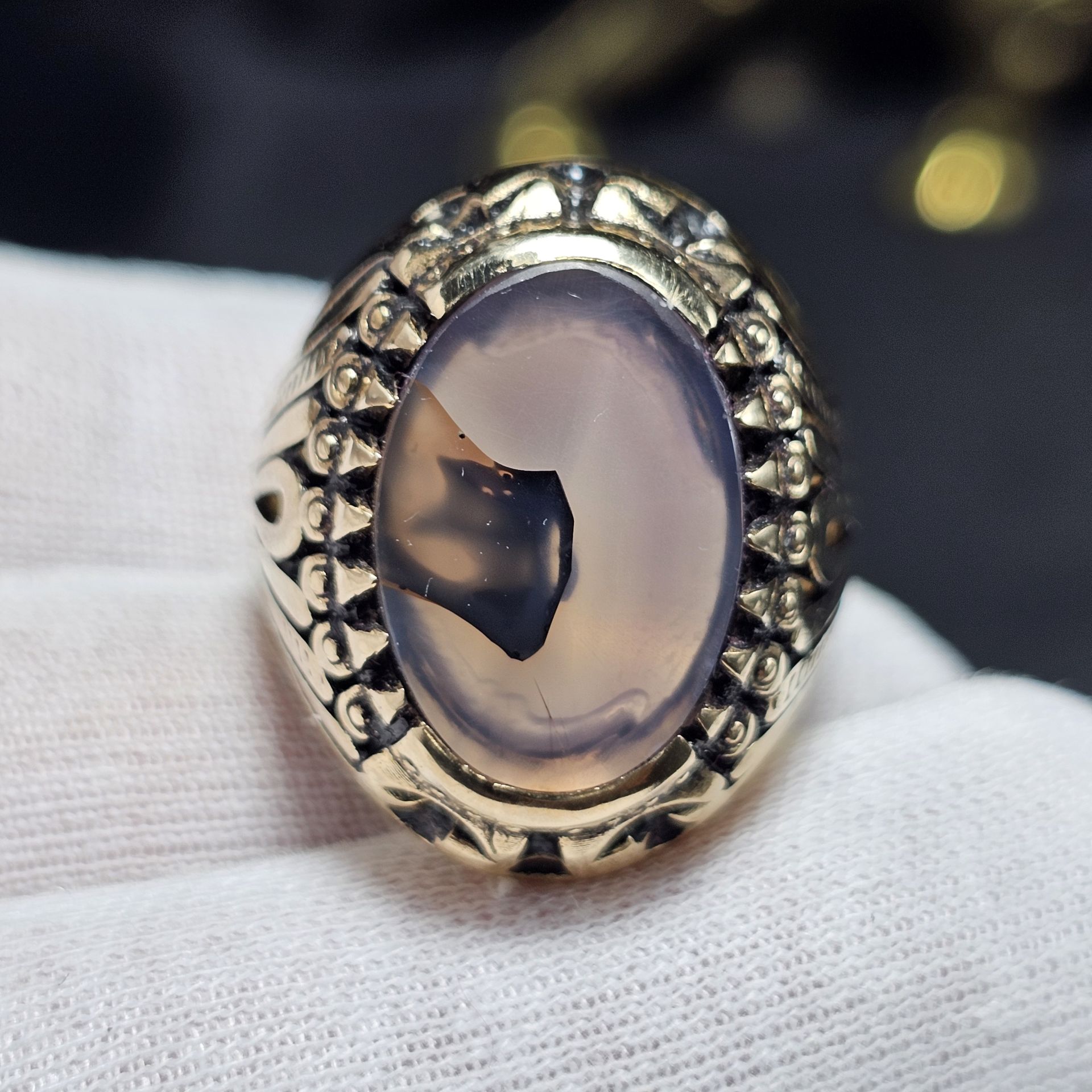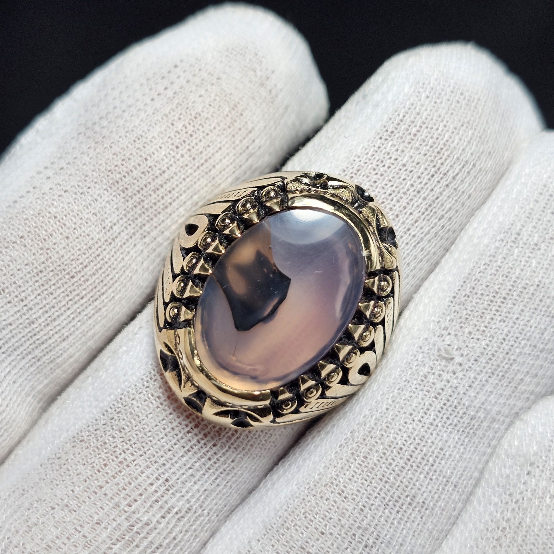انگشتر طلا روس با سنگ طبیعی عقیق معدنی خراسانی