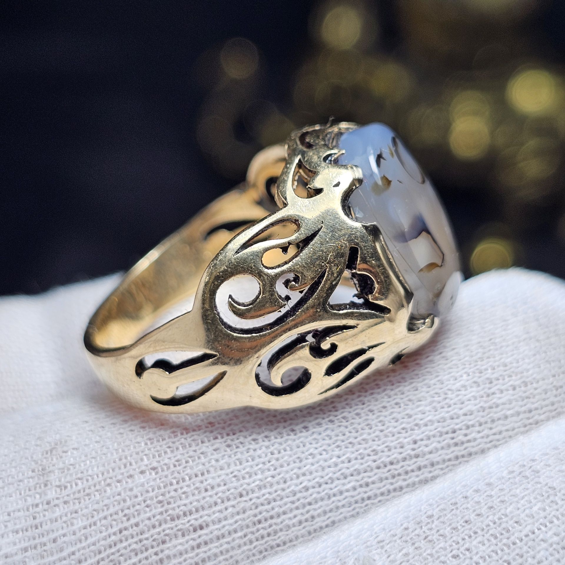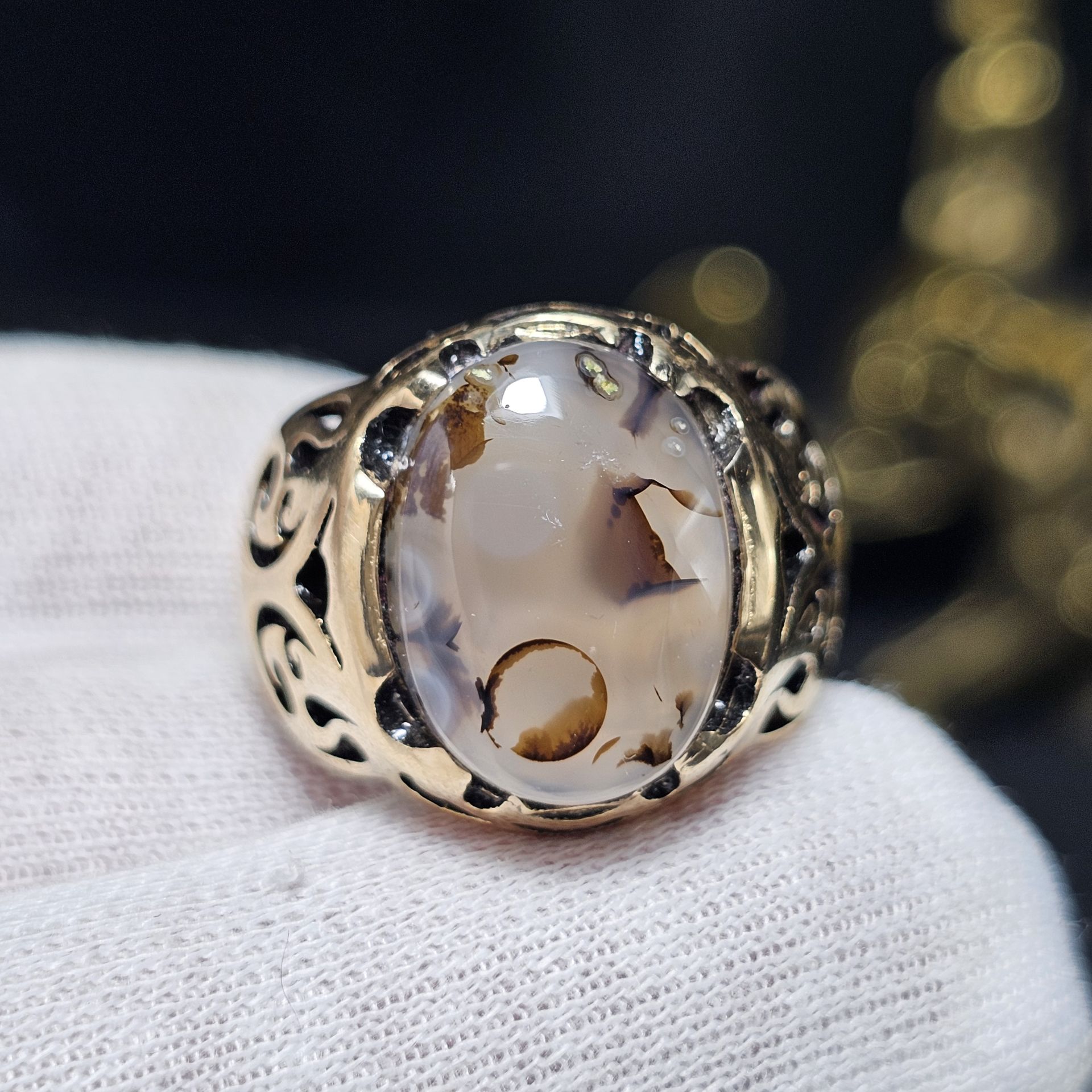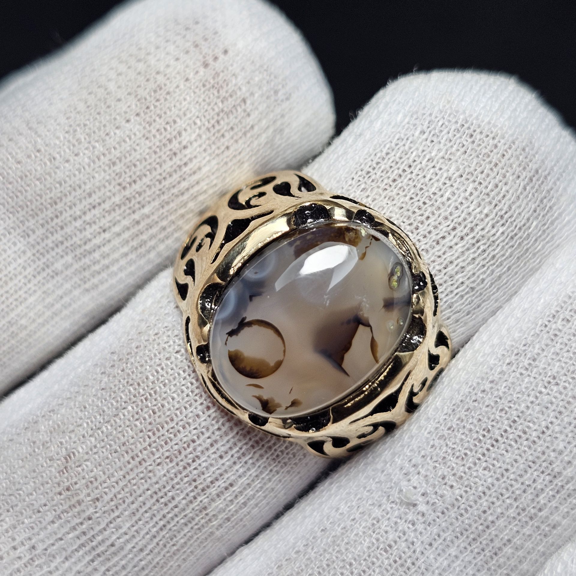 انگشتر طلا روس با سنگ عقیق شجر معدنی قائن