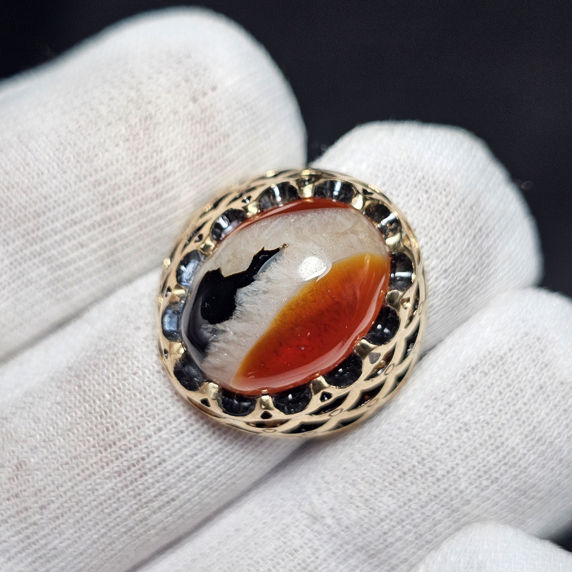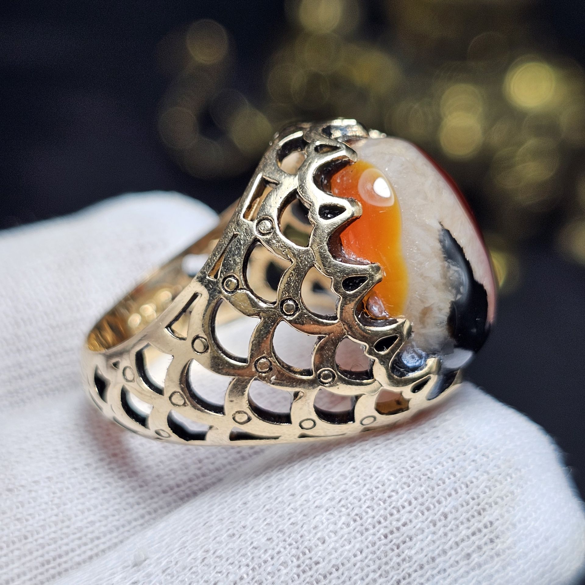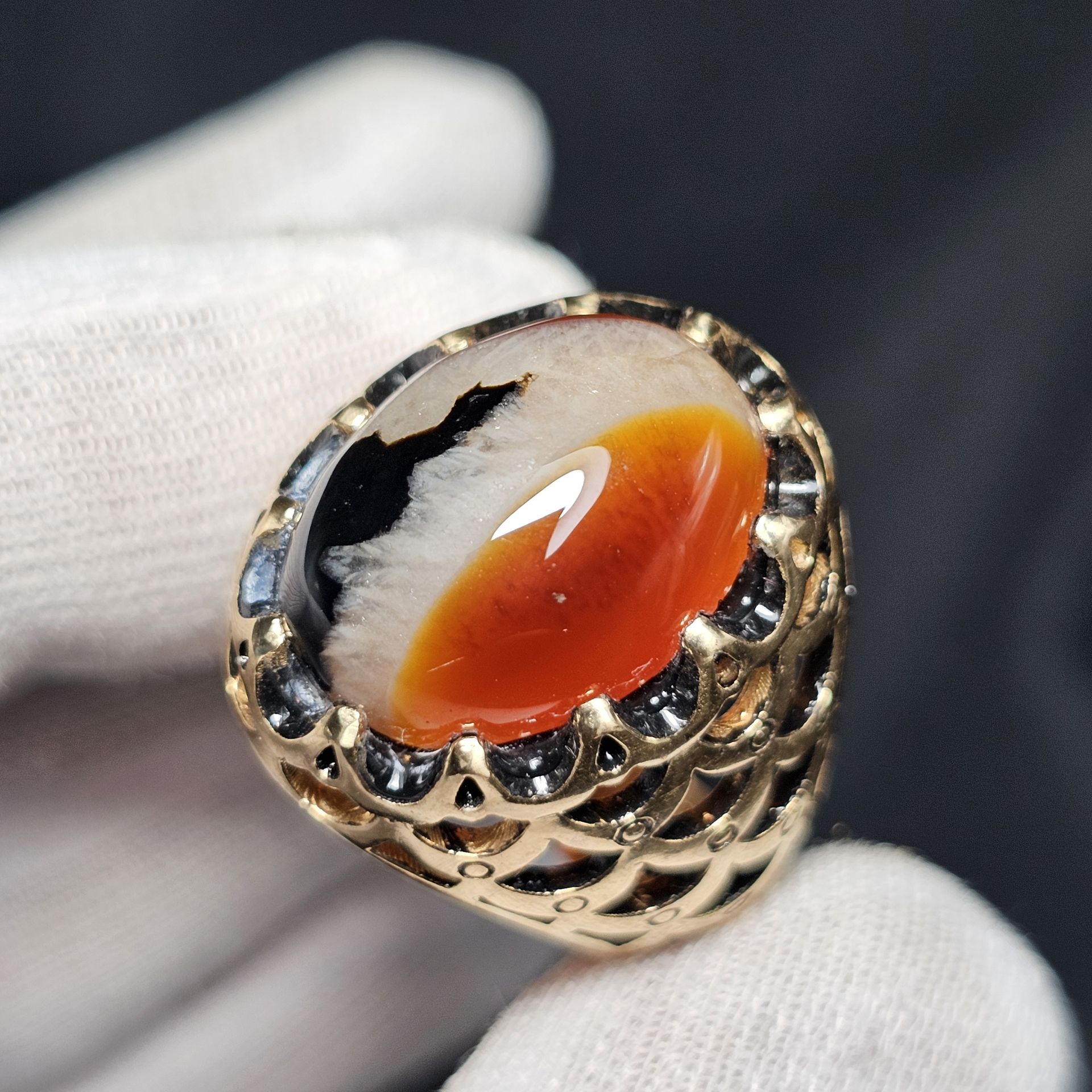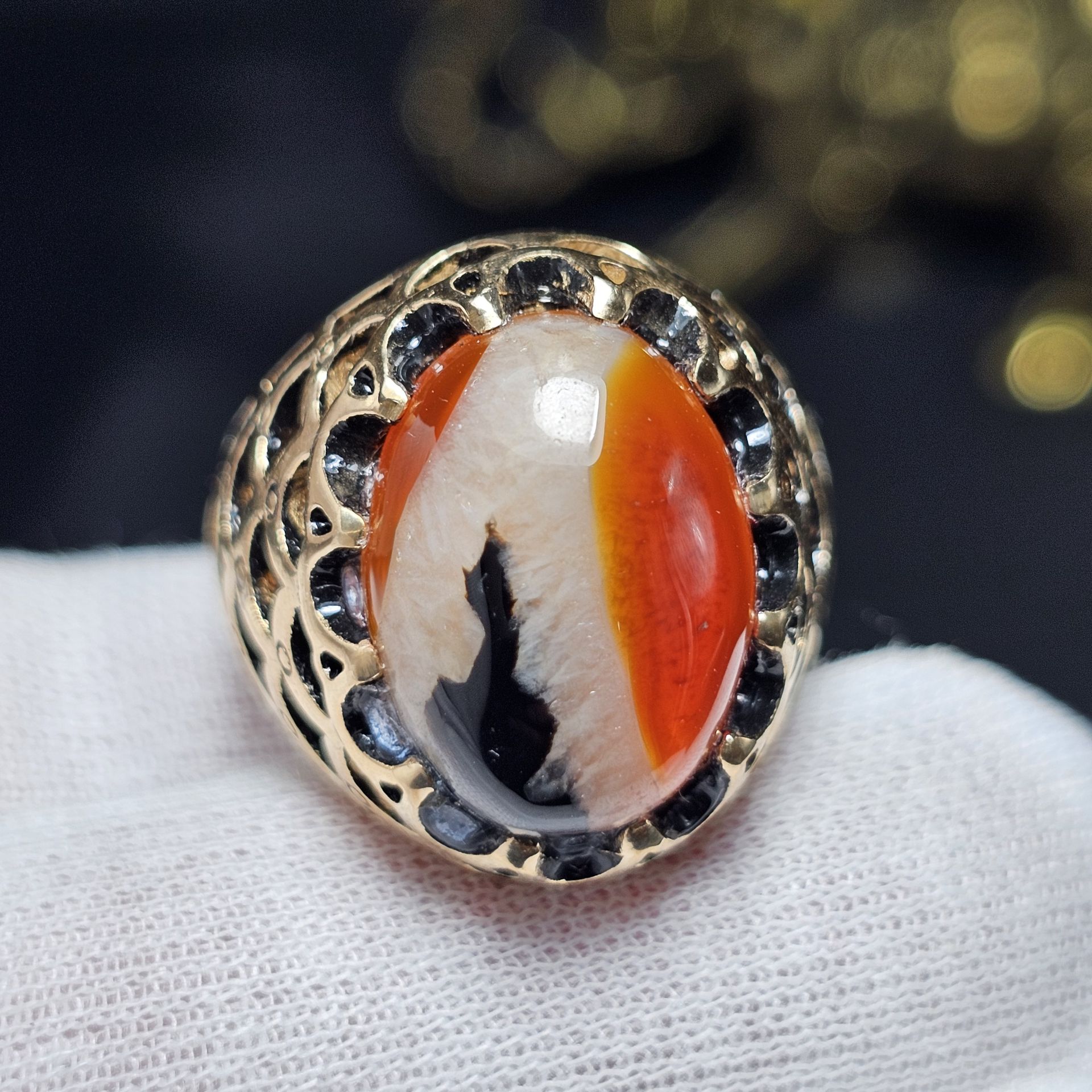 انگشتر طلا روس با سنگ عقیق معدنی خراسان