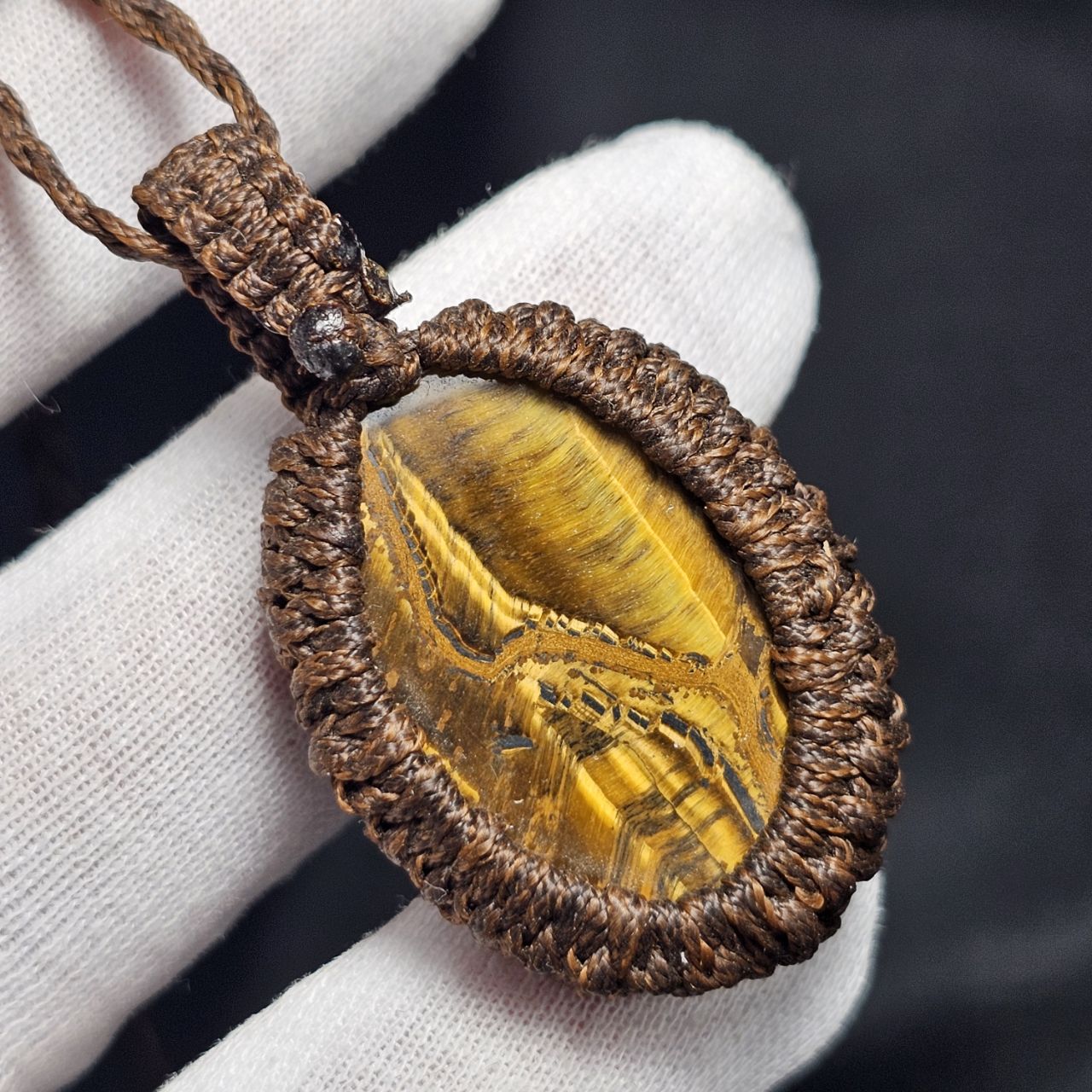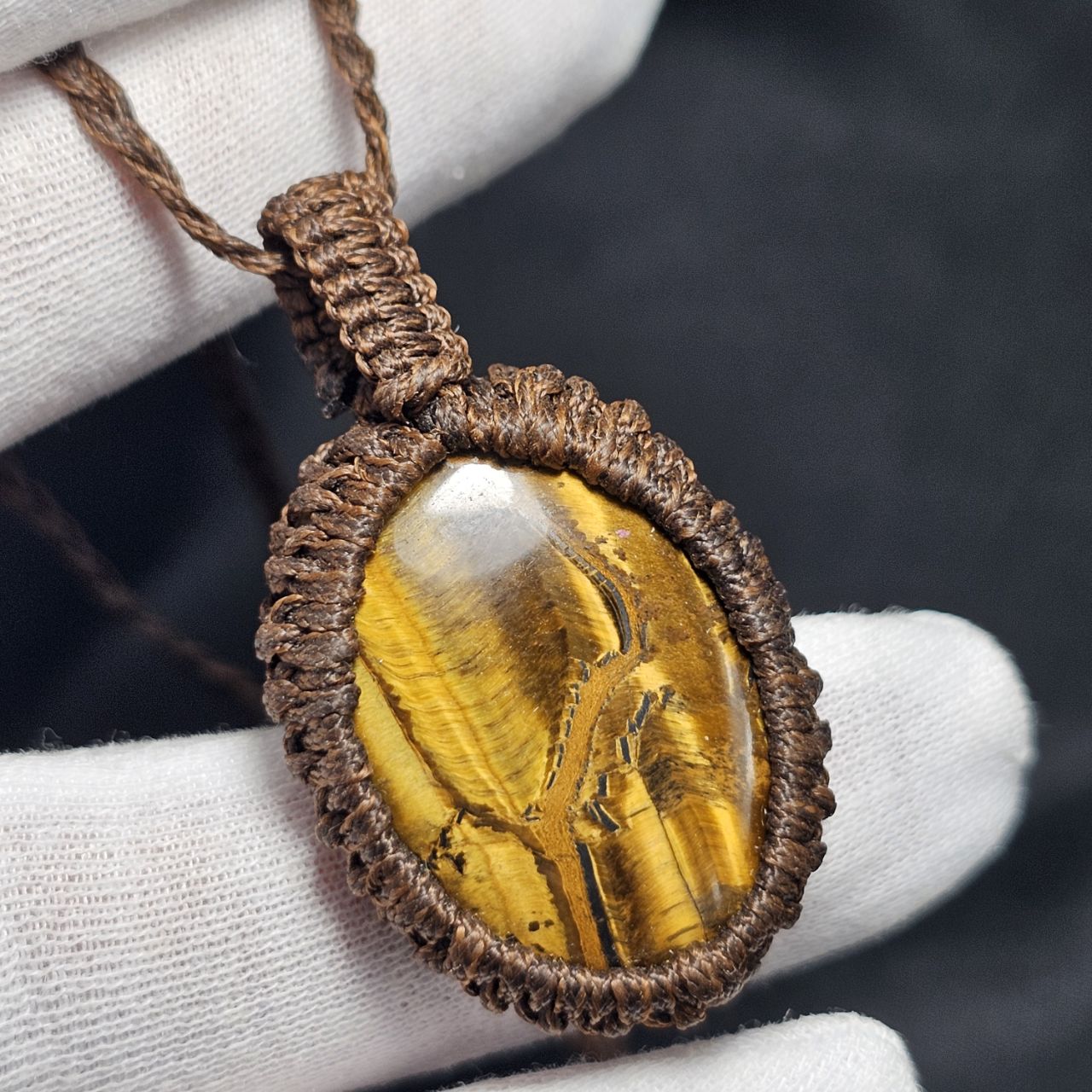 آویز گردنبند سنگ طبیعی چشم ببر معدنی