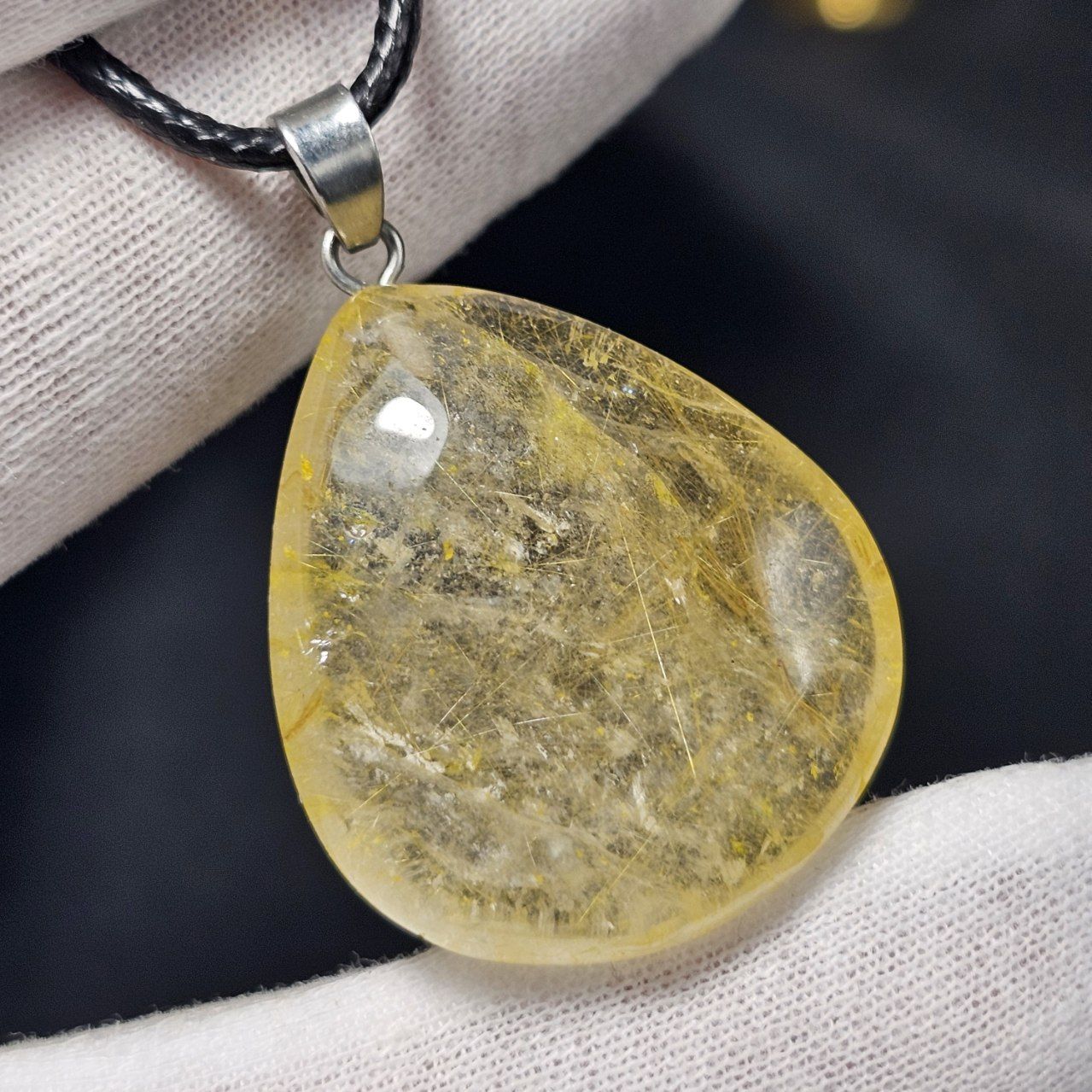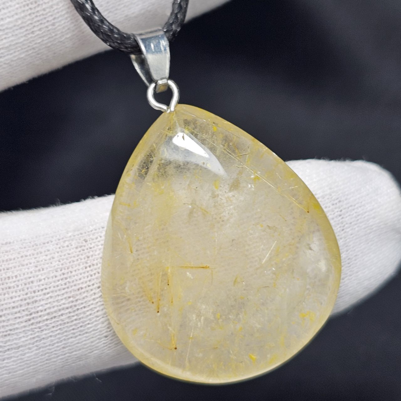 آویز گردنبند سنگ طبیعی کوارتز رتایل معدنی کد 38268