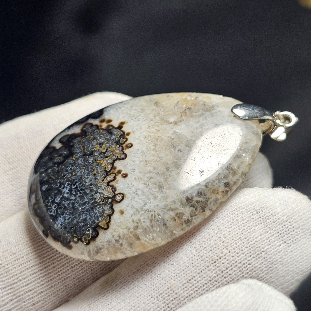 آویز گردنبند درشت سنگ عقیق ژئود معدنی طرح خاص