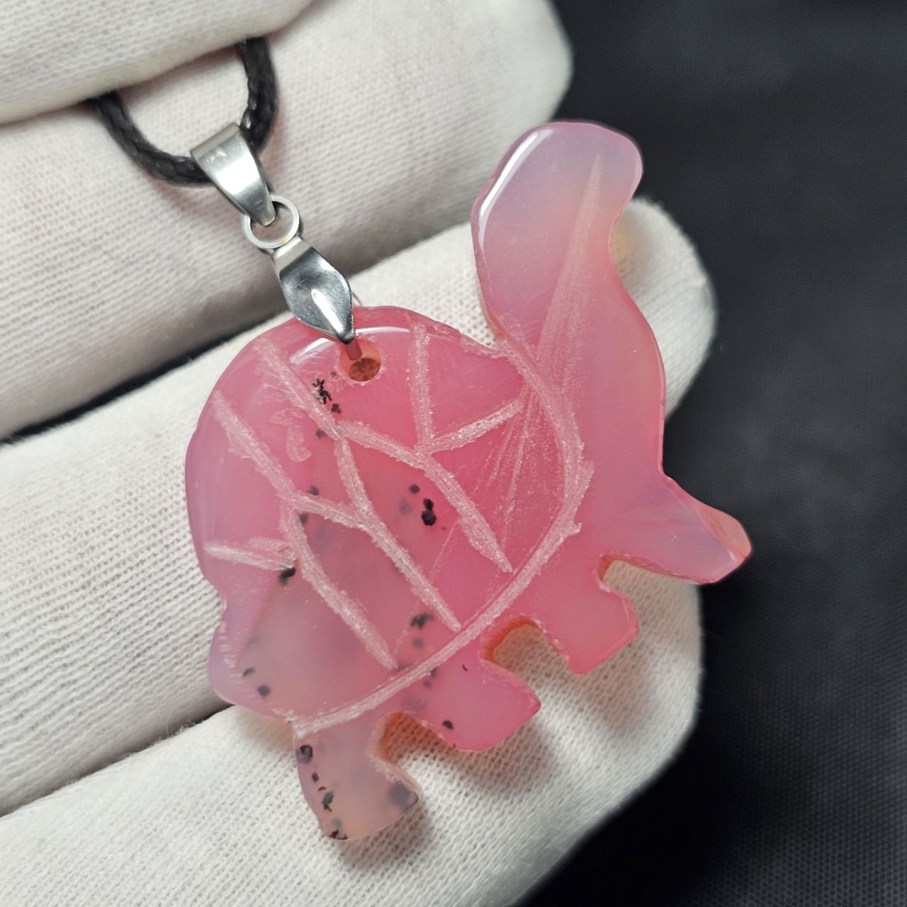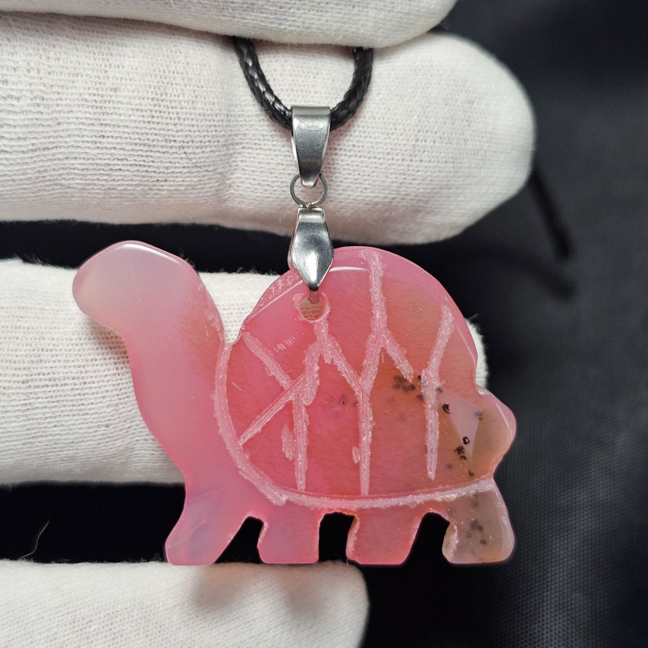 آویز گردنبند سنگ عقیق صورتی معدنی