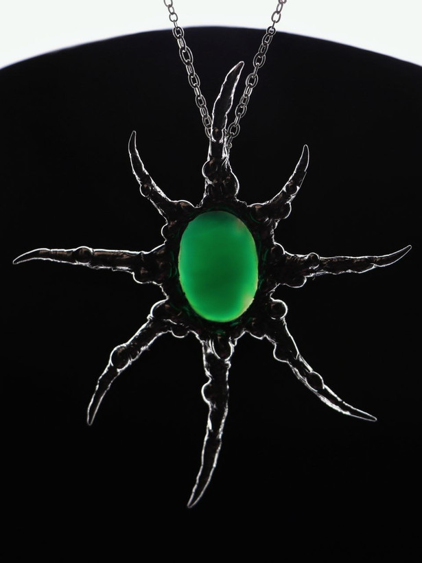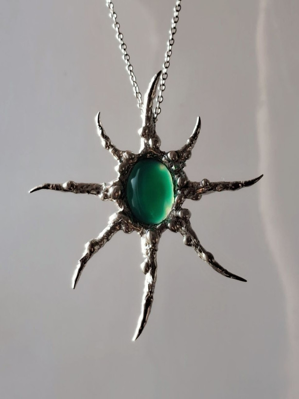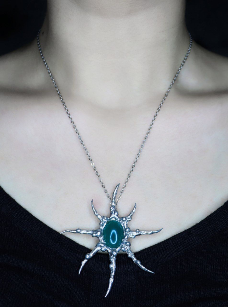 پیله گزند: آویز دست ساز سنگ عقیق سبز معدنی با تکنیک سولدرینگ