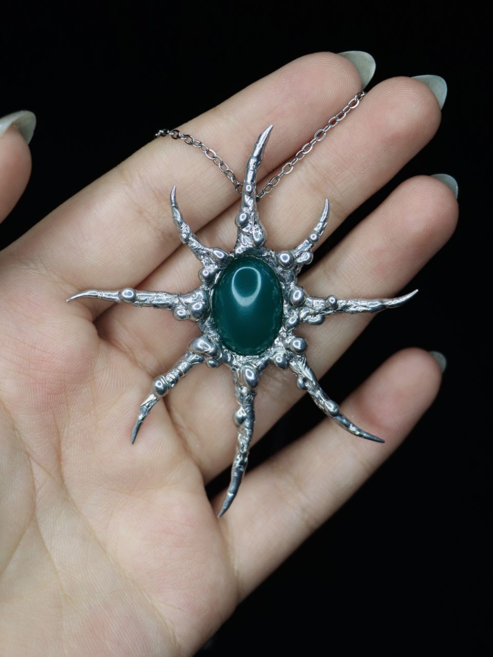 پیله گزند اثری یگانه و دستساز است؛ خلاقهای هنری که بهصورت تکنسخه و با صرف زمان، اندیشه و دستان توانای هنرمند شکل گرفته است. قلب تپنده این اثر، سنگ عقیق سبز معدنی است که با طیفهای جادوییای از سبز، الهامبخشِ طراحی این اثر شده است و نام آن نیز برآمده از روایت همین سنگ و جهان درونیاش است. پیله گزند بیش از یک زیور است؛ بازتابی از تلاقی طبیعت بکرِ این سنگ با نگاه انتزاعی هنرمند به فرم و معنا.