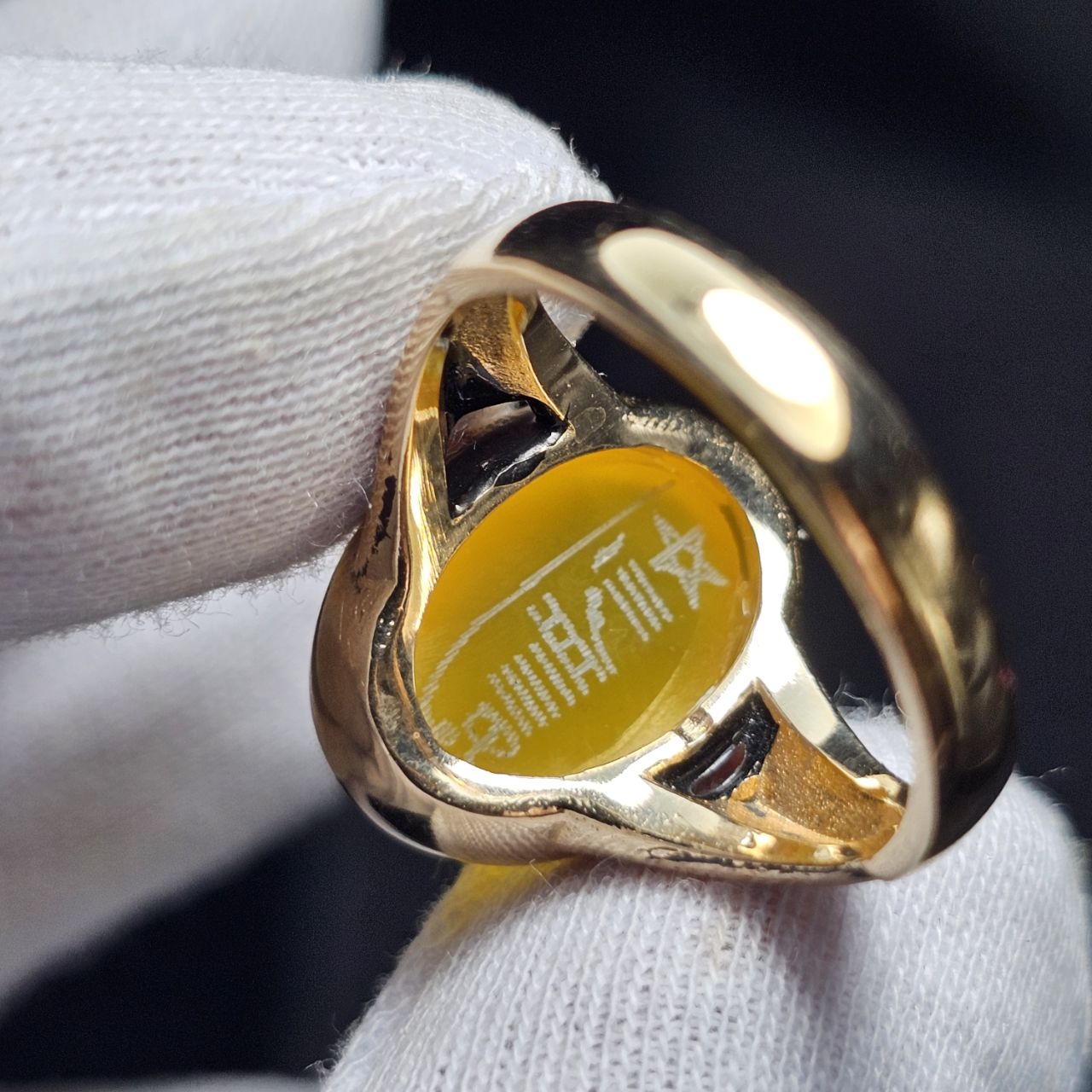 انگشتر طلا روس با سنگ عقیق زرد معدنی با دعای شرف الشمس