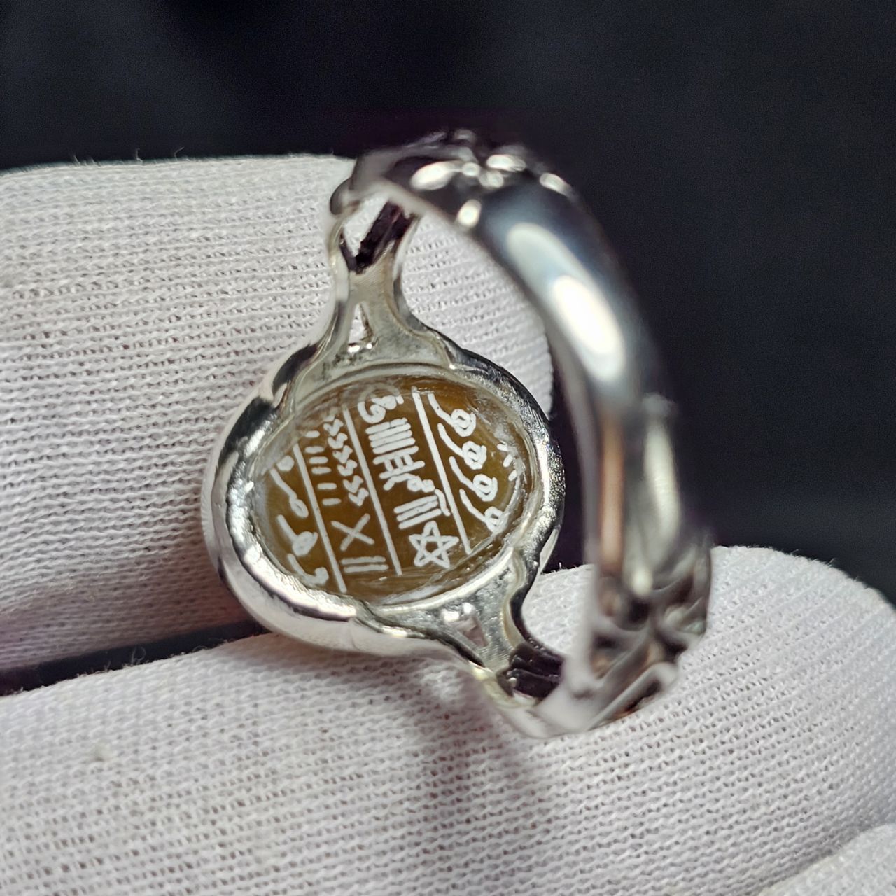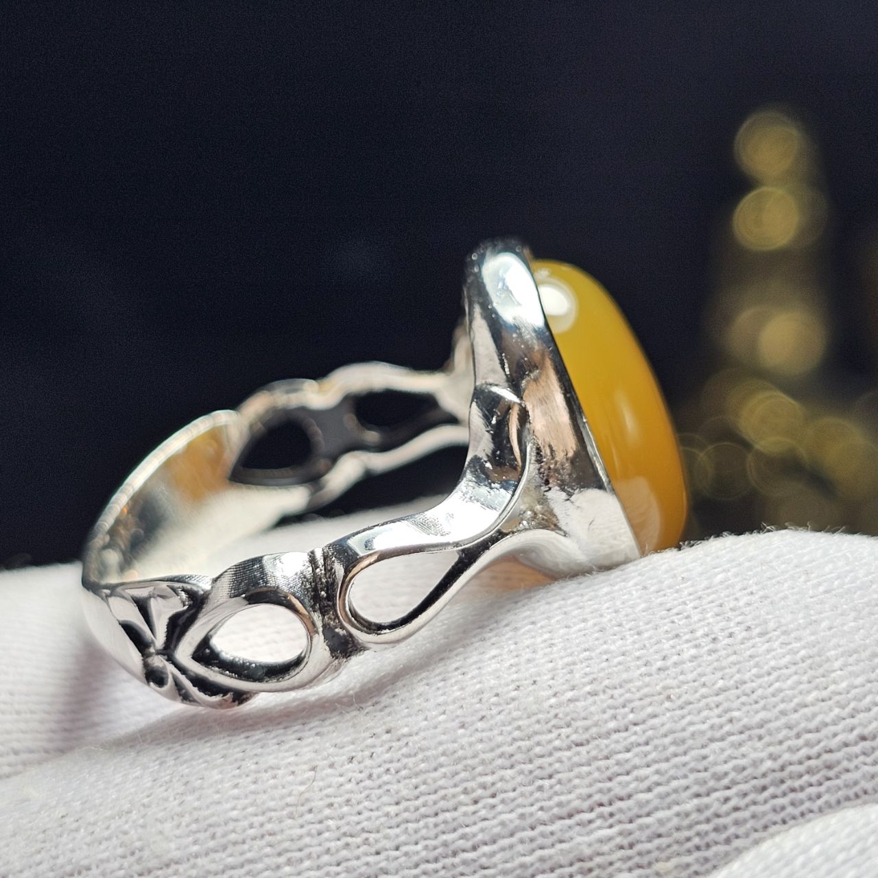 انگشتر روکش نقره ای با سنگ عقیق زرد معدنی با دعای شرف الشمس