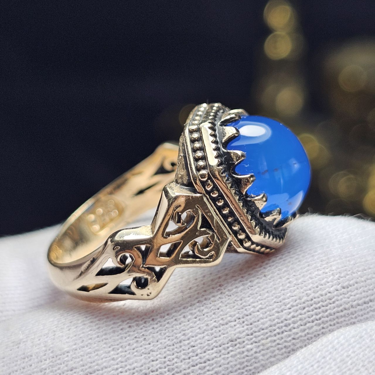 انگشتر طلا روس با سنگ عقیق آبی معدنی