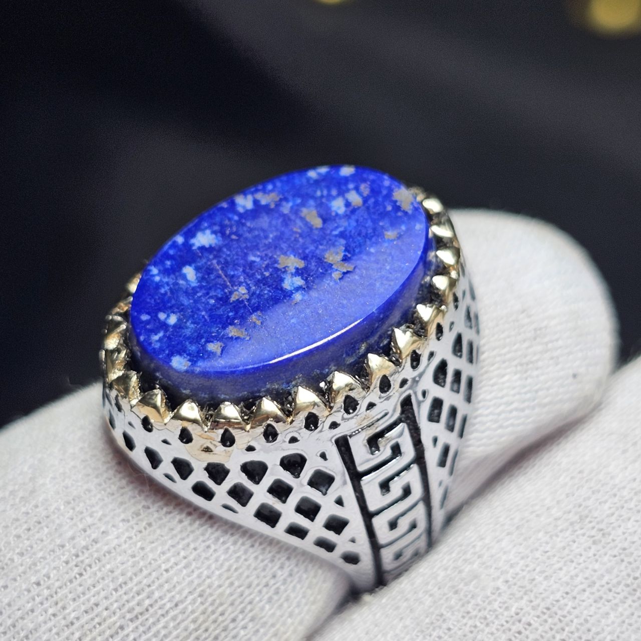 انگشتر روکش نقره ای با سنگ لاجورد معدنی افغان