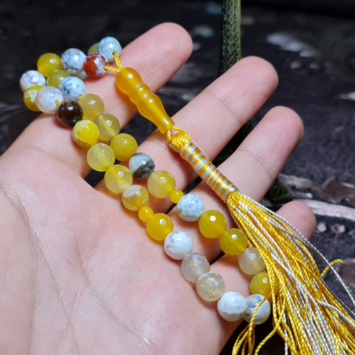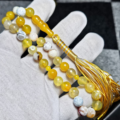 تسبیح ۳۳ دانه سنگ عقیق زرد معدنی کد 26345